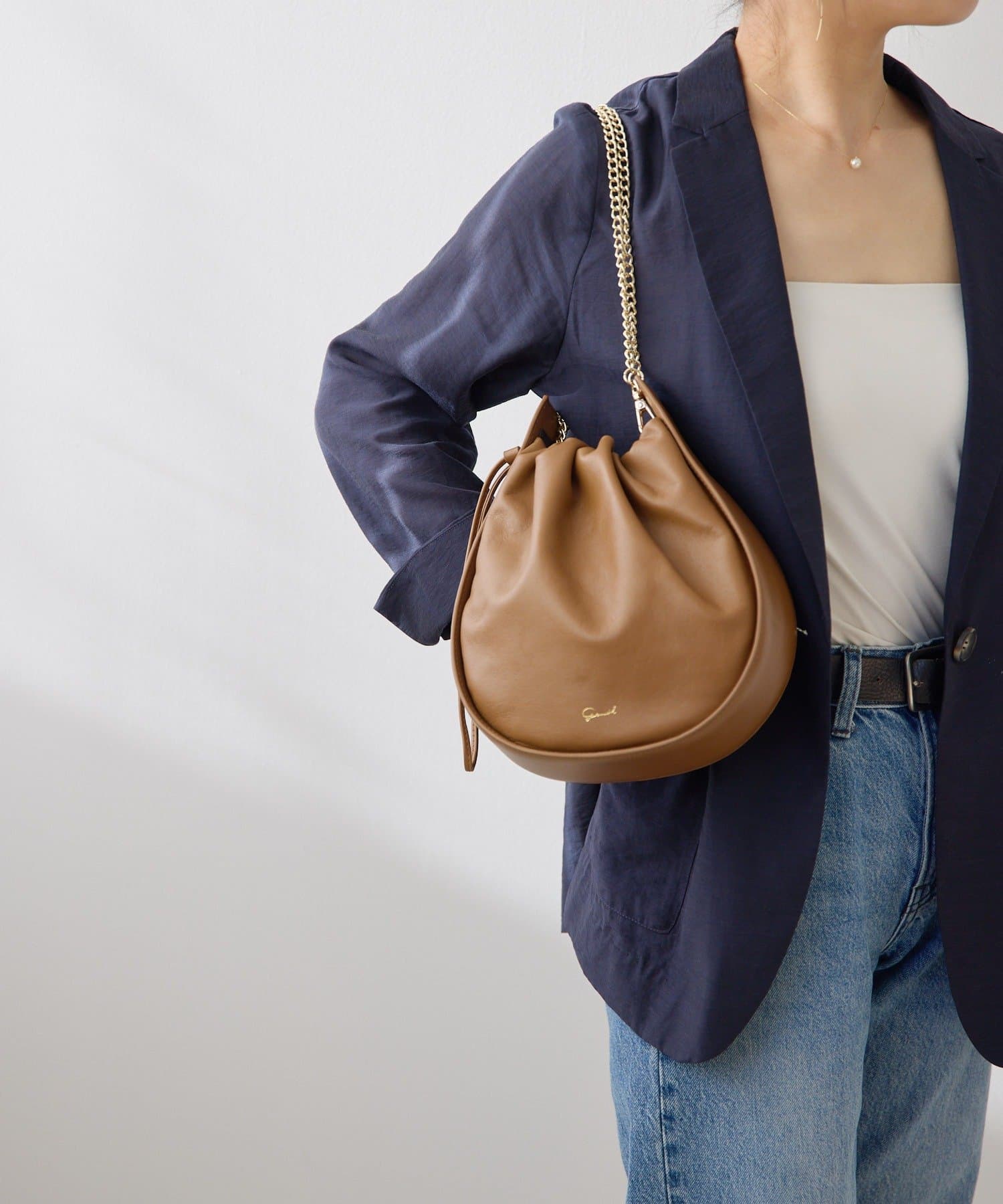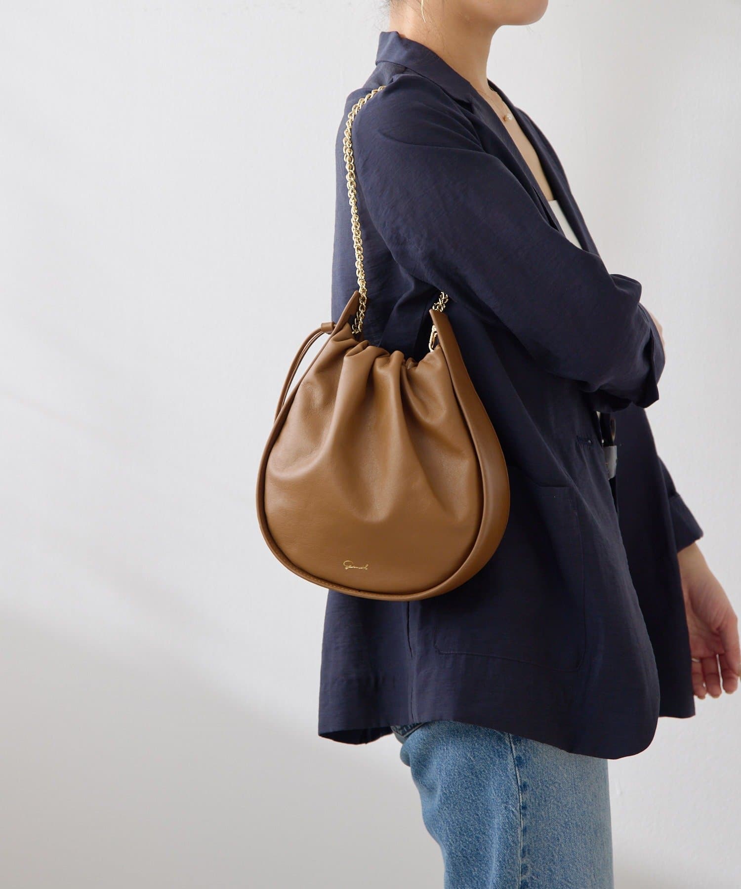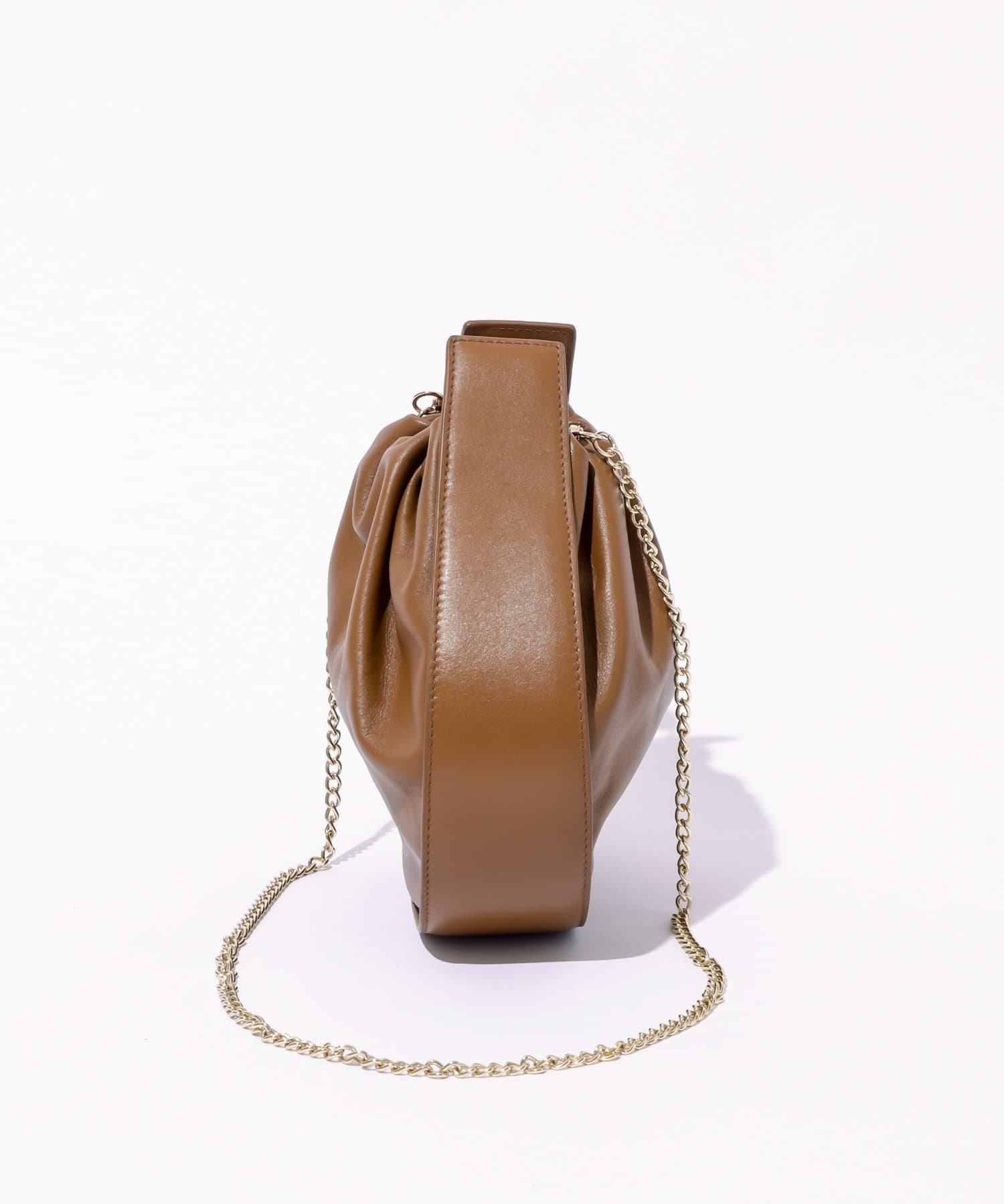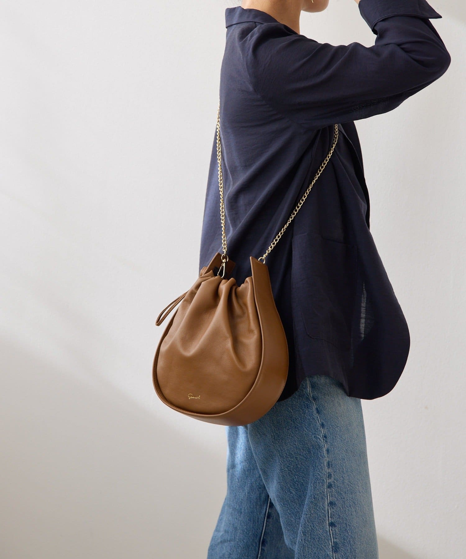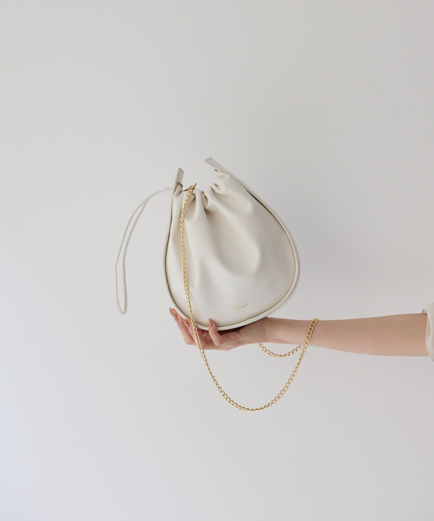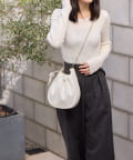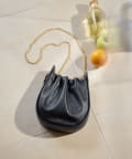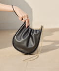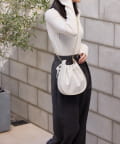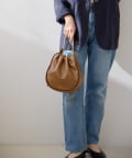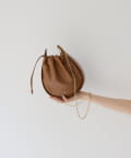 くしゅっとしたギャザーが愛らしい巾着ショルダーバッグ。