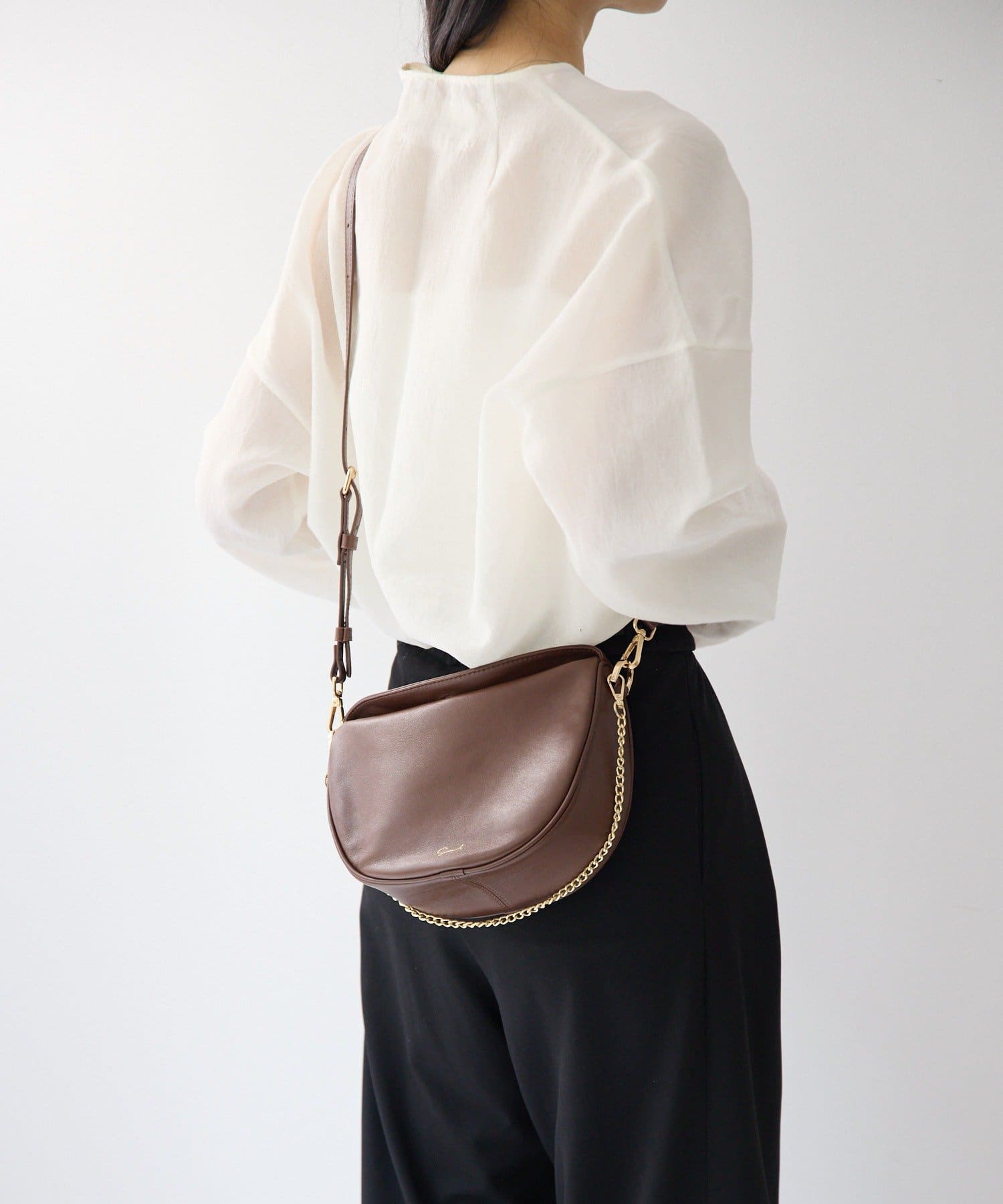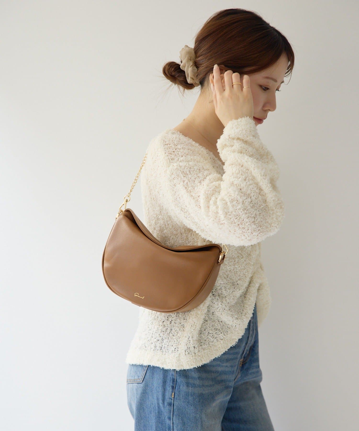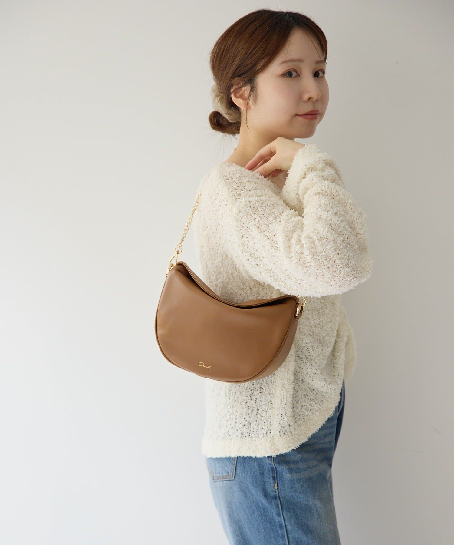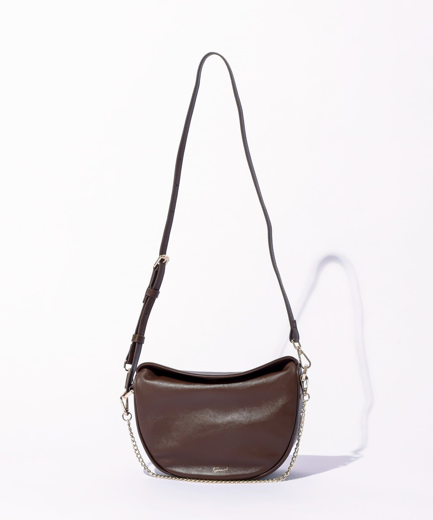 柔らかな質感のレザーを使用した、ハーフムーンシルエットが美しいショルダーバッグ。