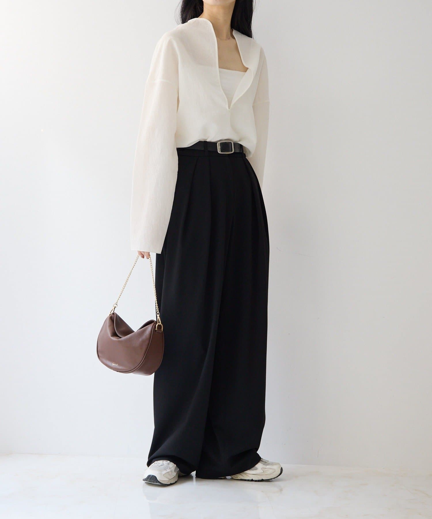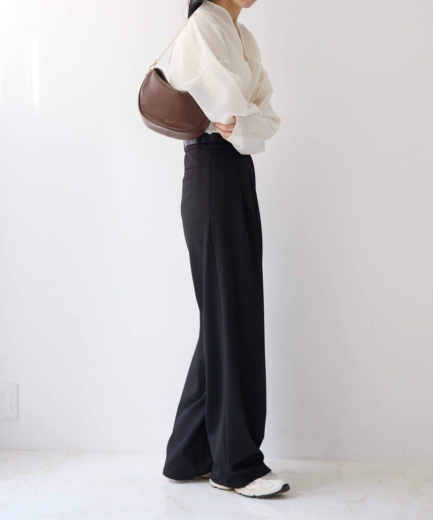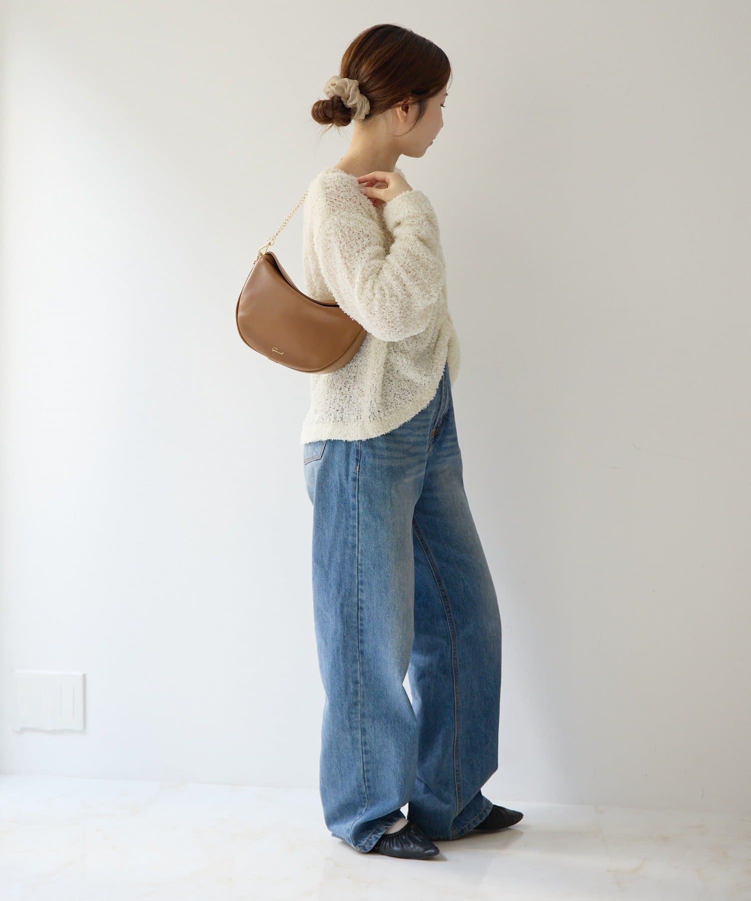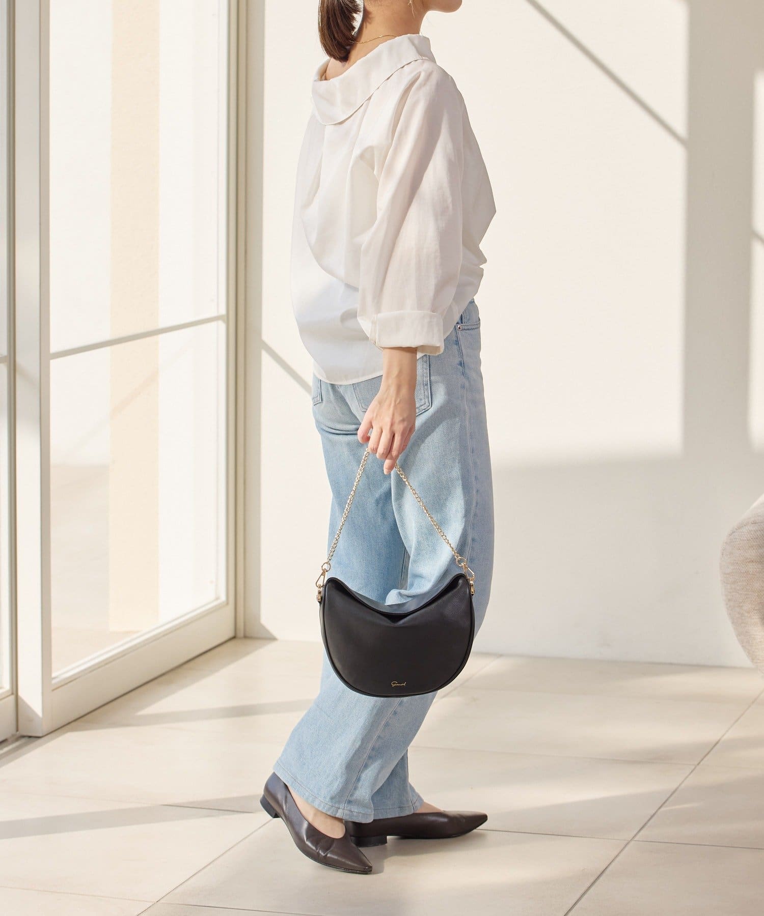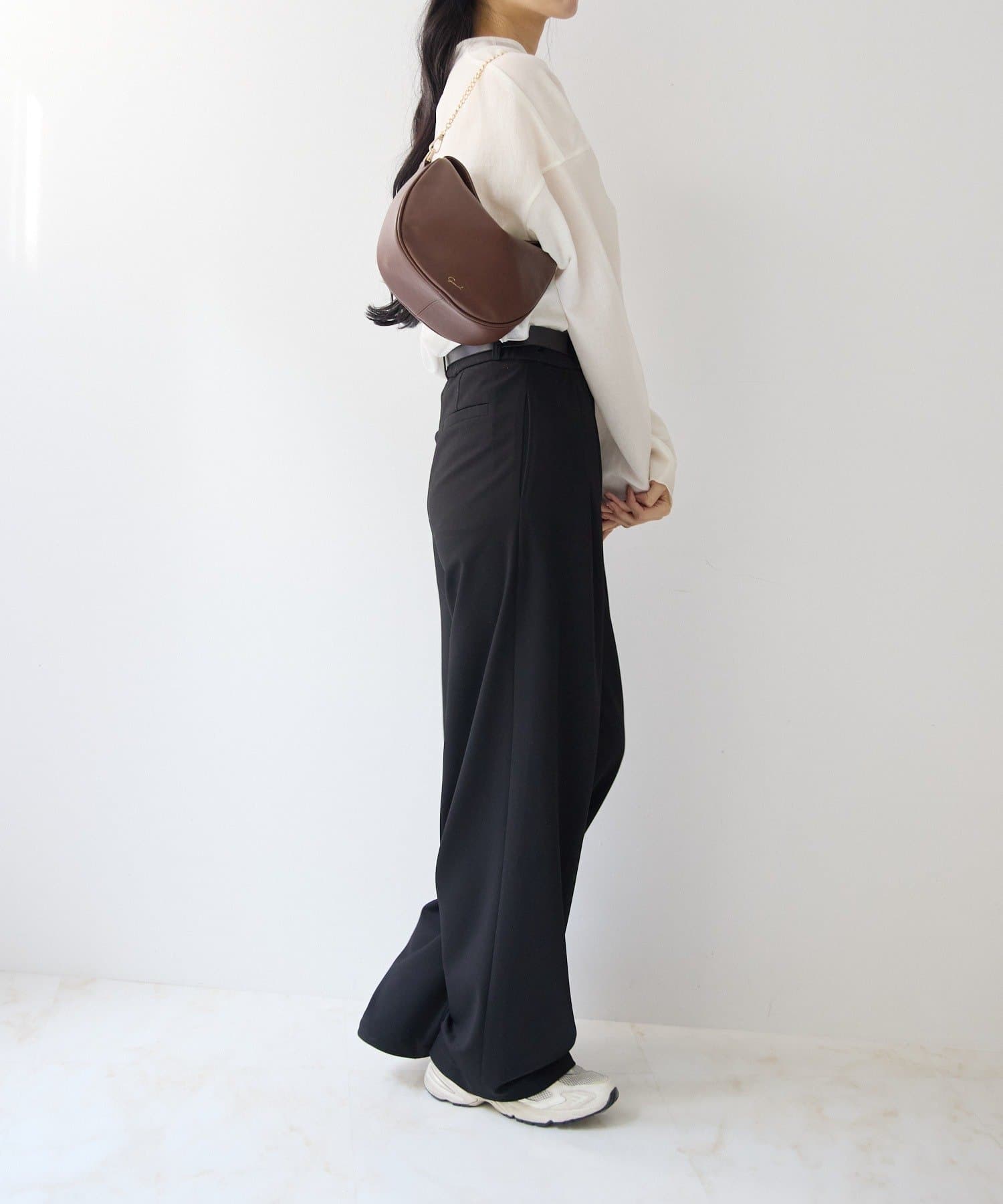 柔らかなレザーを使用した、フォルムが綺麗なハーフムーンバッグ