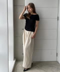 丈も片側が短くなっているので、トップスをアウトで着ても、ウエスト位置を高く見せ、脚長効果を発揮。