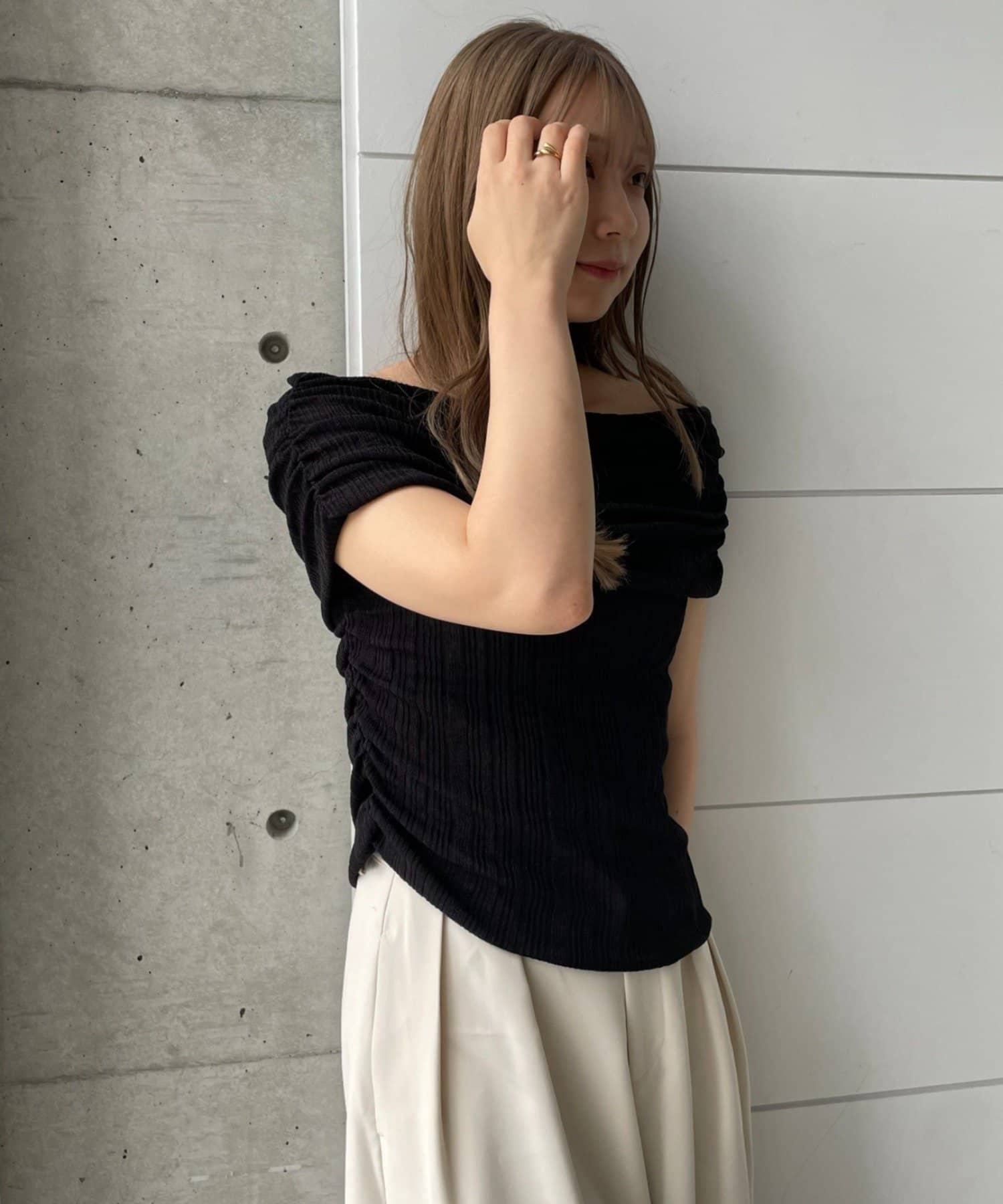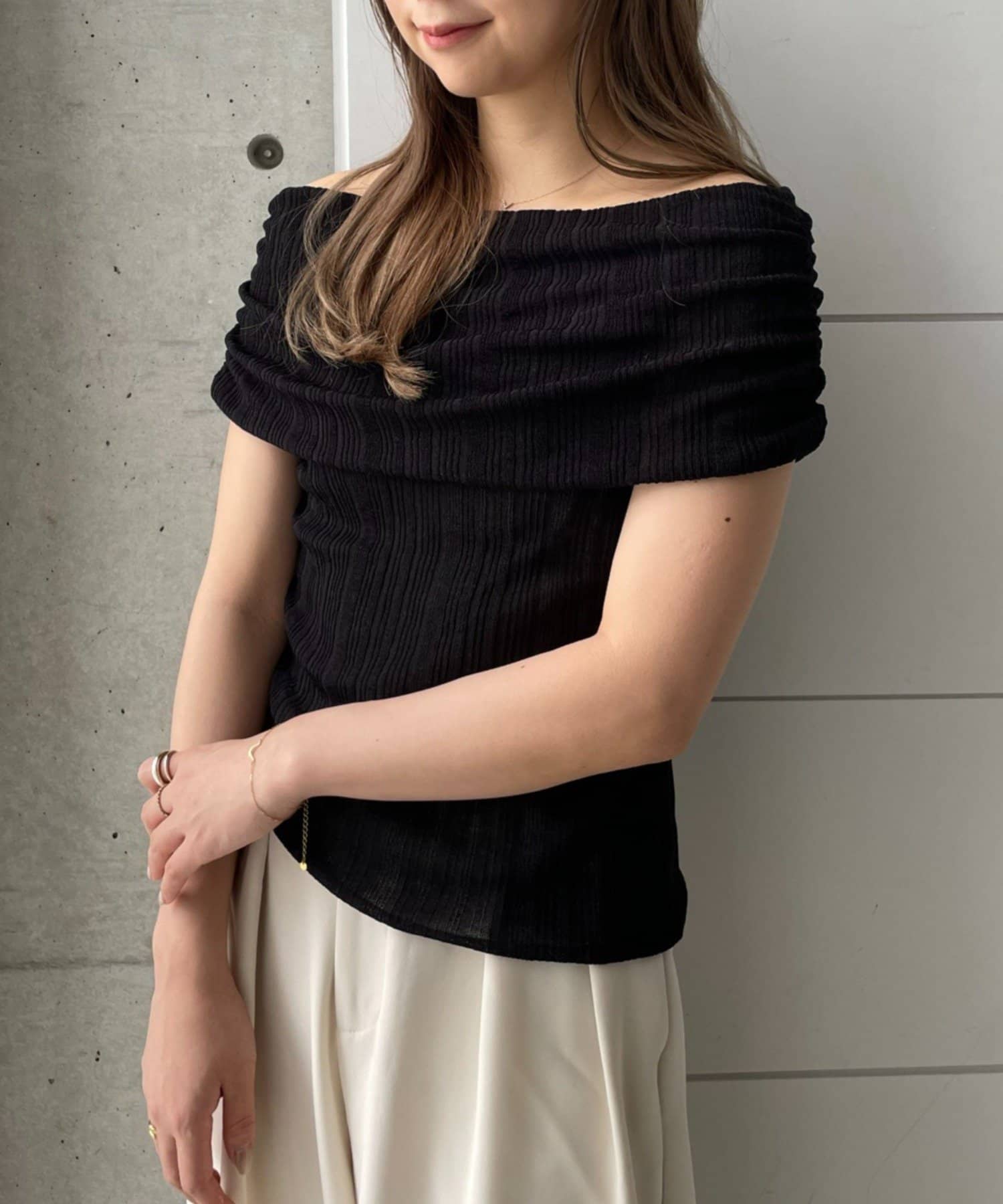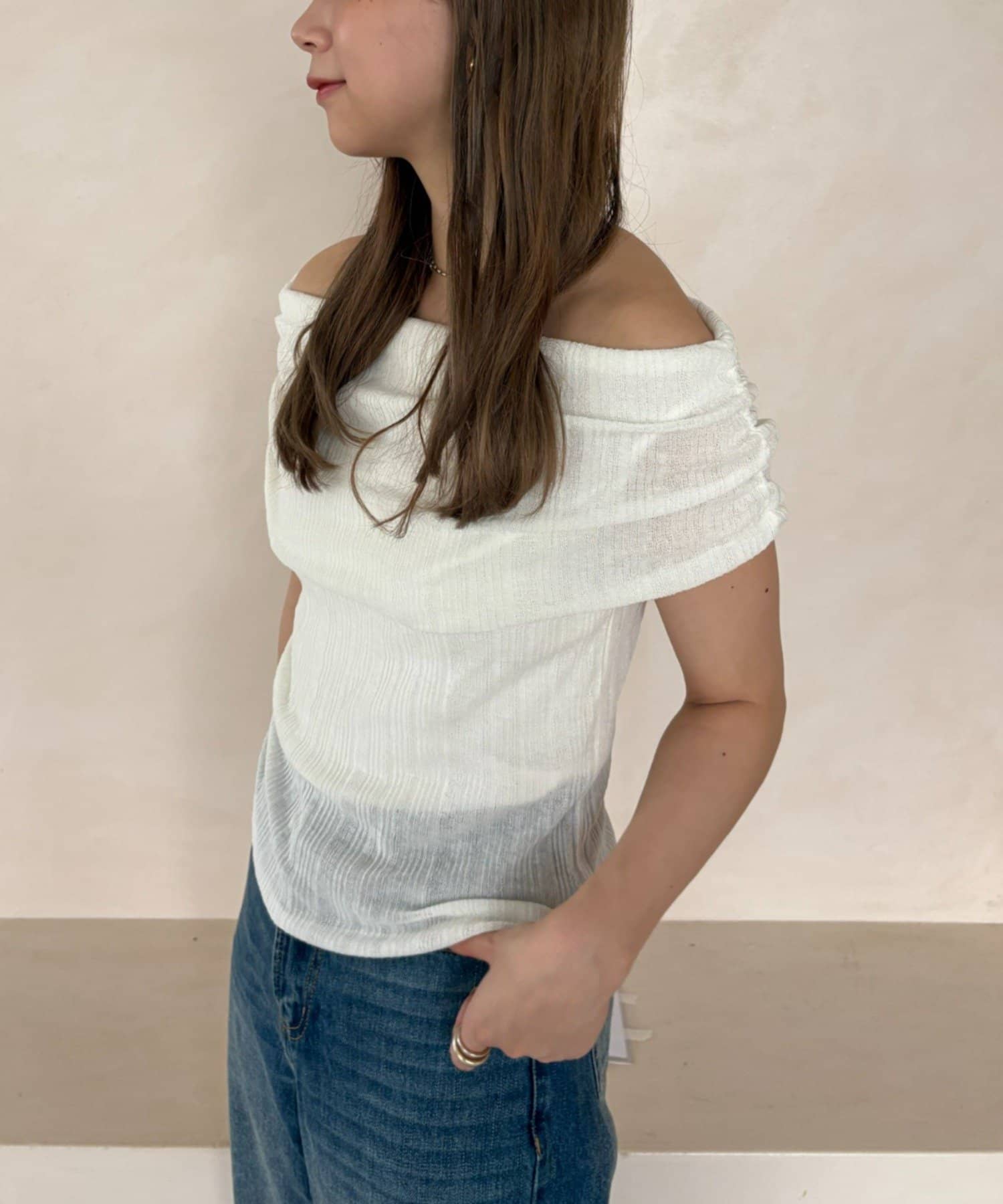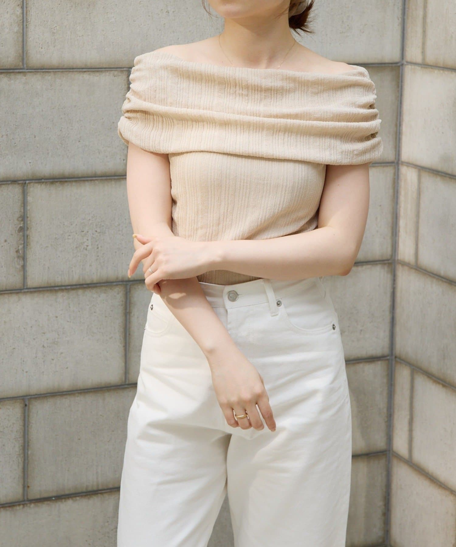 【MIZUKI企画】骨格ストレートスタッフこだわりのオフショルダーリブトップス