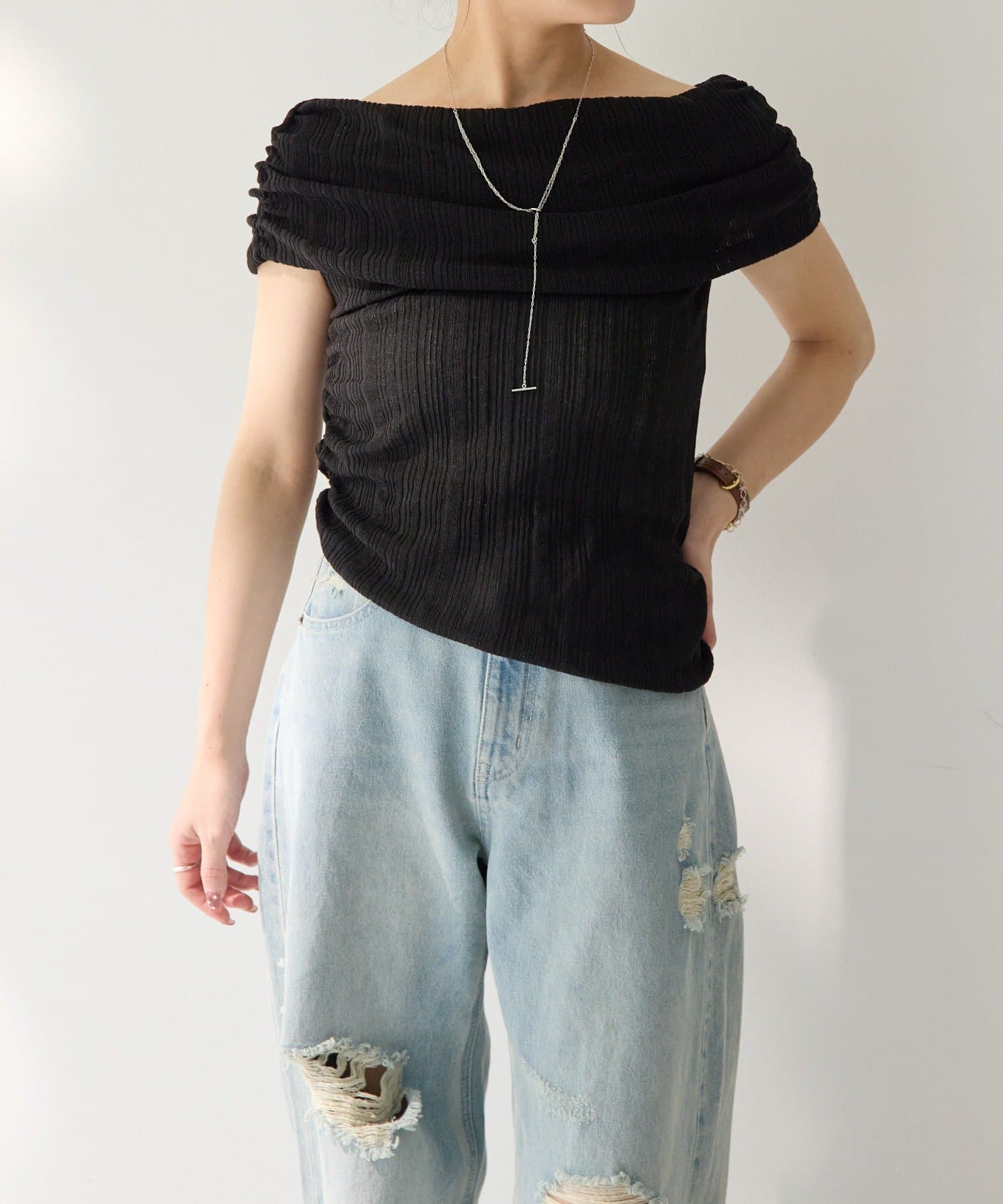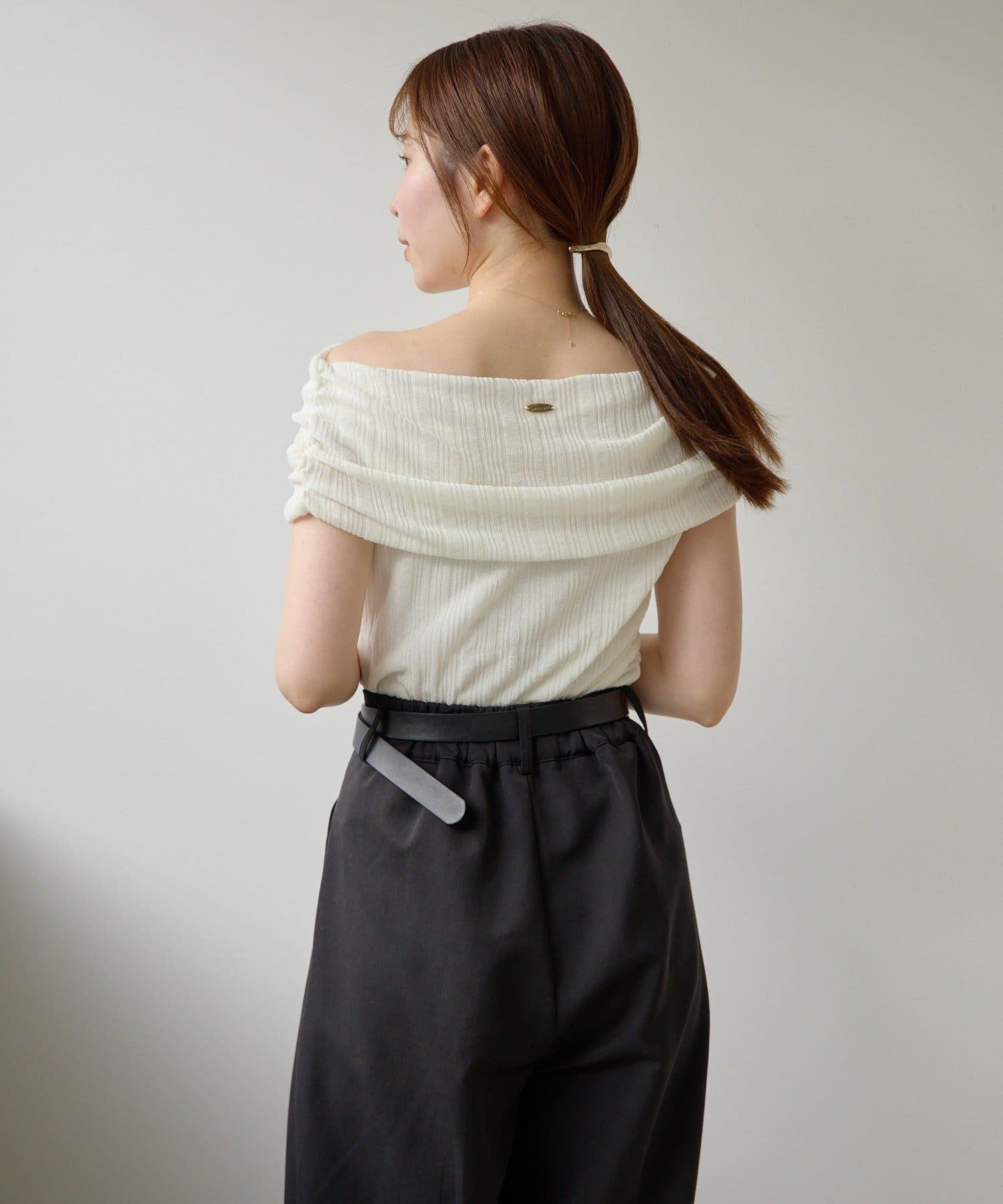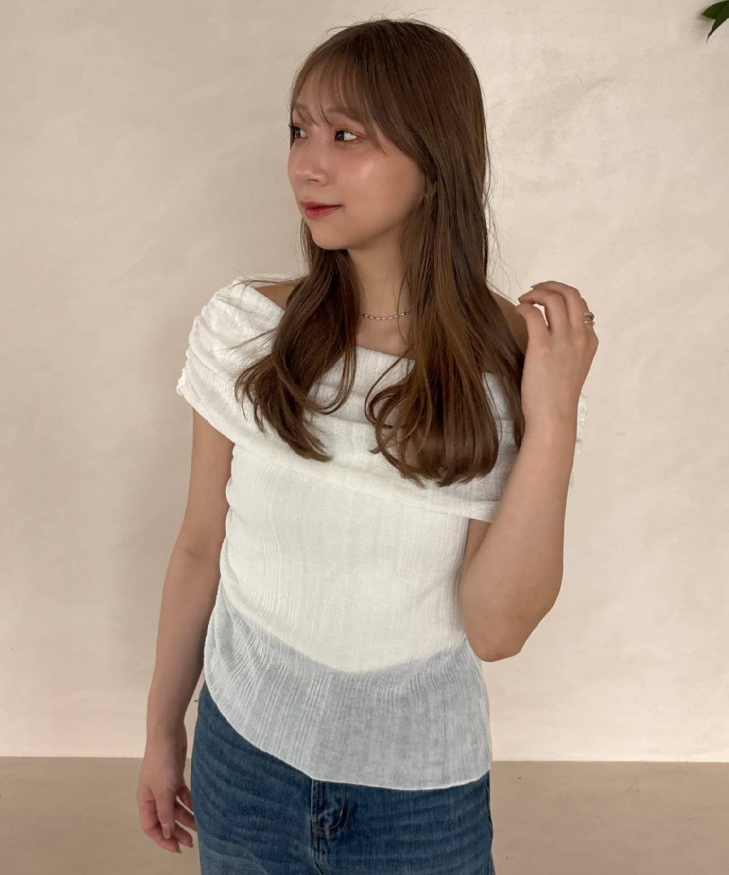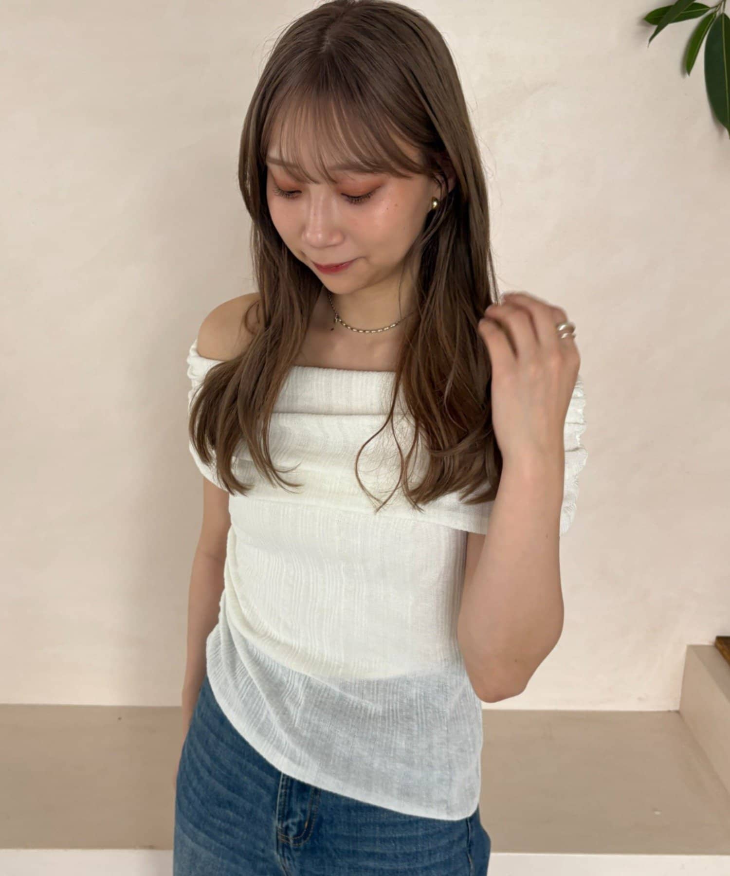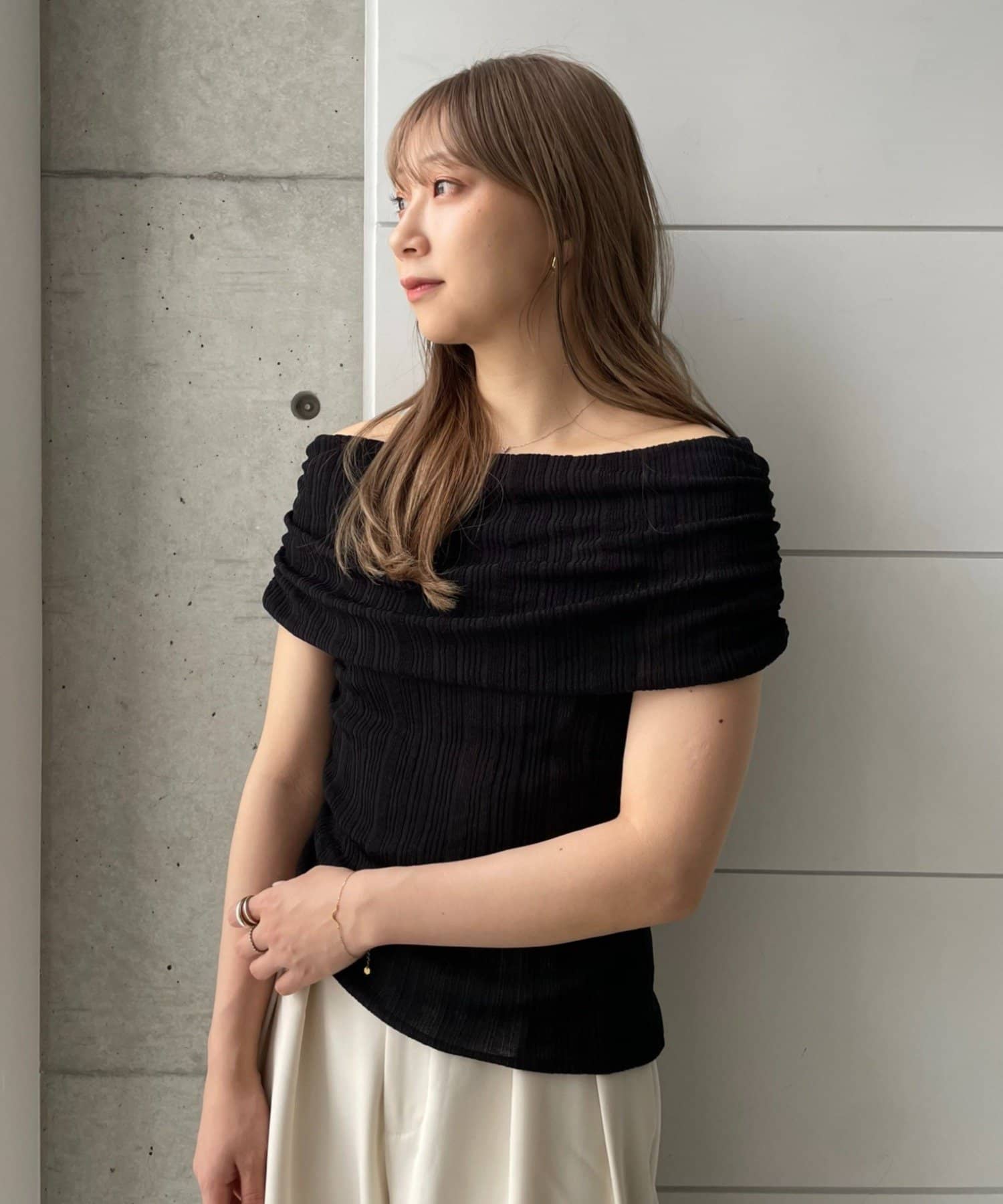 【MIZUKI企画】骨格ストレートスタッフこだわりのオフショルダーリブトップス