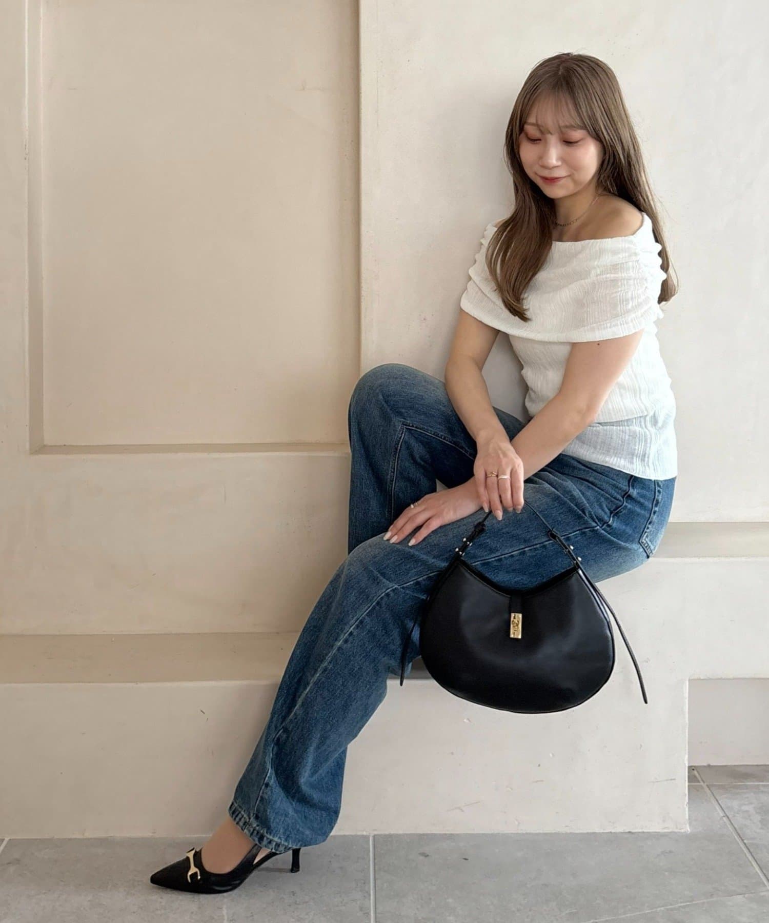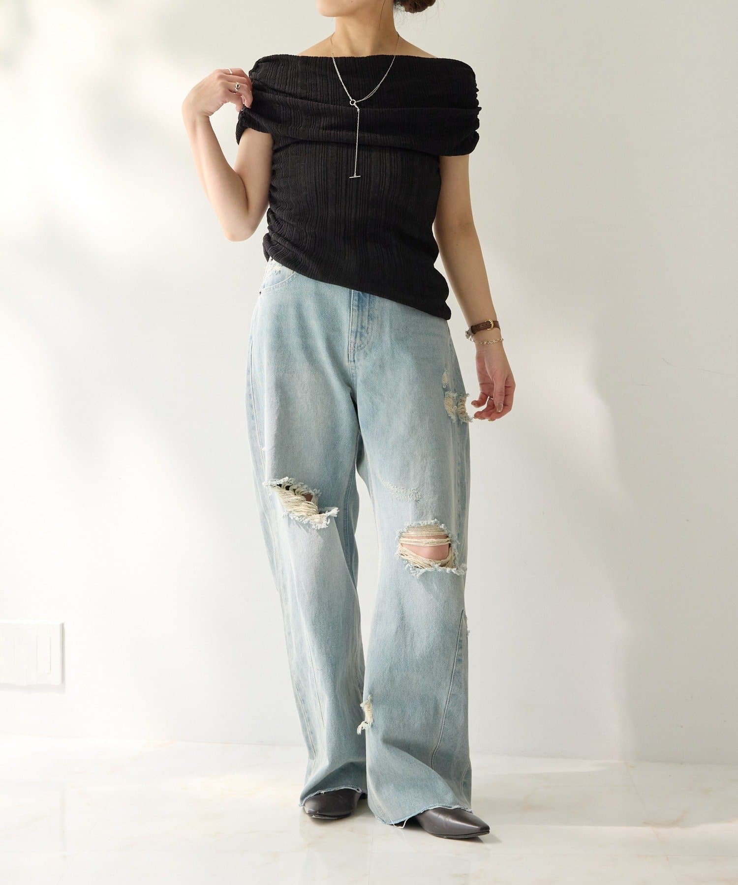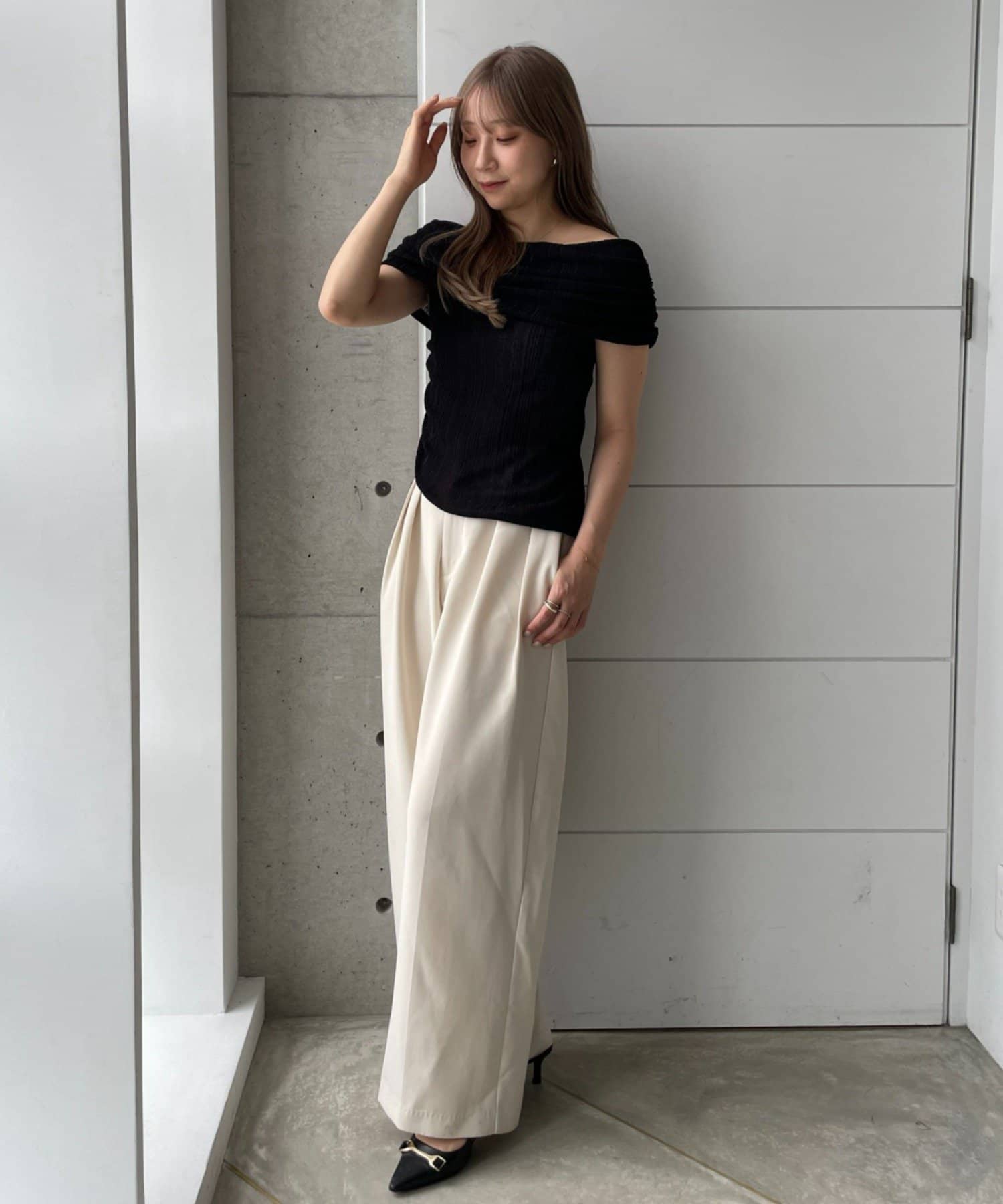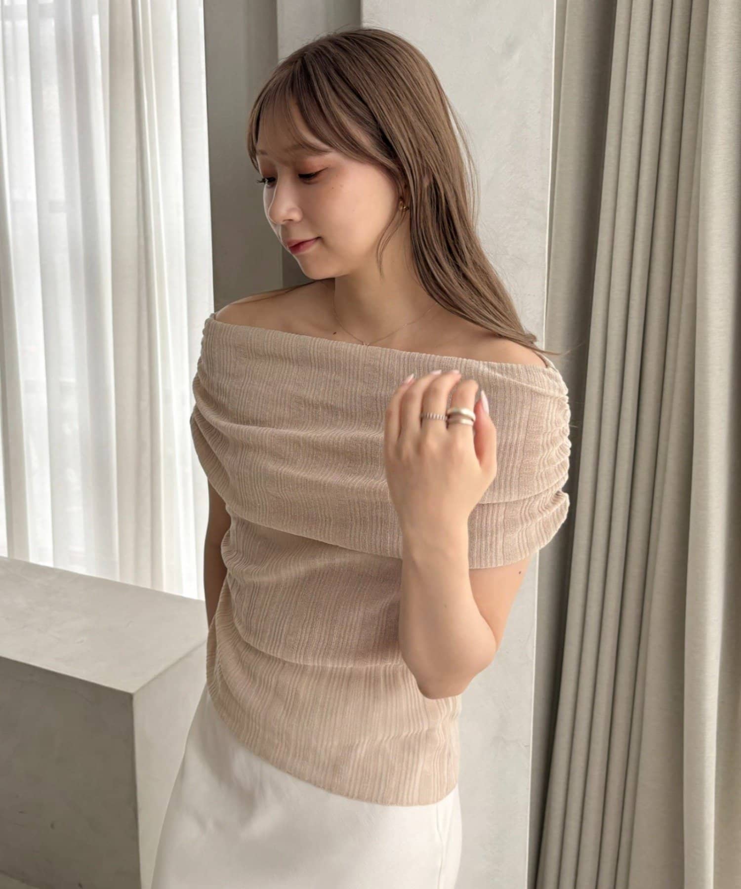 【MIZUKI企画】骨格ストレートスタッフこだわりのオフショルダーリブトップス