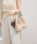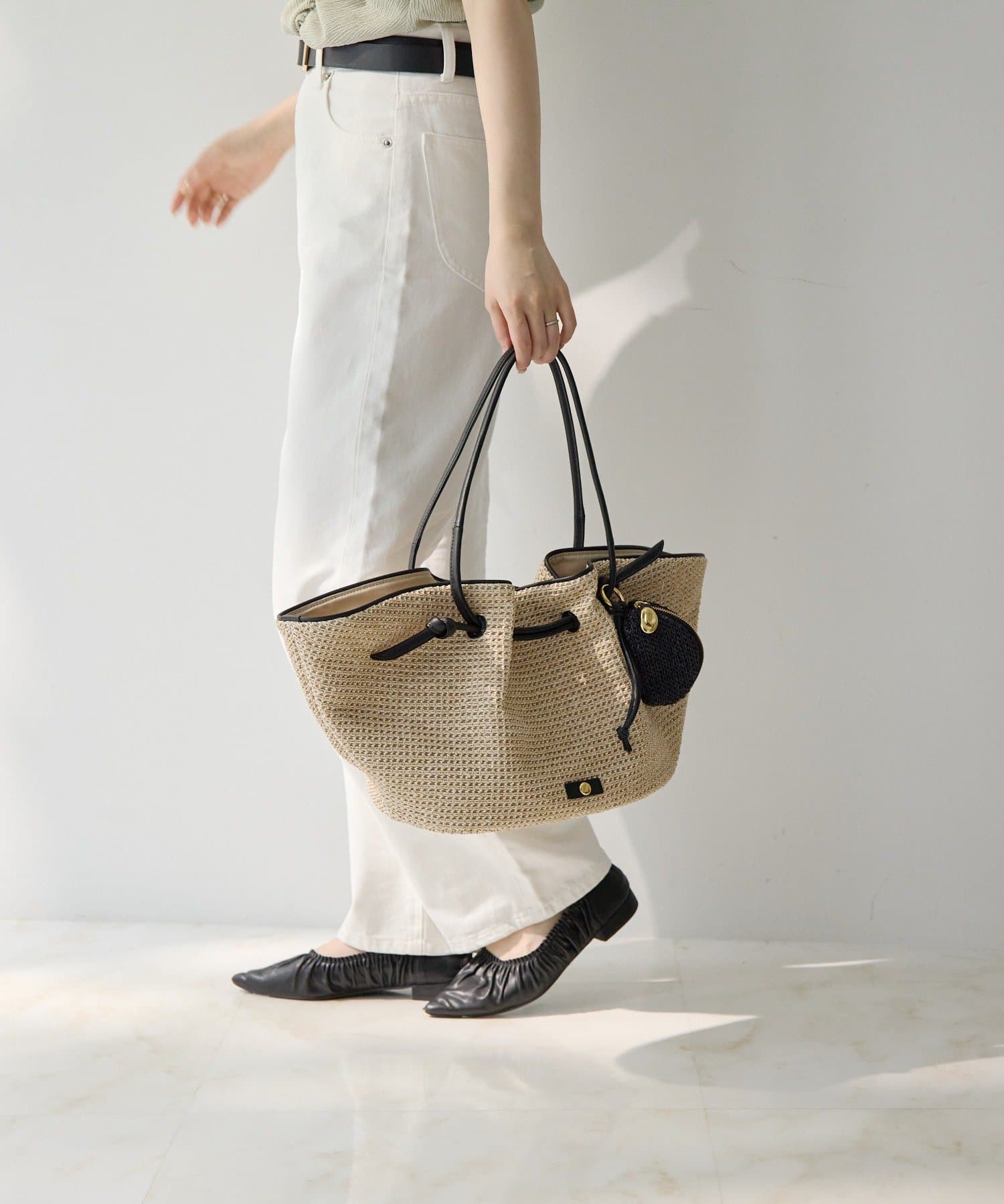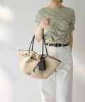 ラフィアシリーズのバッグとの相性はもちろん、レザーバッグにつけても◎。