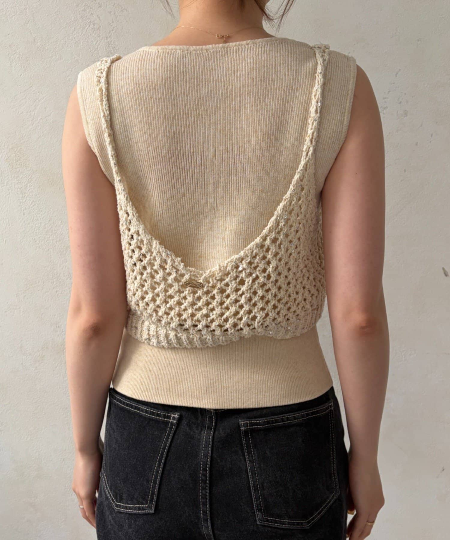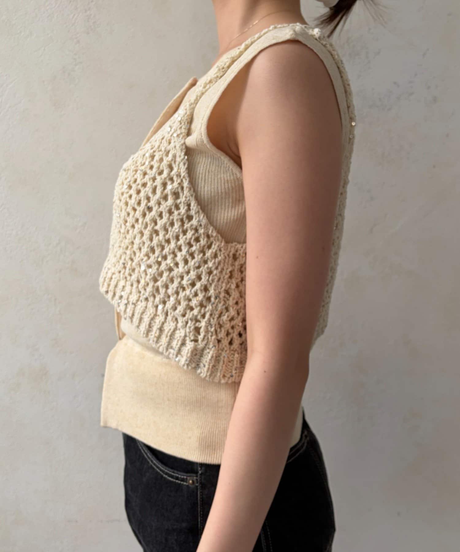 ビスチェは、夏らしい涼しげなメッシュ編みデザイン。