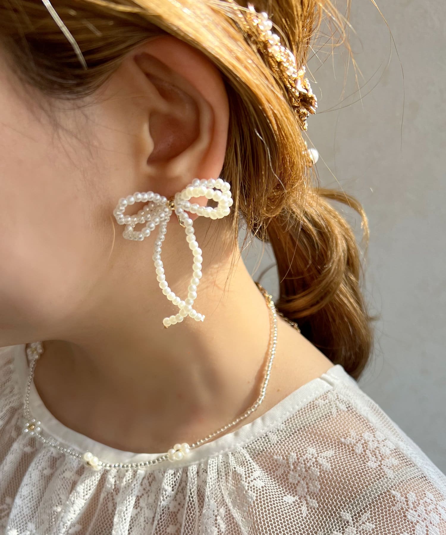 パールリボンイヤリング