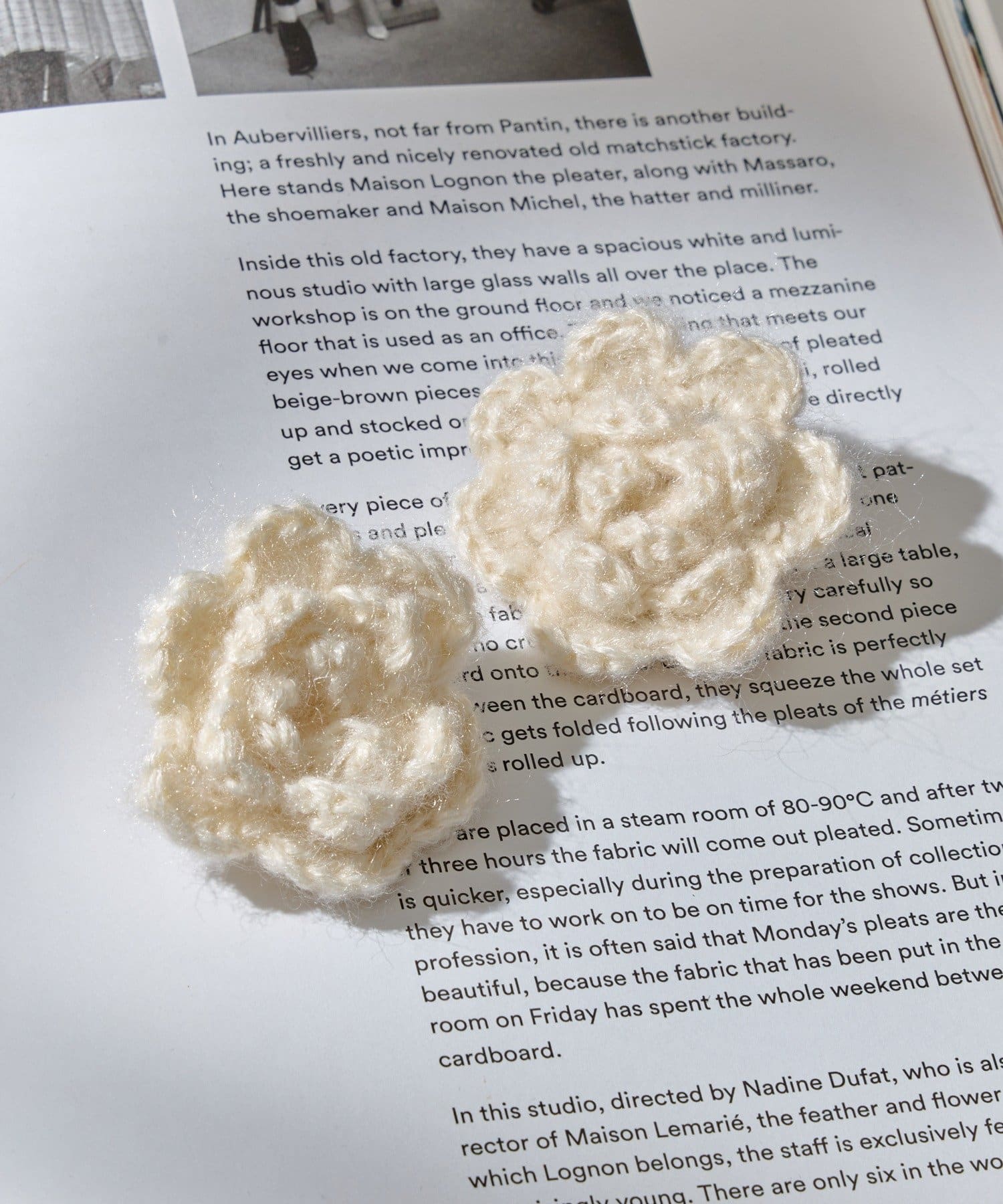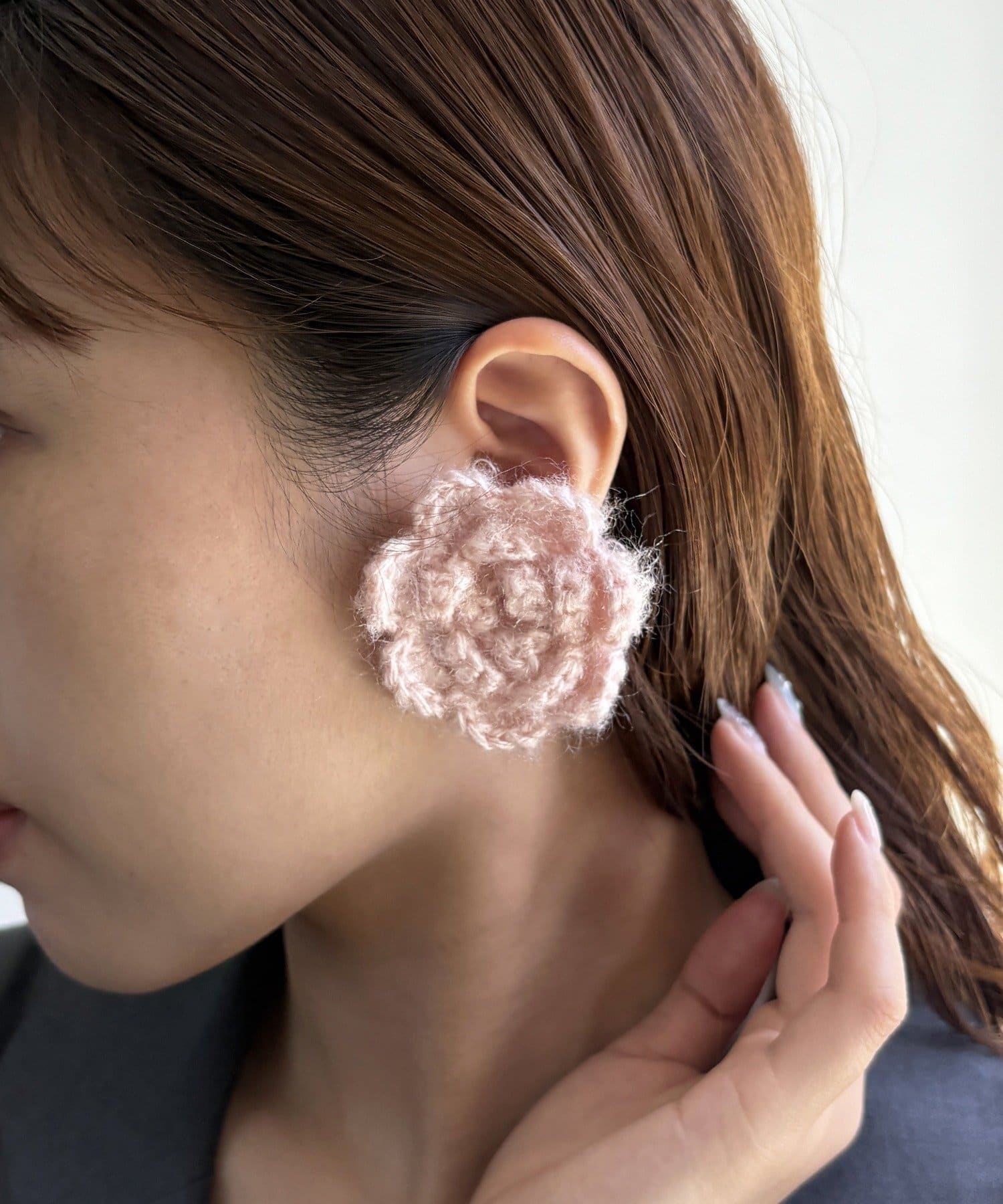 ニット素材のフラワーデザインが可愛らしいイヤリング