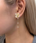 中心でキラリと光るビジューと、お花の下でゆらゆら揺れるロングチェーンが女性らしさを引き立てます。