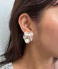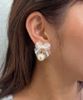 耳元に可憐なアクセントを添える、リボンとパールのイヤリング