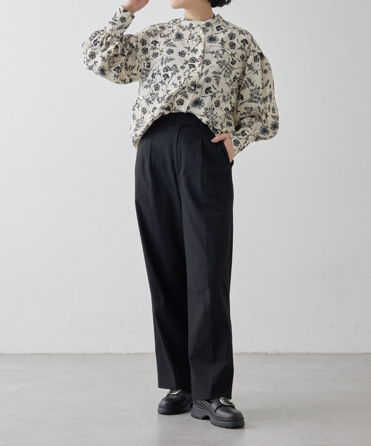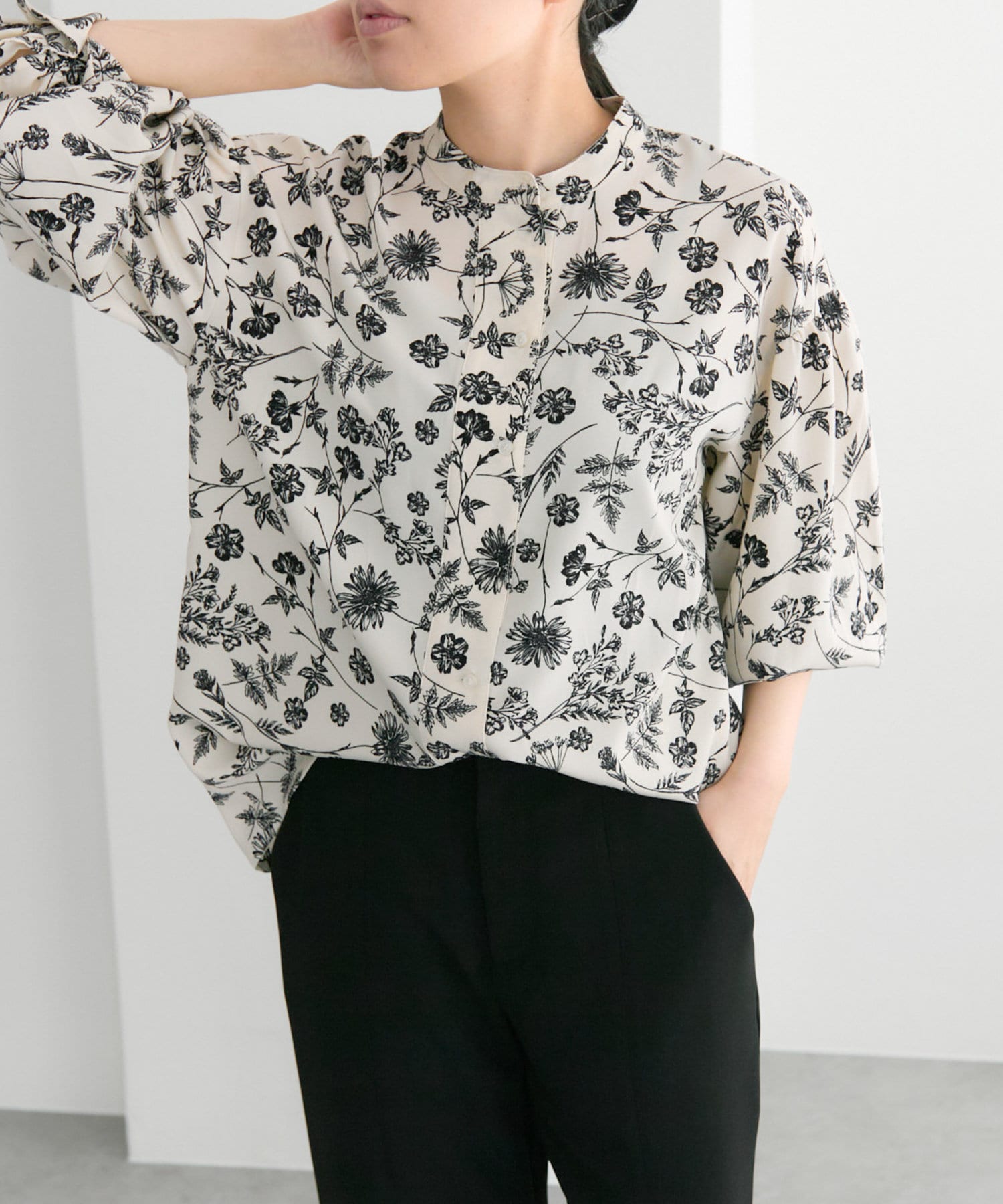 花柄/ボタニカル/柄ギャザーブラウス【SUM1 STYLE(スミスタイル)】