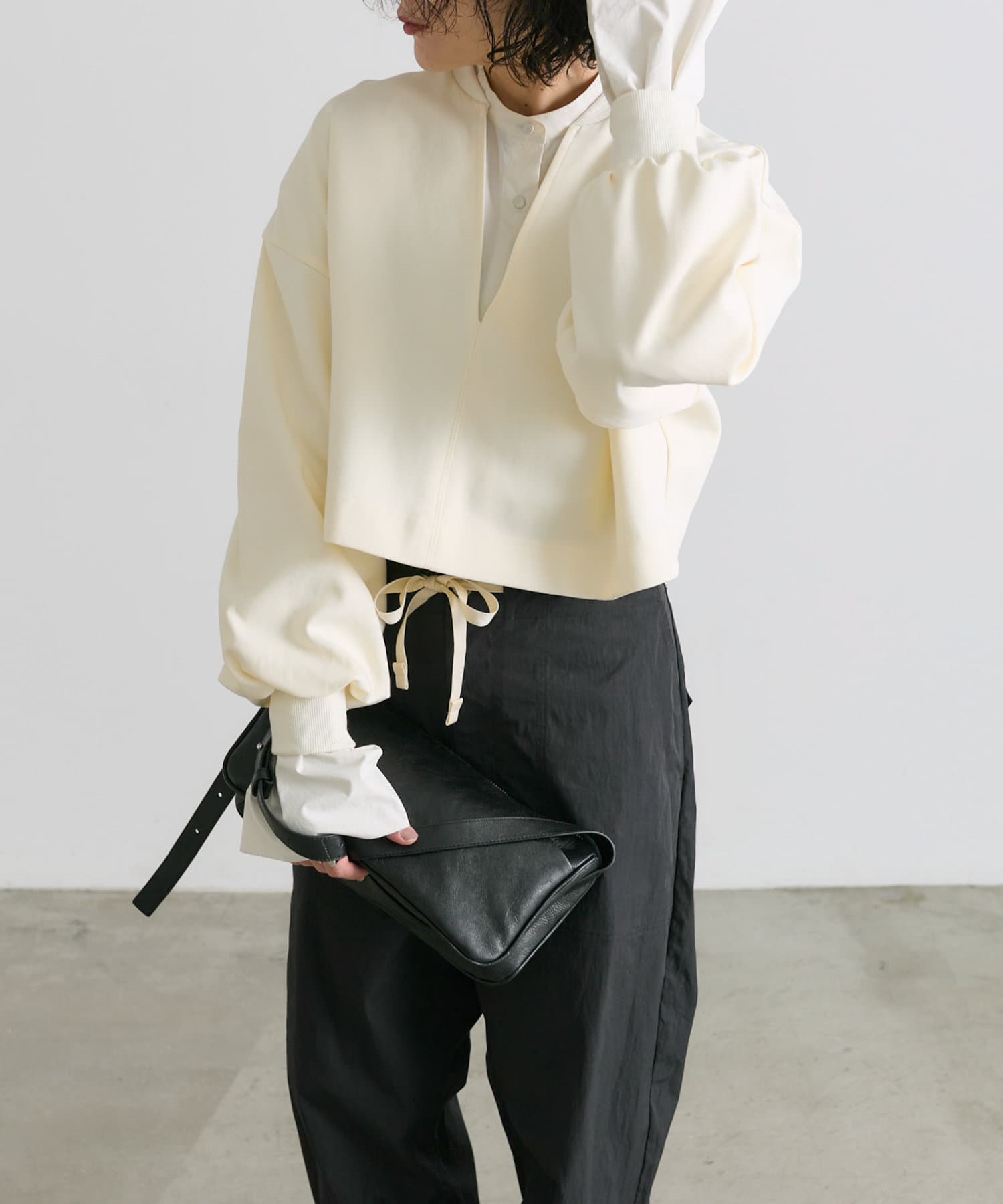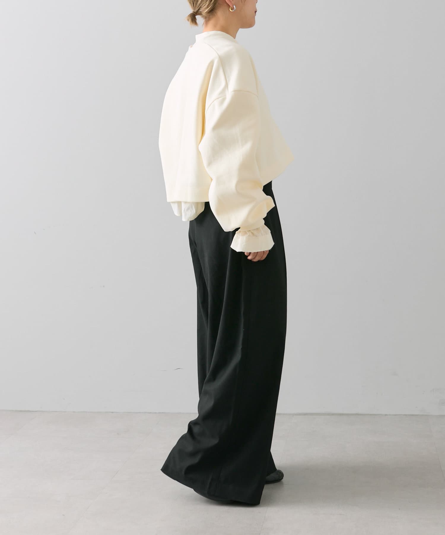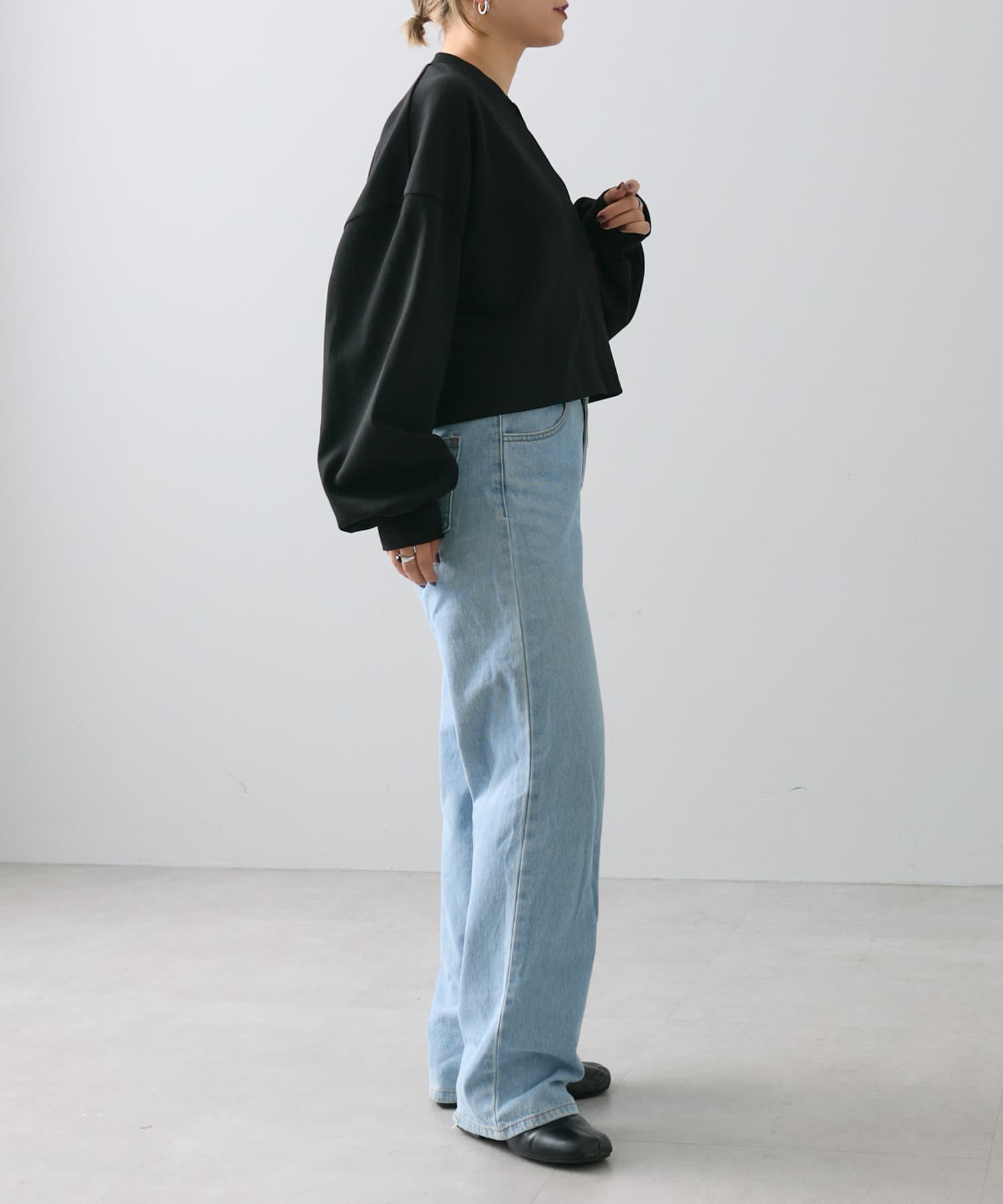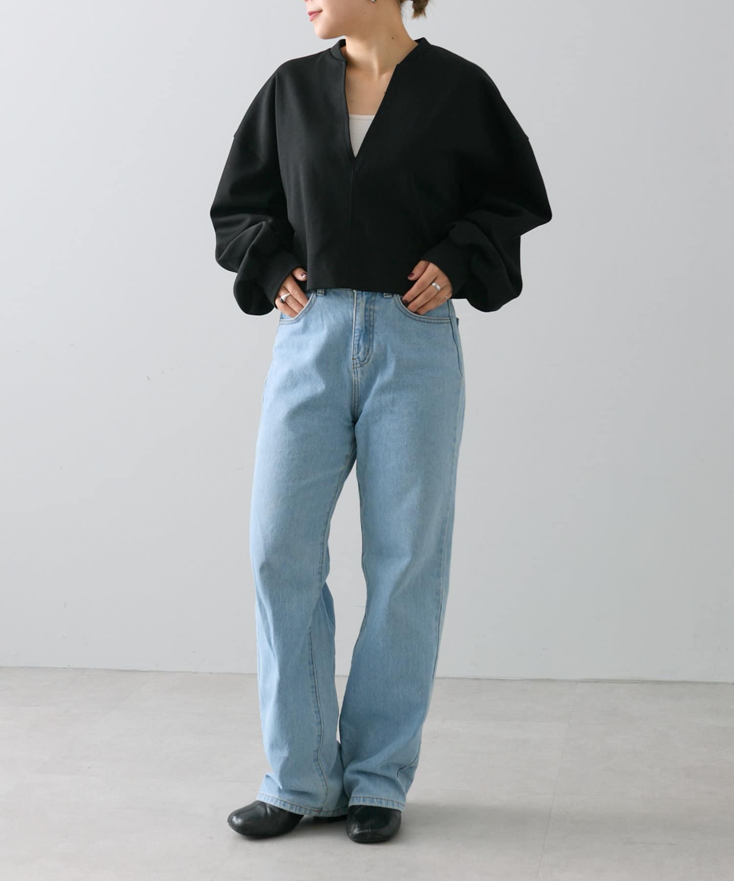 ショート丈ですが、ざっくり着られるのでお腹周りも目立ちません。