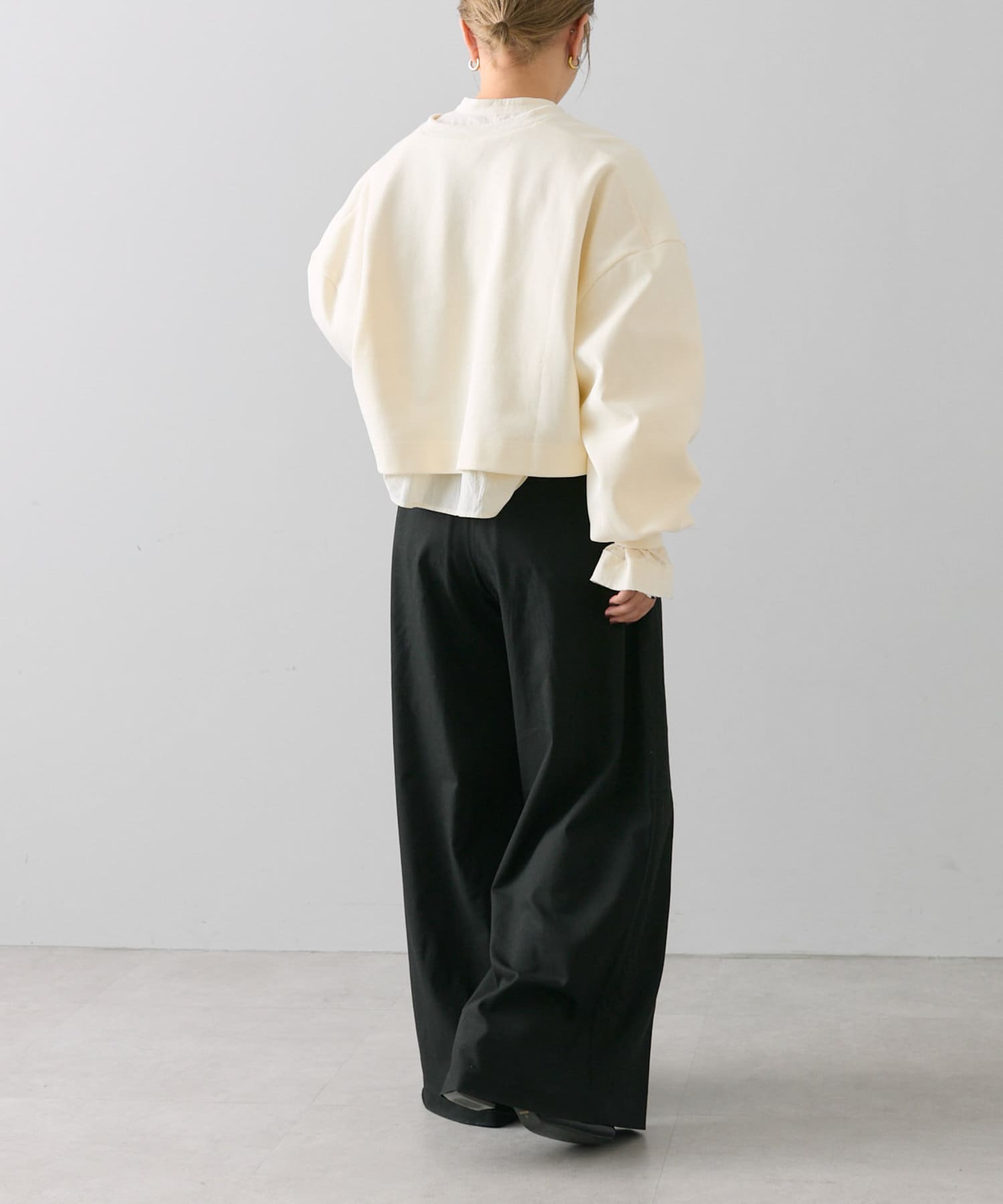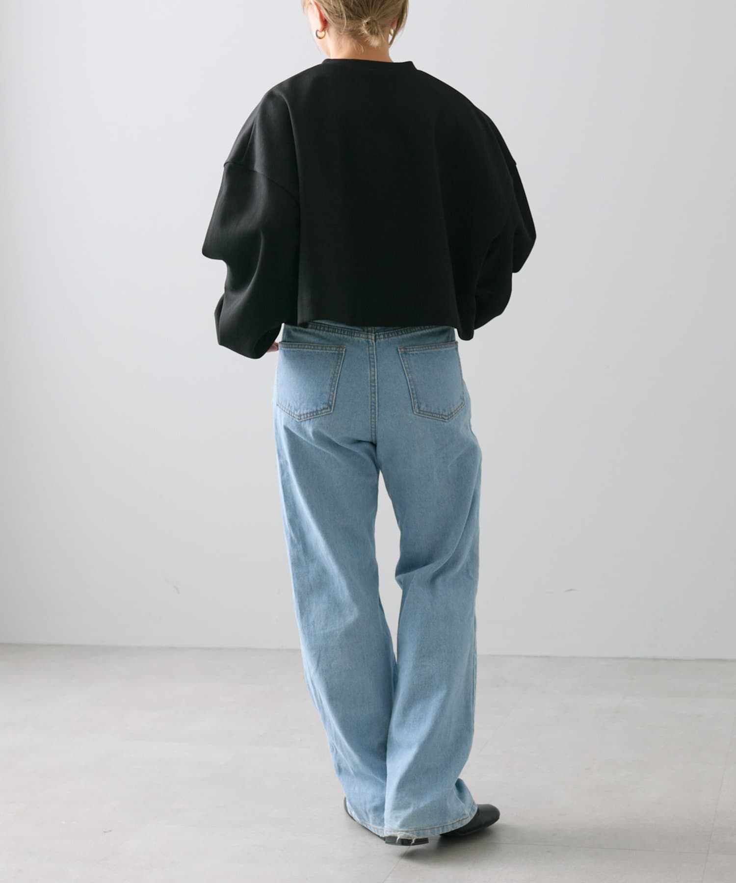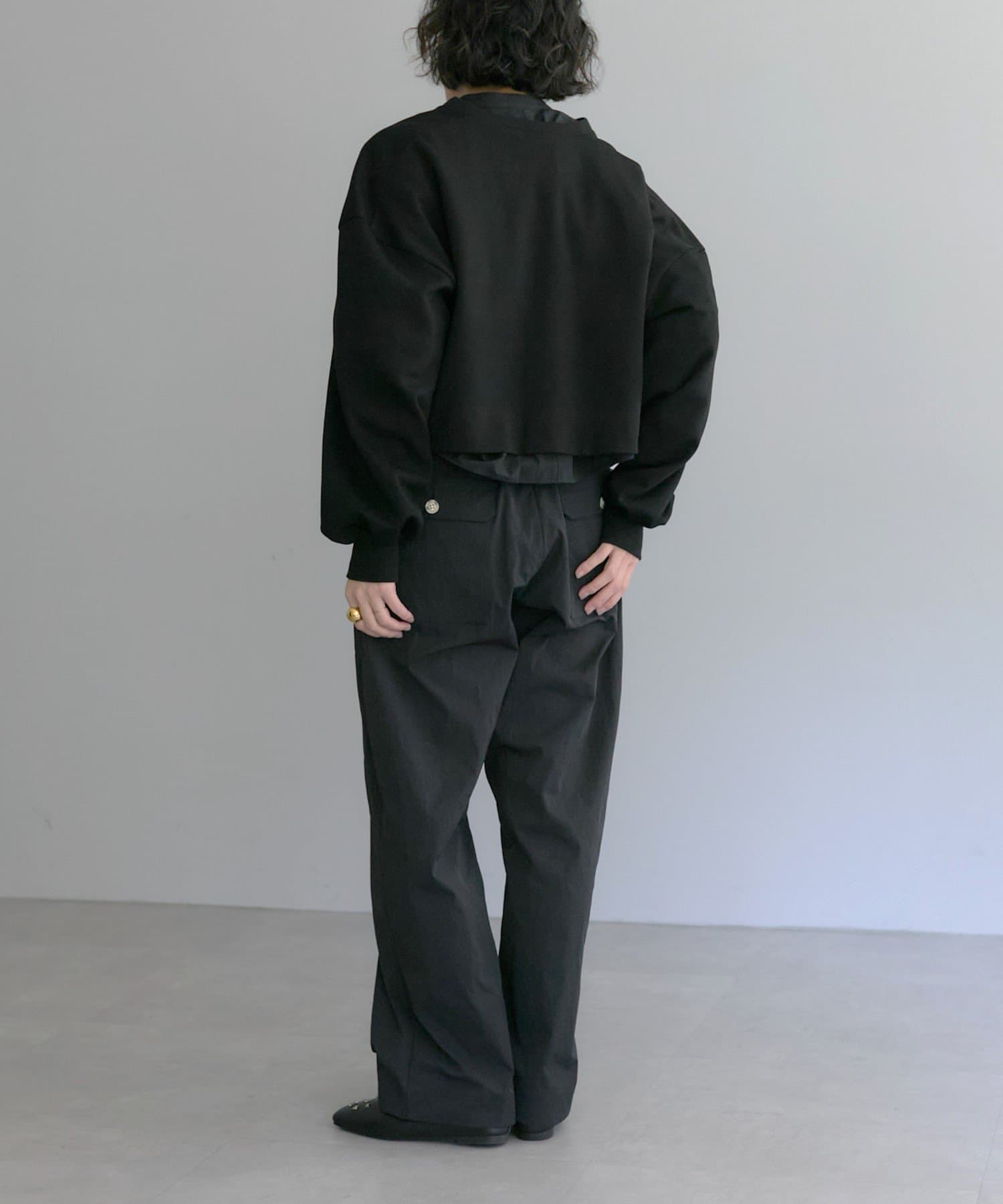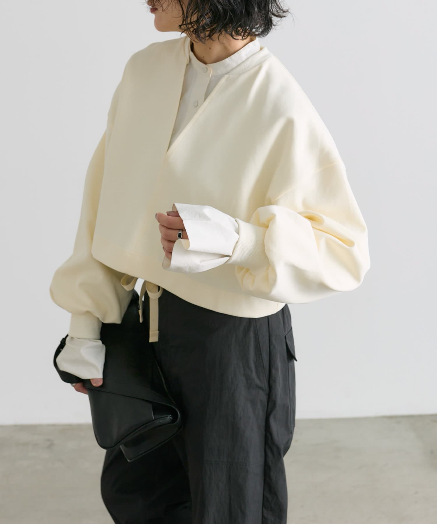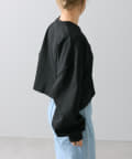 ショート丈ですが、ざっくり着られるのでお腹周りも目立ちません。