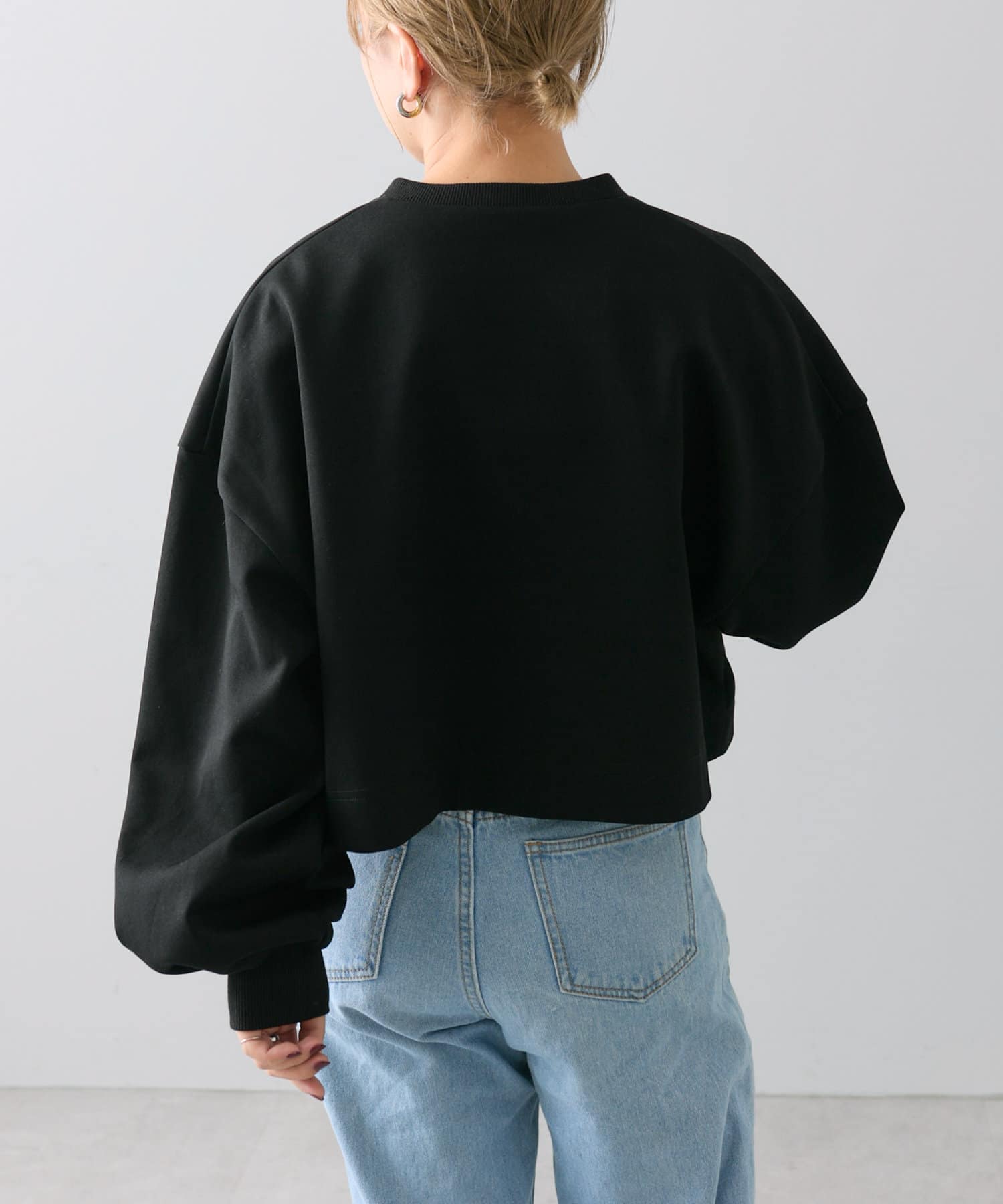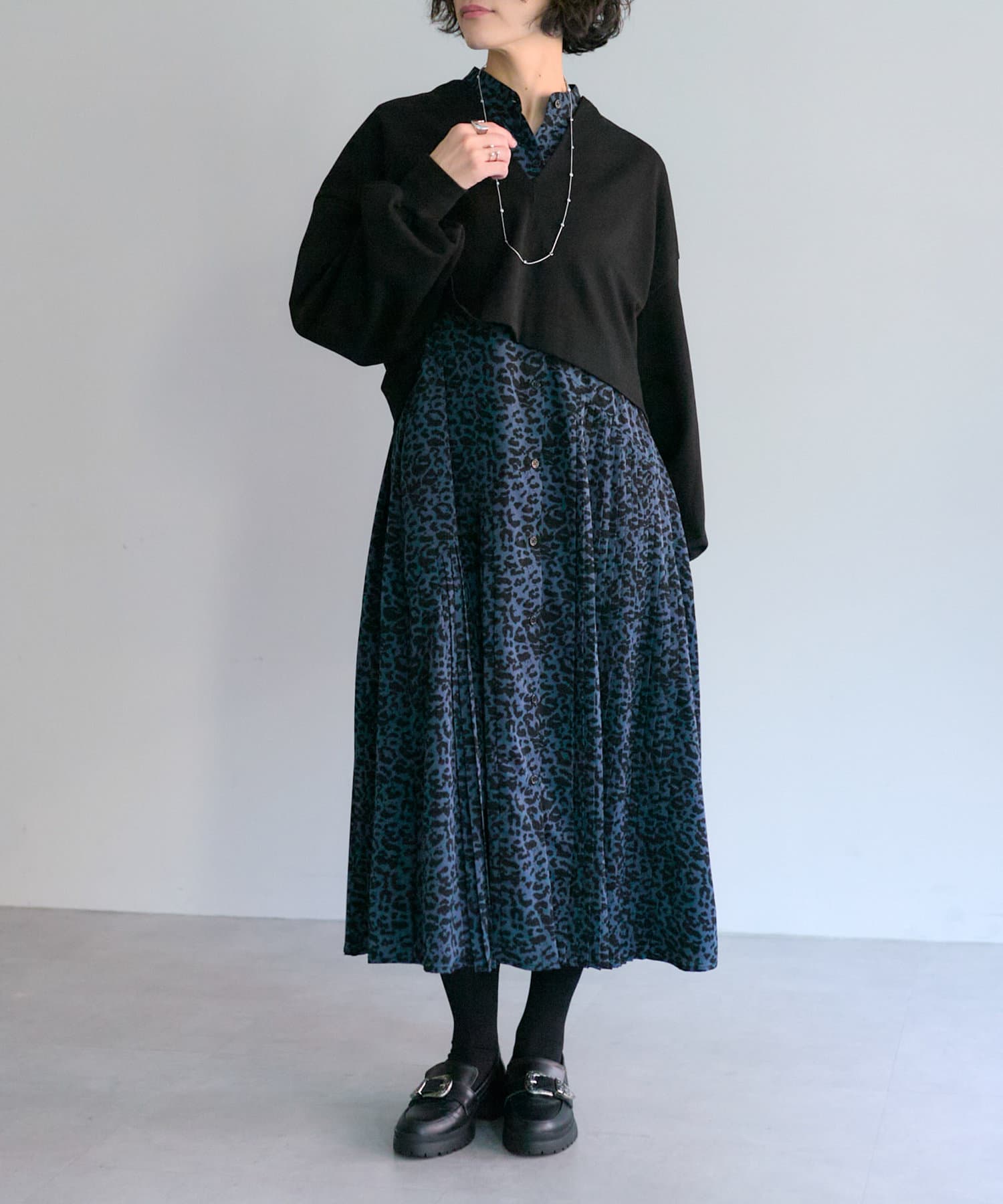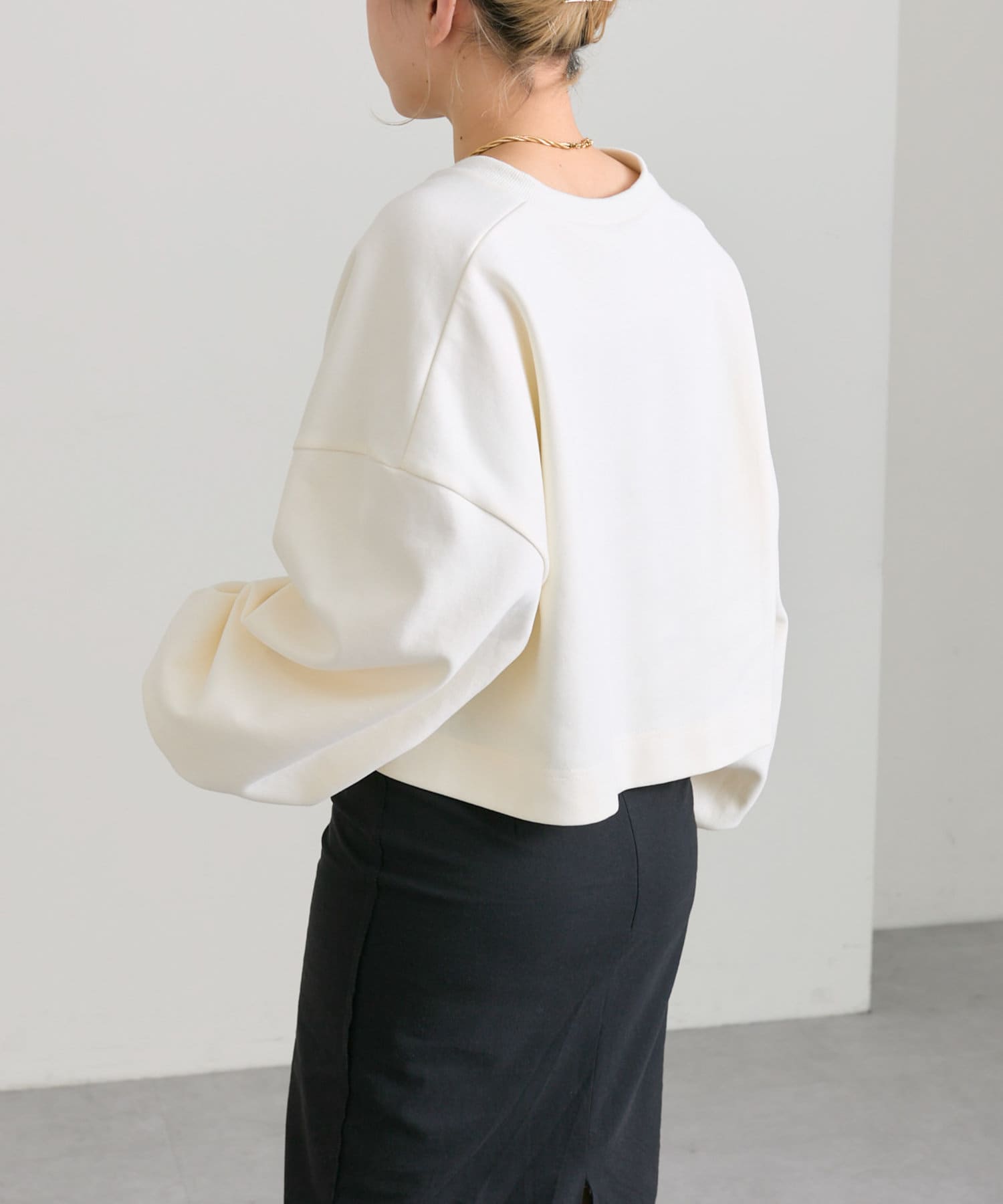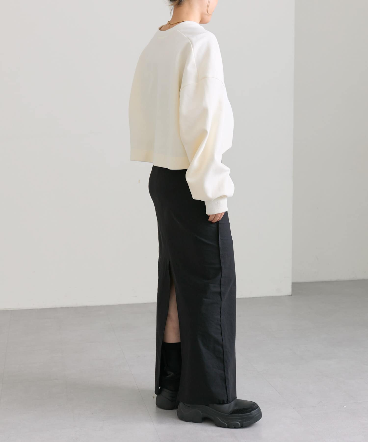 ショート丈ですが、ざっくり着られるのでお腹周りも目立ちません。