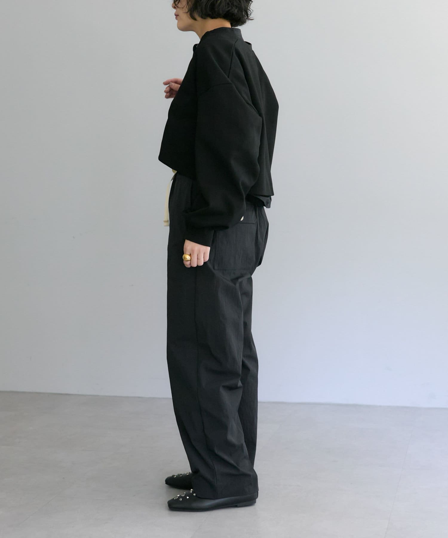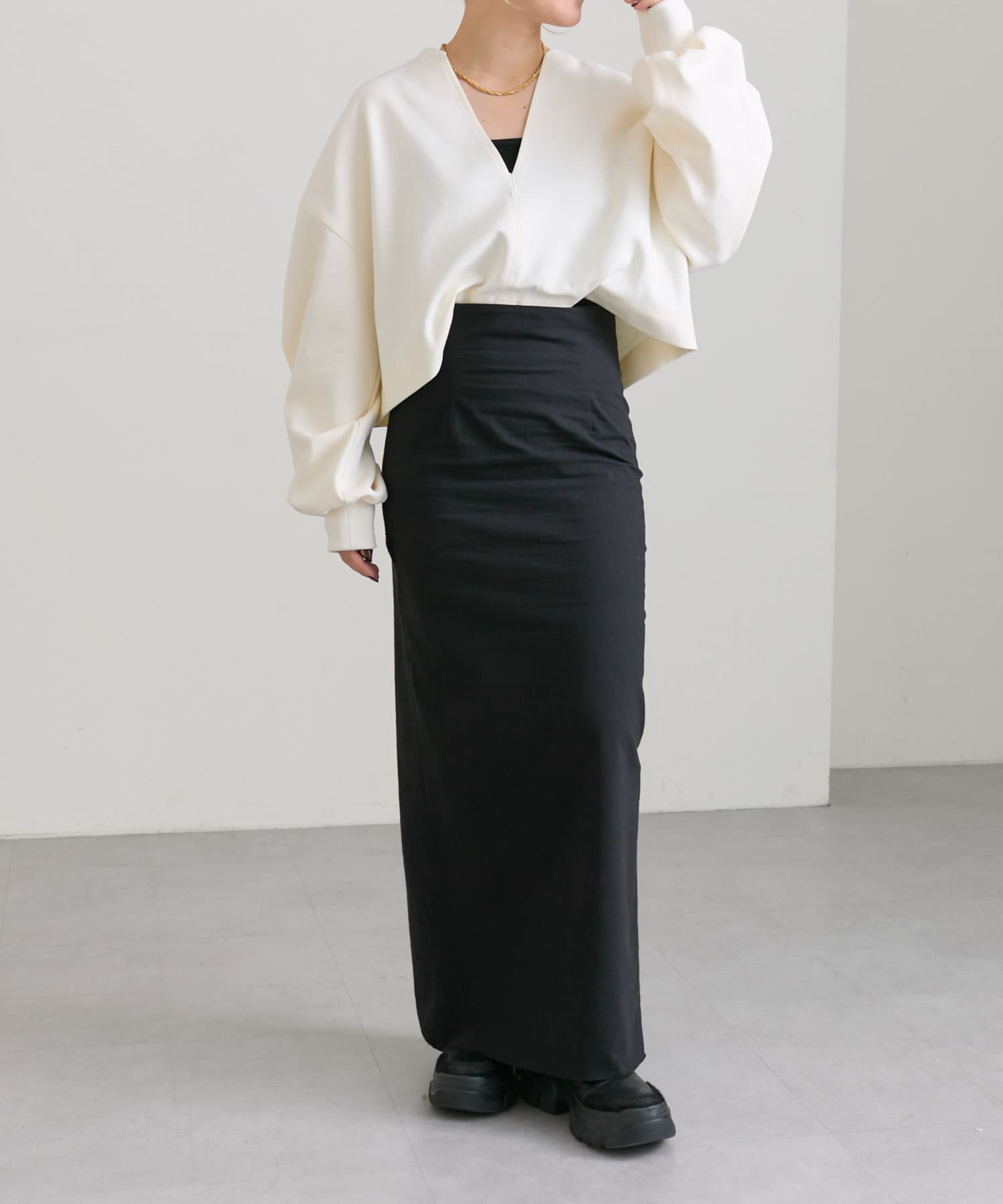 ブラック/サイズFREE/身長153cm/着丈:47cm/柔らかくて伸縮性のある素材感が特徴