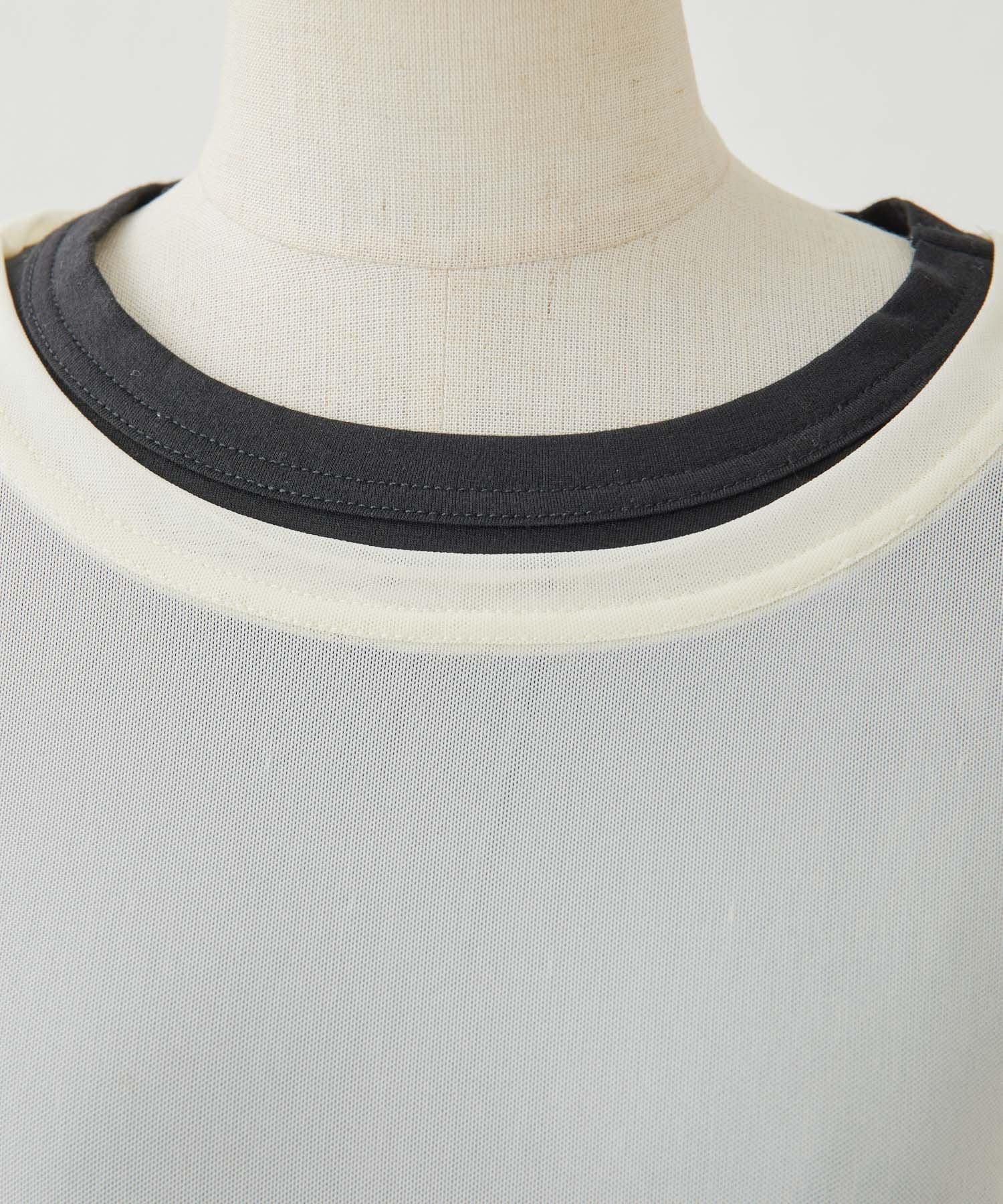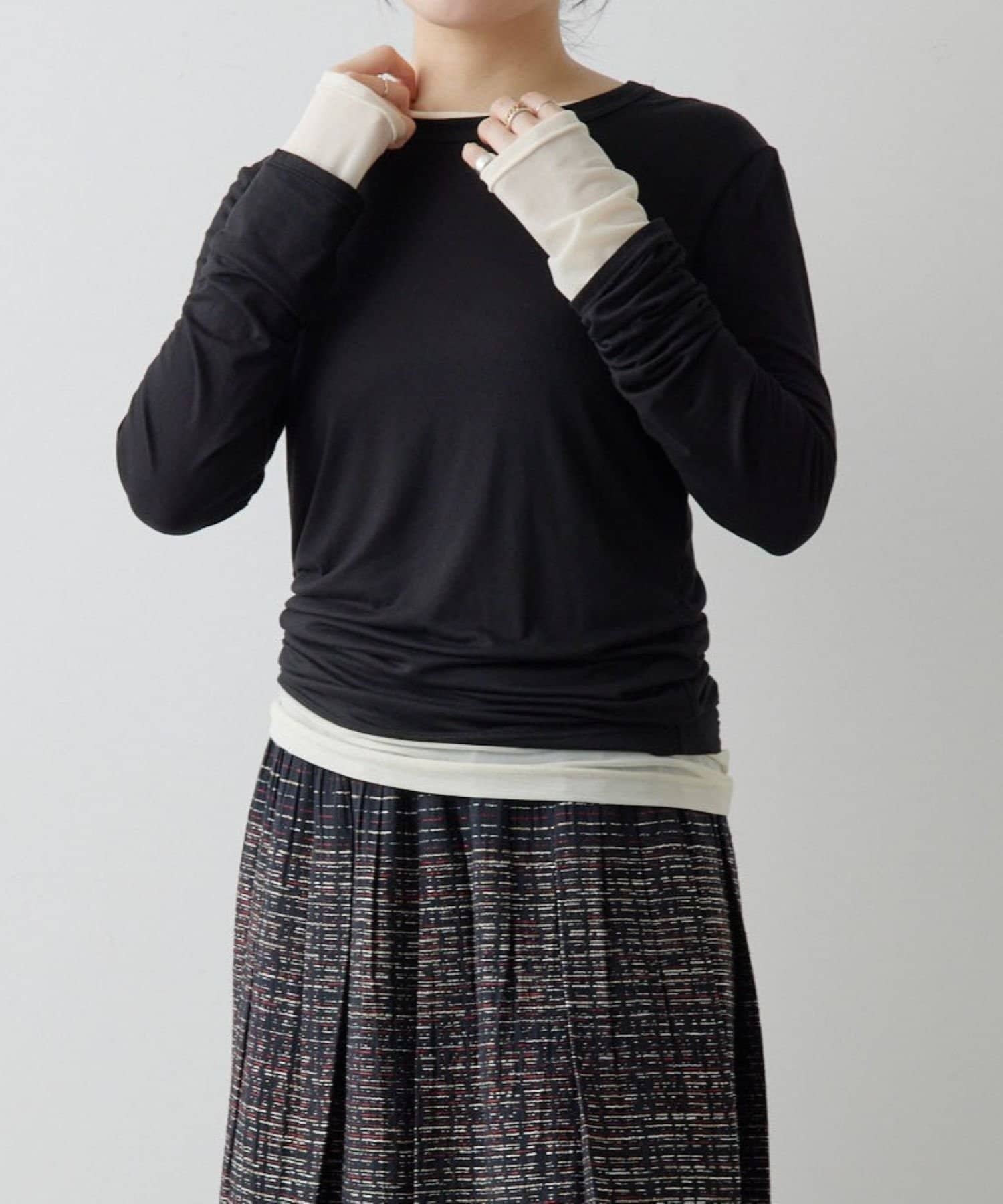 ・色と素材の異なるシンプルな薄手のシアートップス2点セット