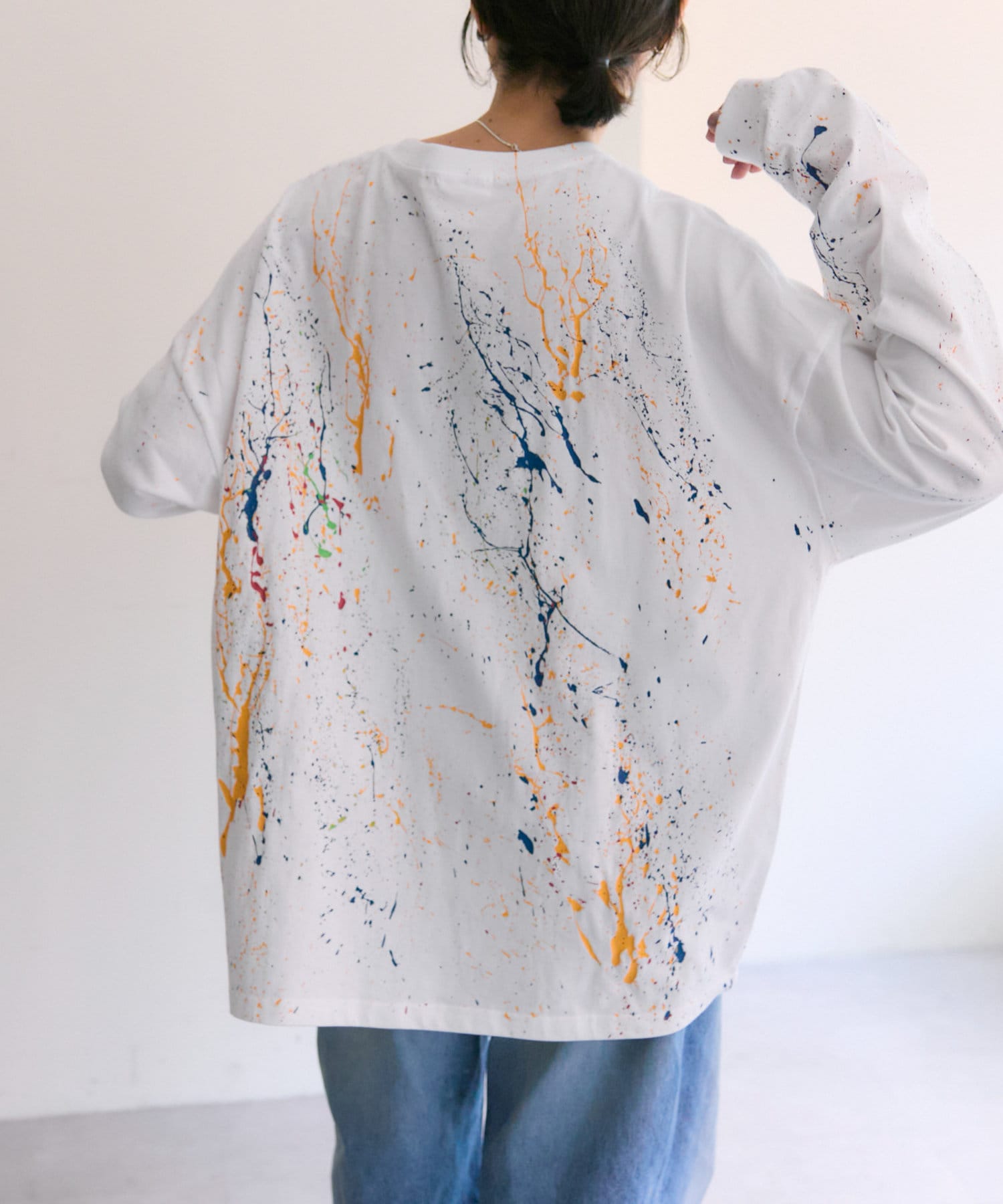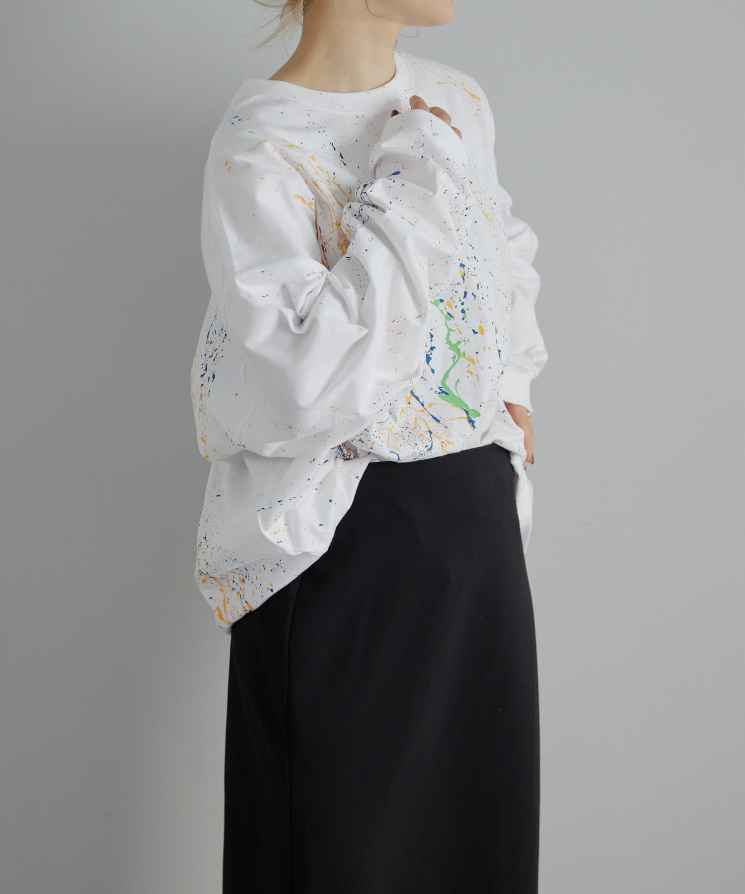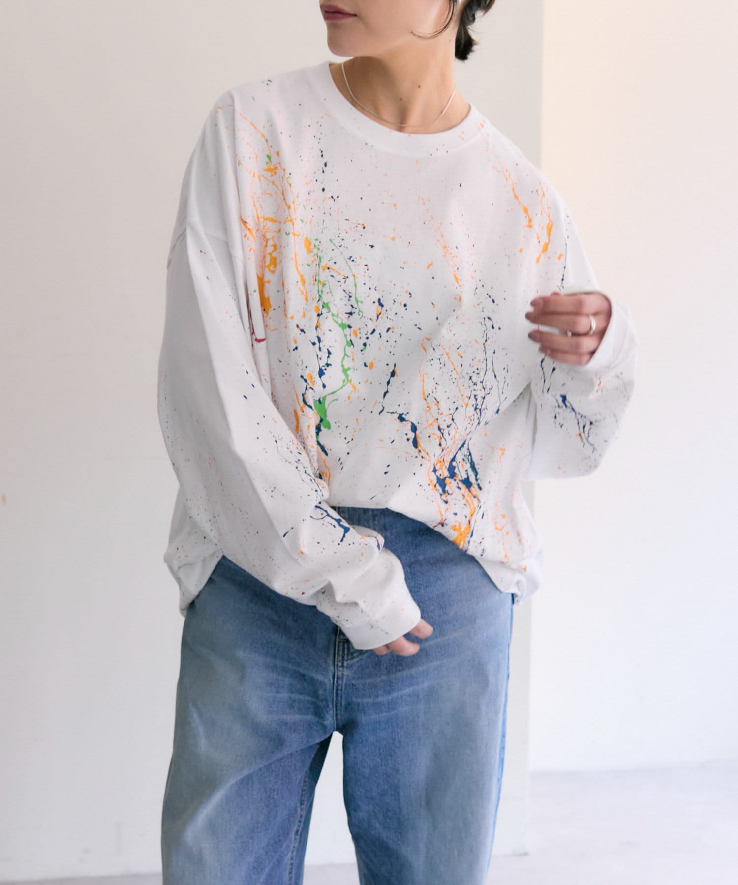 《綿100%》ペイントトップス/ロンT【SUM1 STYLE(スミスタイル)】