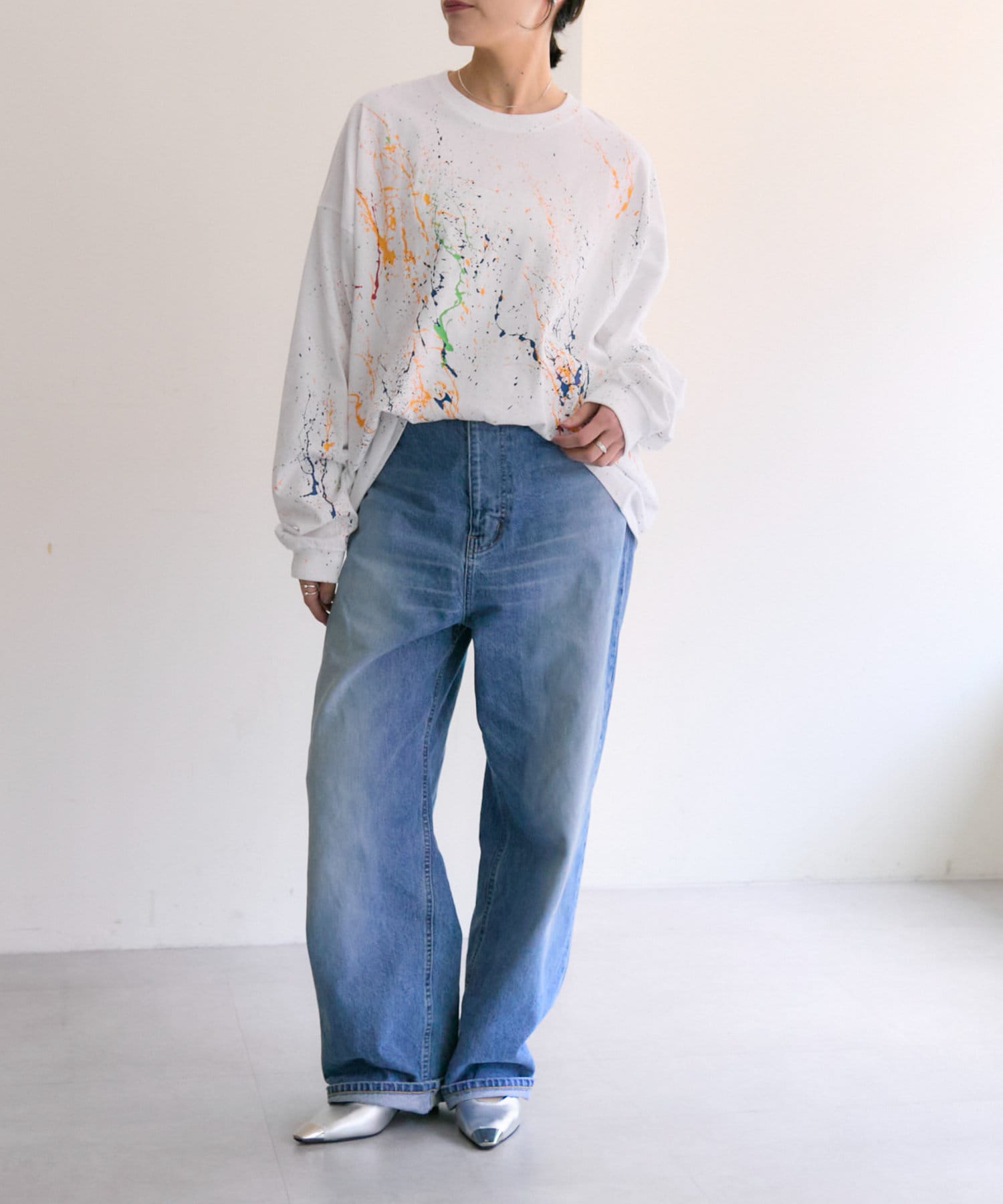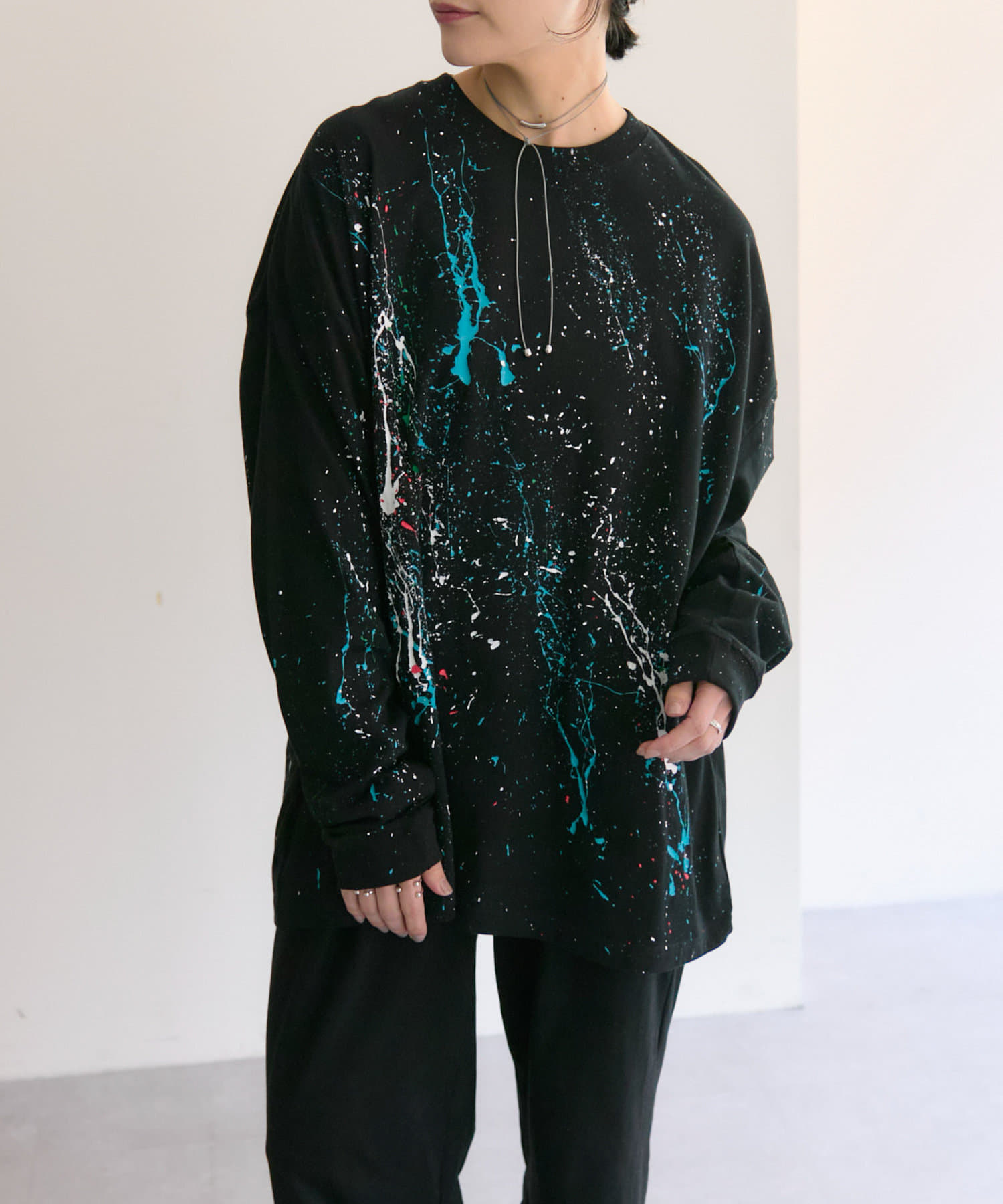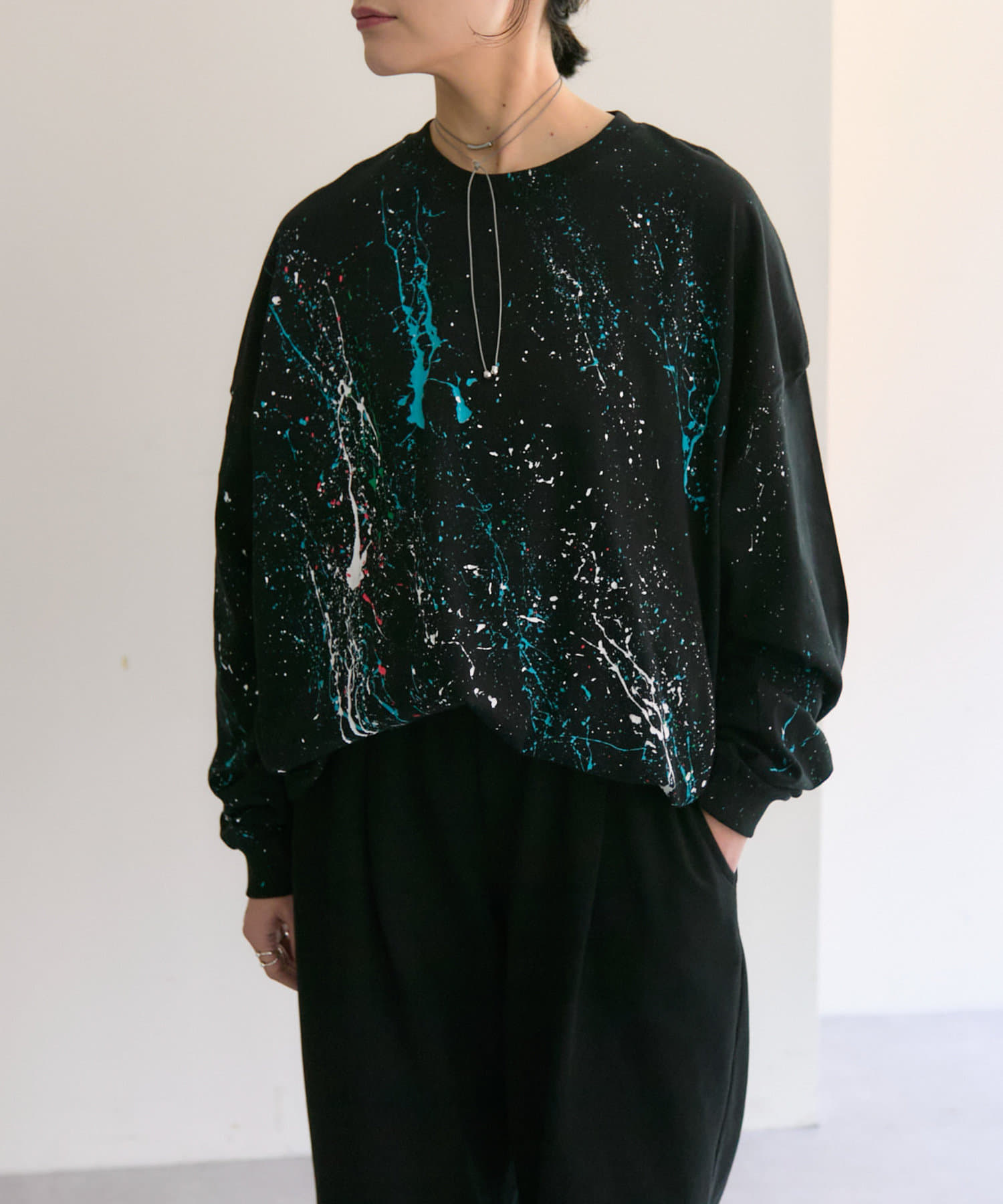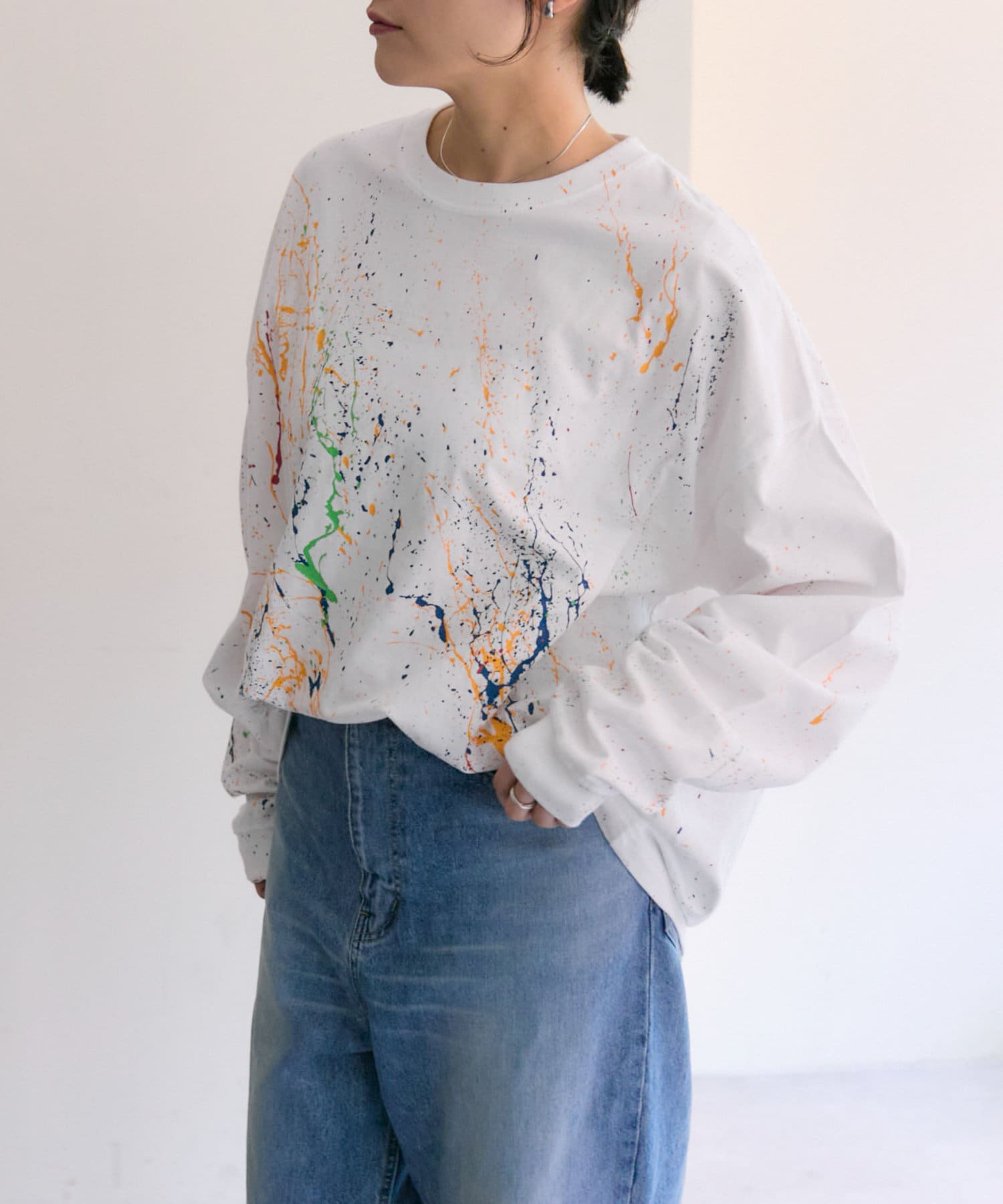 《綿100%》ペイントトップス/ロンT【SUM1 STYLE(スミスタイル)】