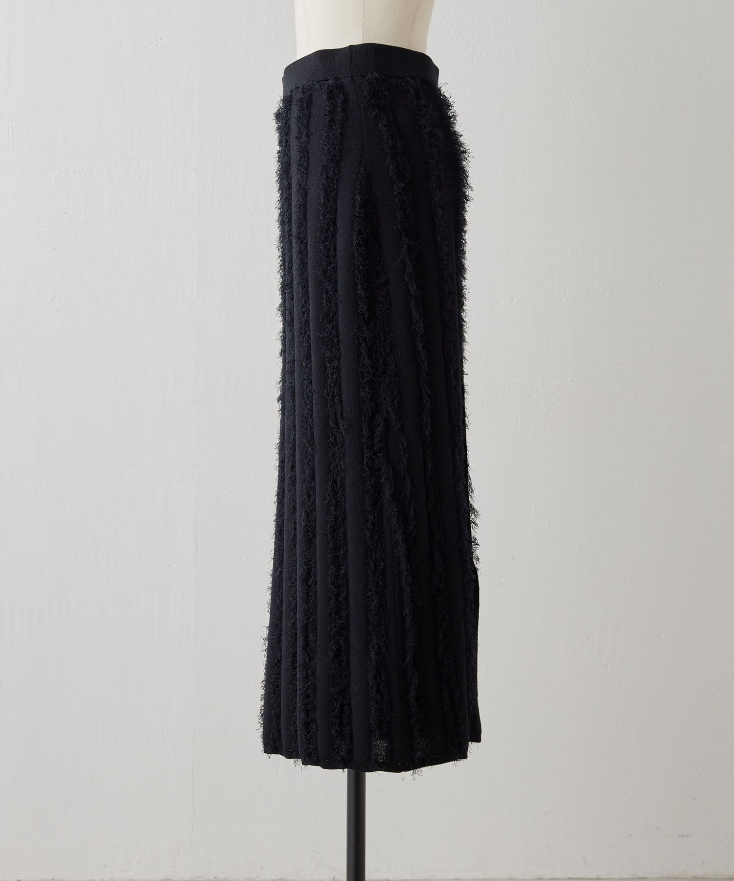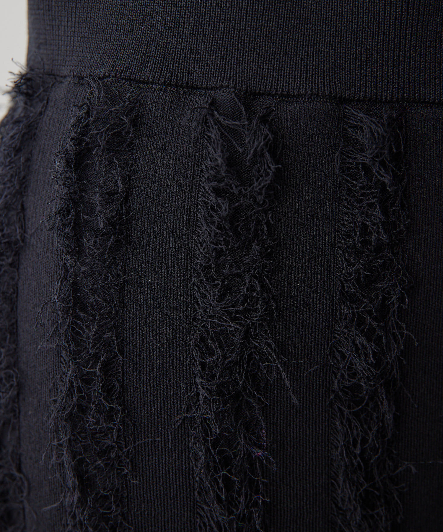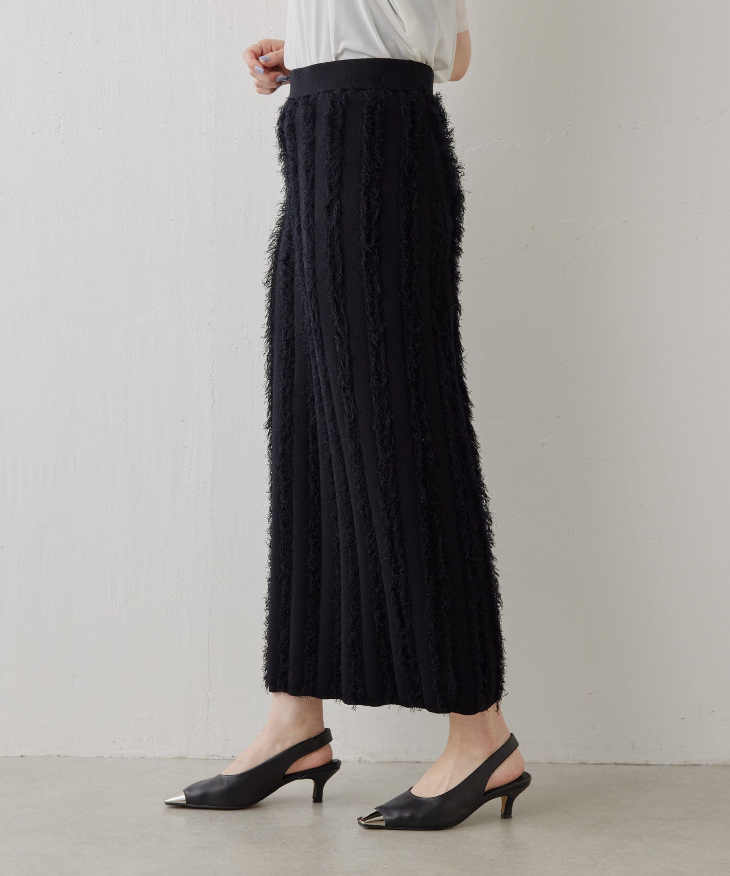 ・毛足の長いフリンジデザインが華やかなニットスカート
