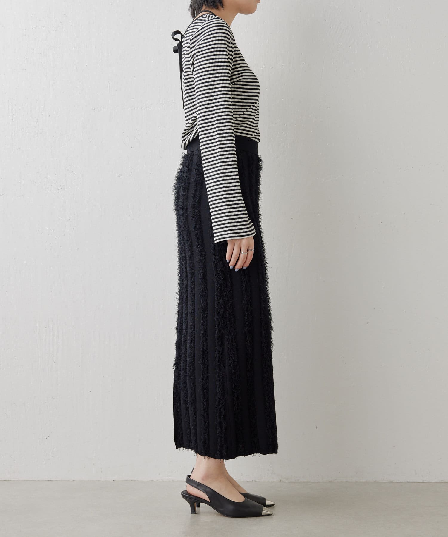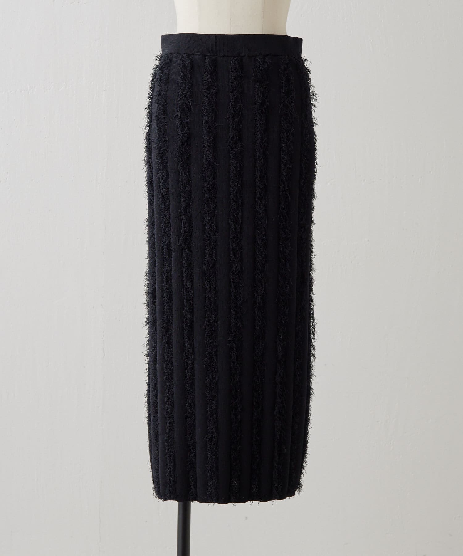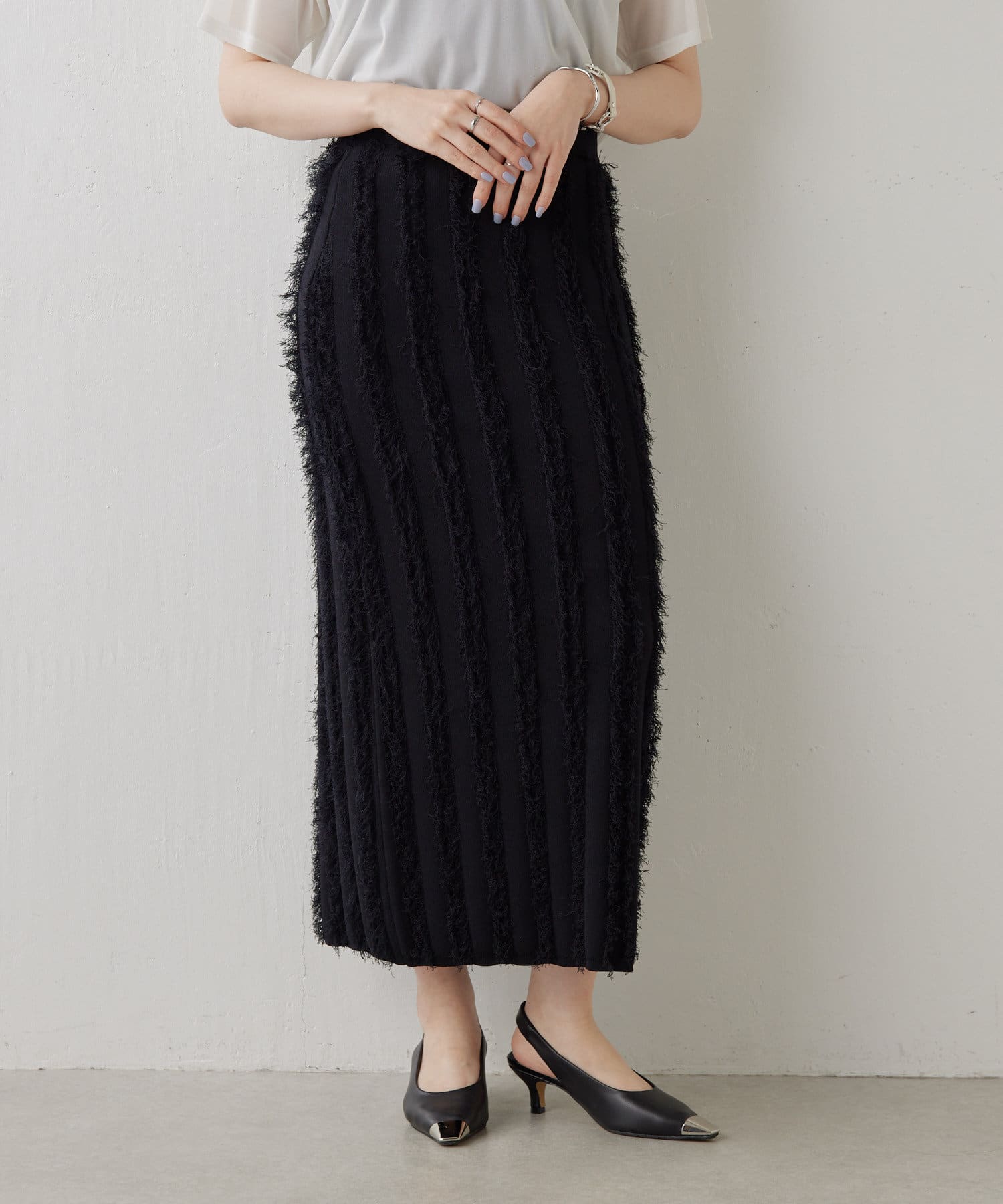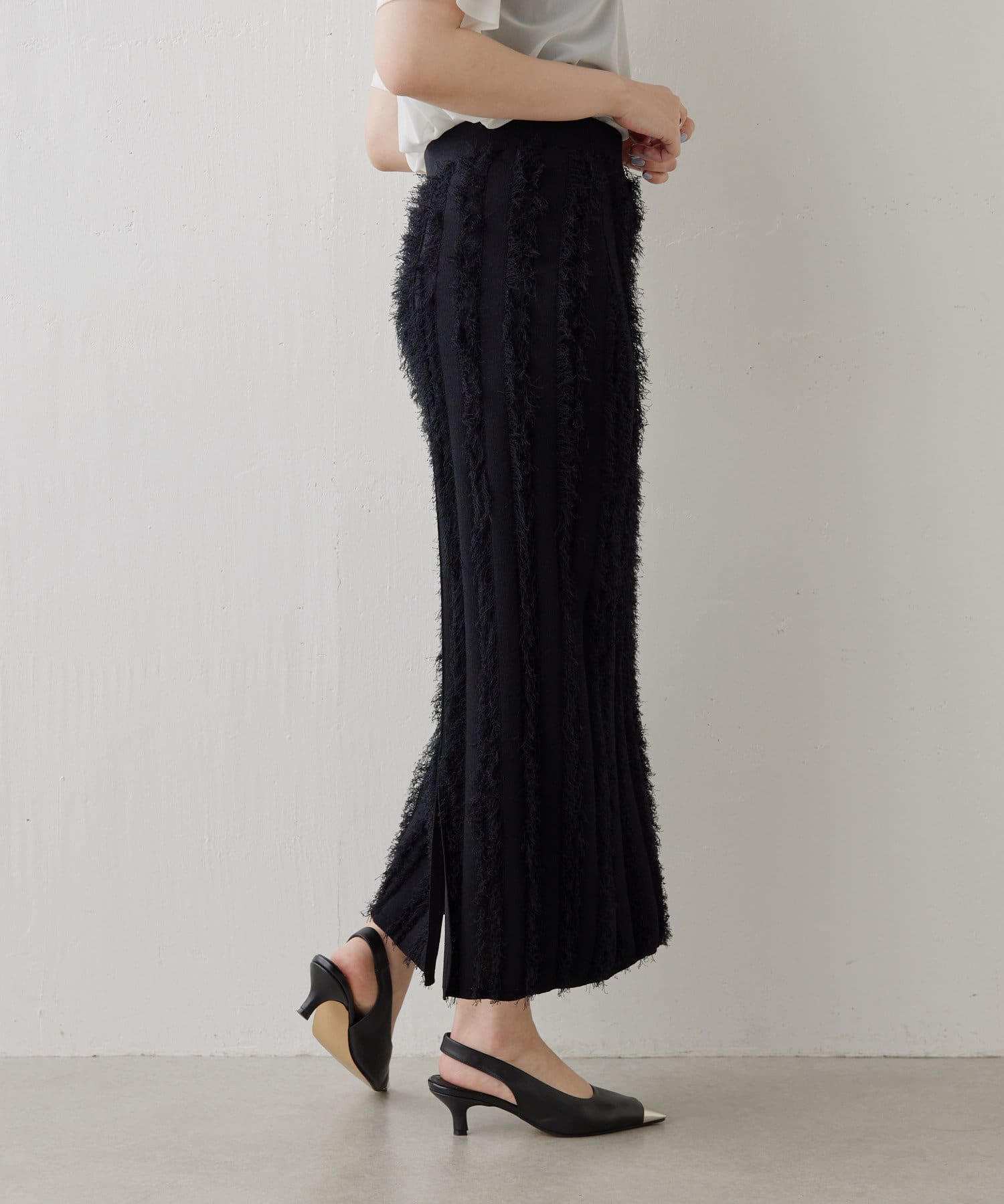 ・毛足の長いフリンジデザインが華やかなニットスカート