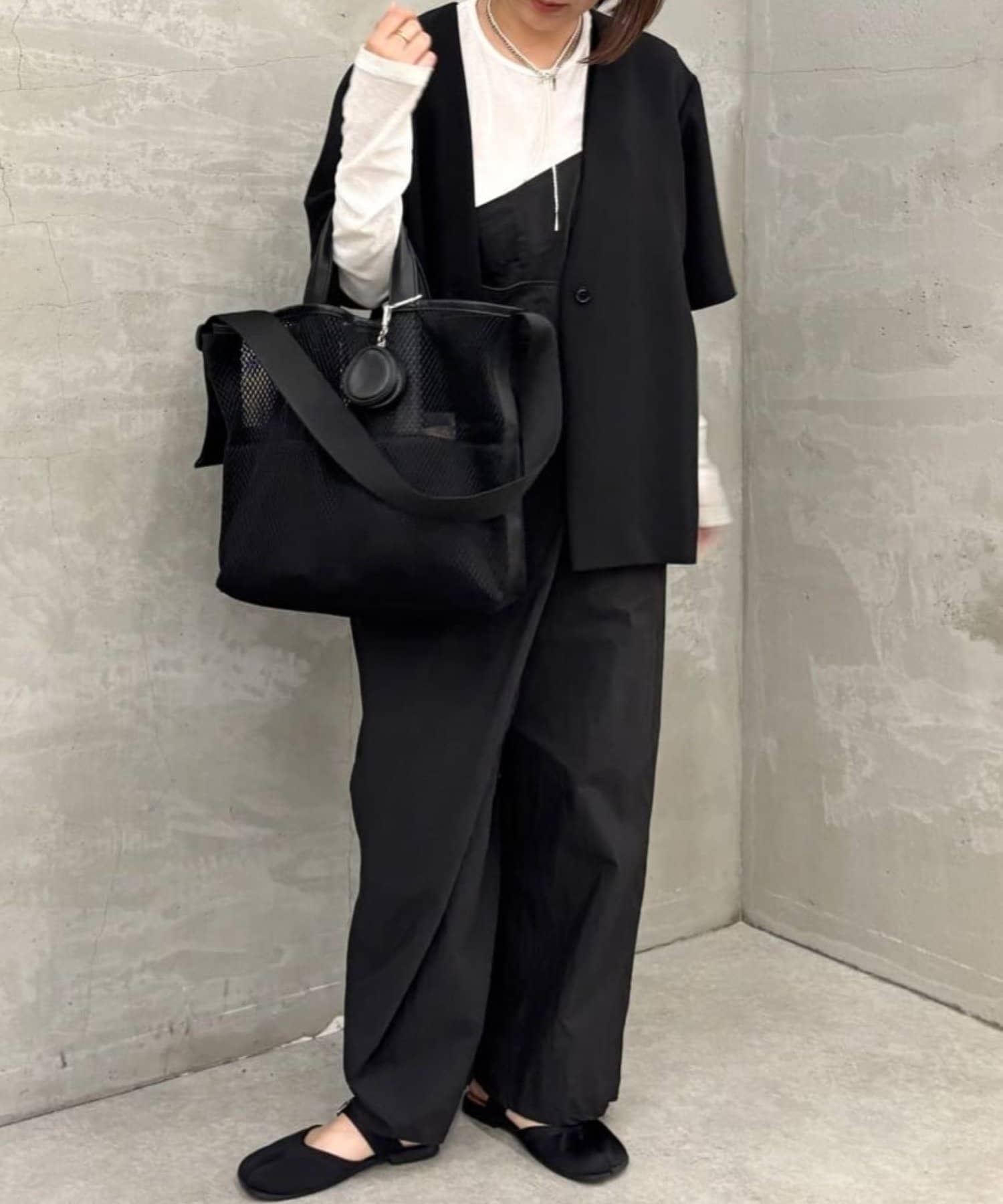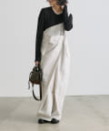 シンプルなカットソーやTシャツ、ブラウスなど幅広いアイテムと相性よくマッチ。