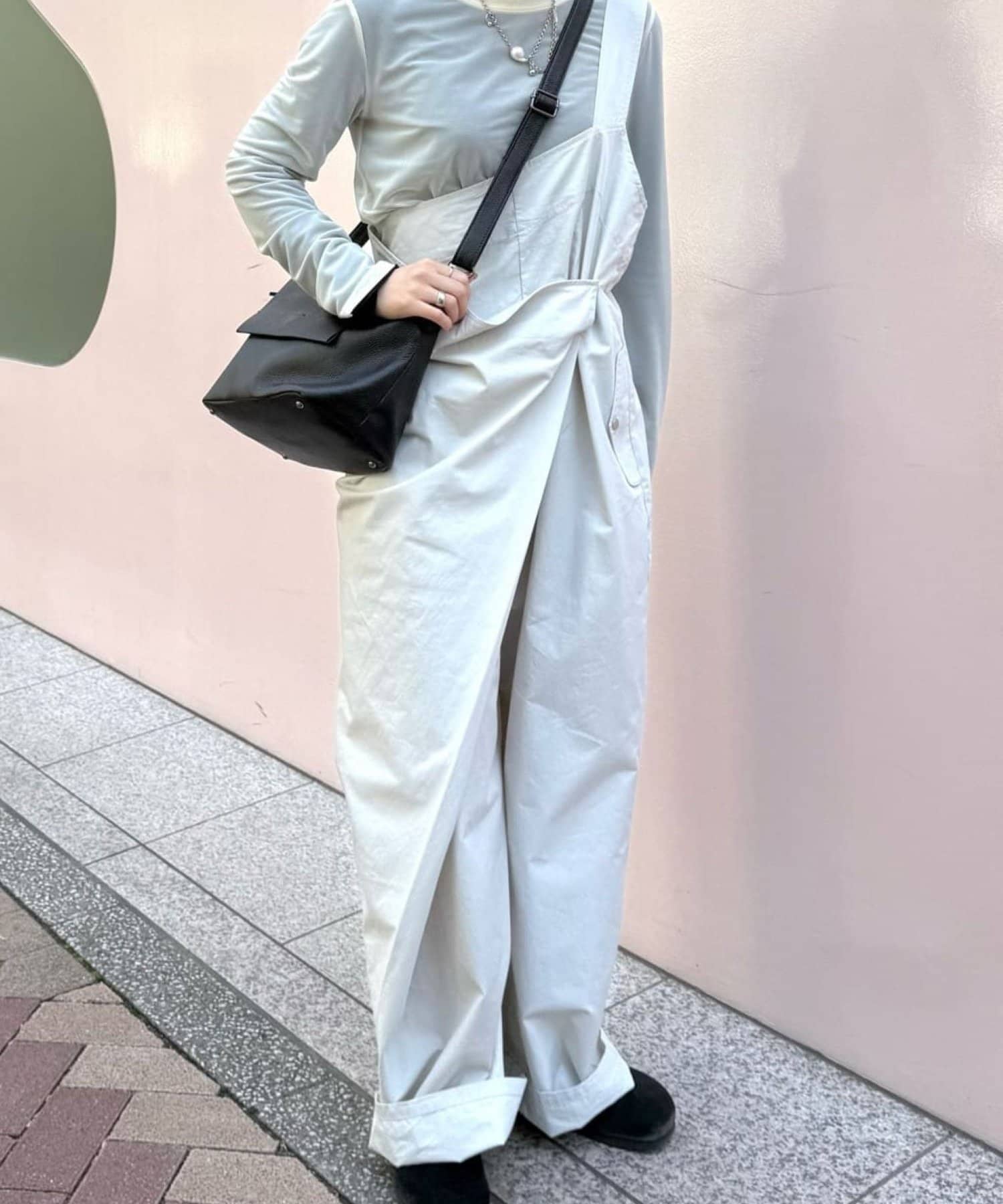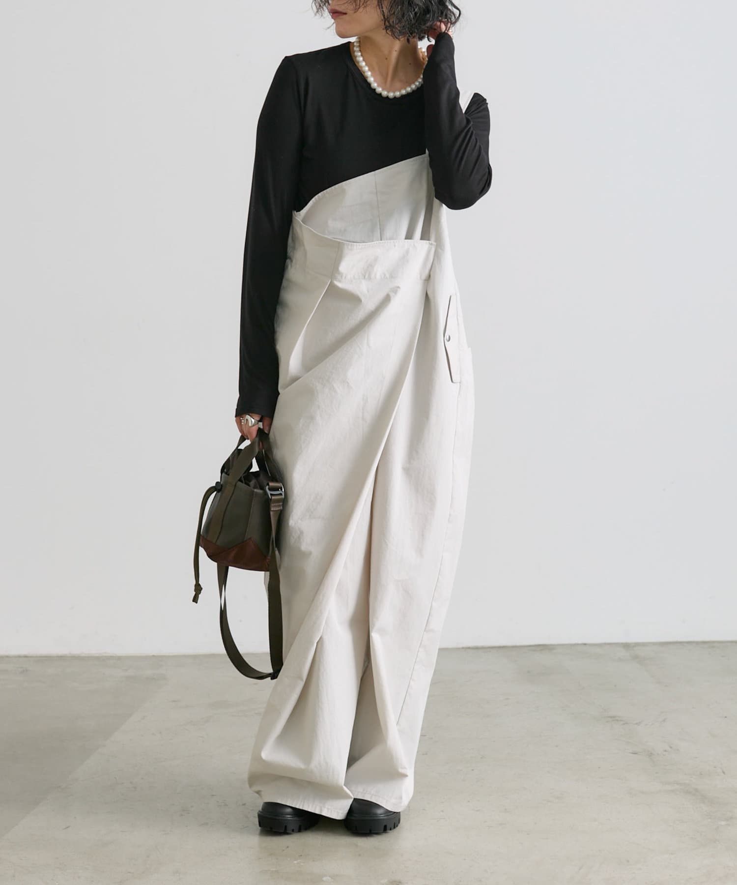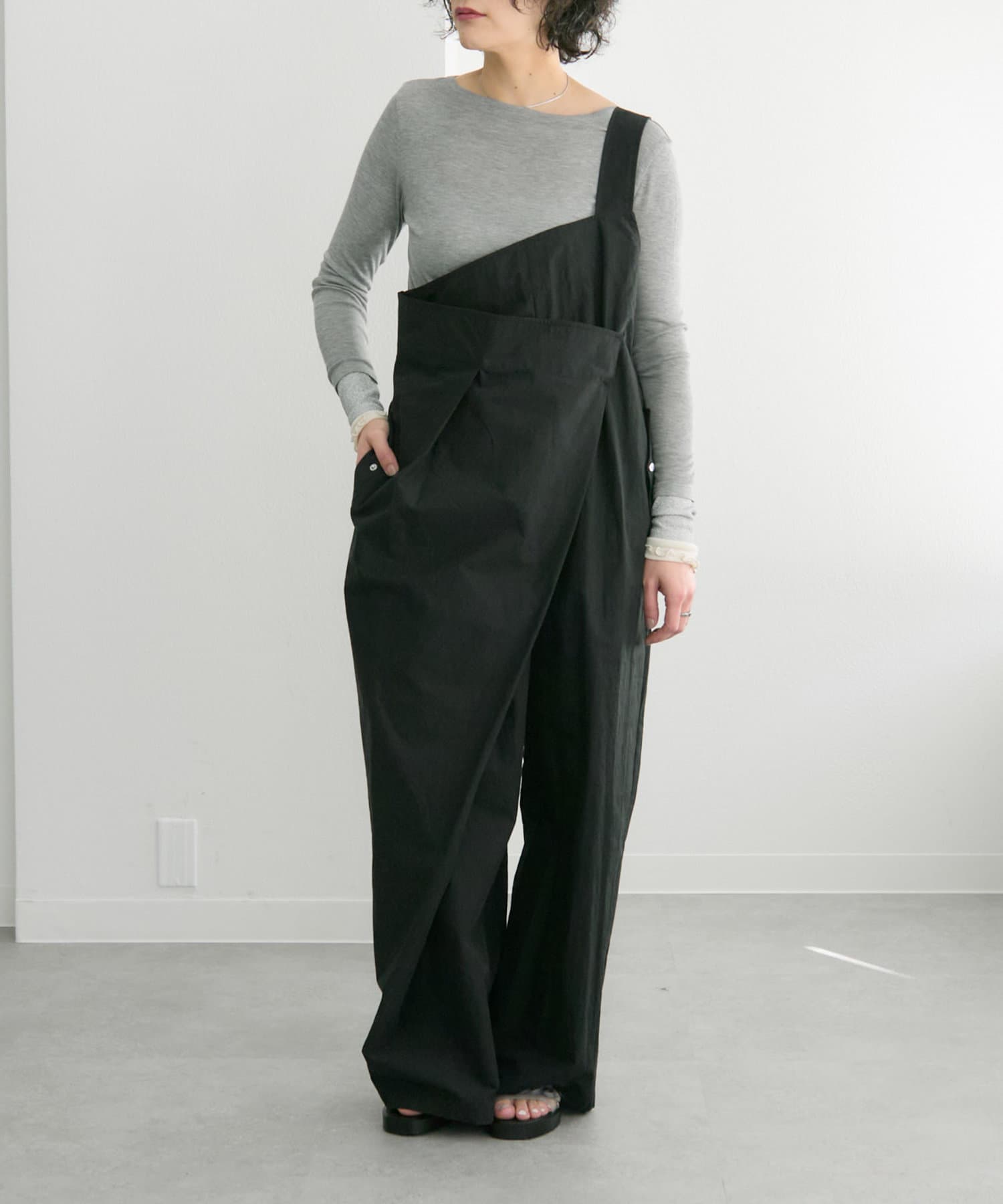 《動画あり/イージーケア/ドライタッチ》ワンショルダーラップサロペット【SUM1 STYLE(スミスタイル)】