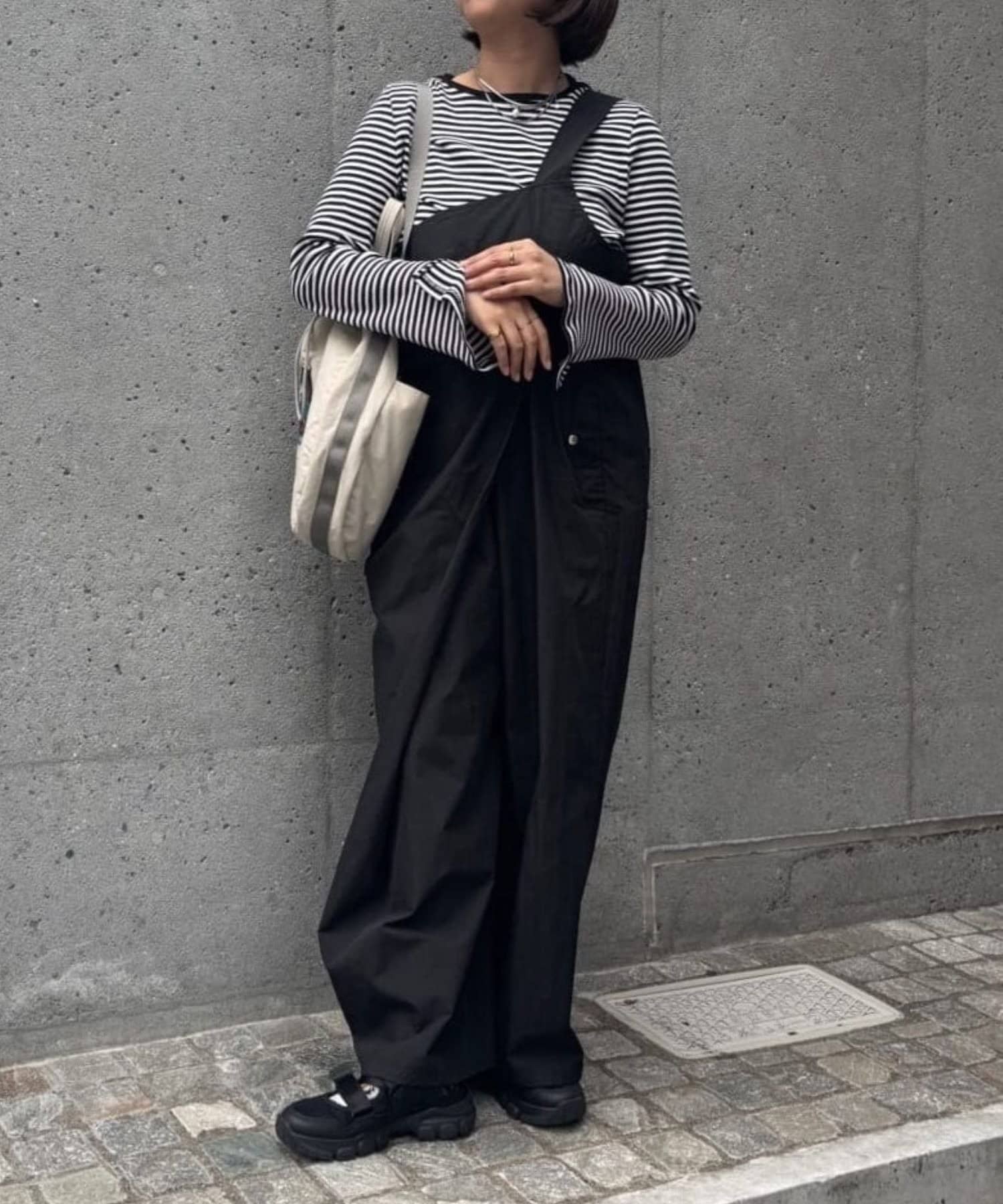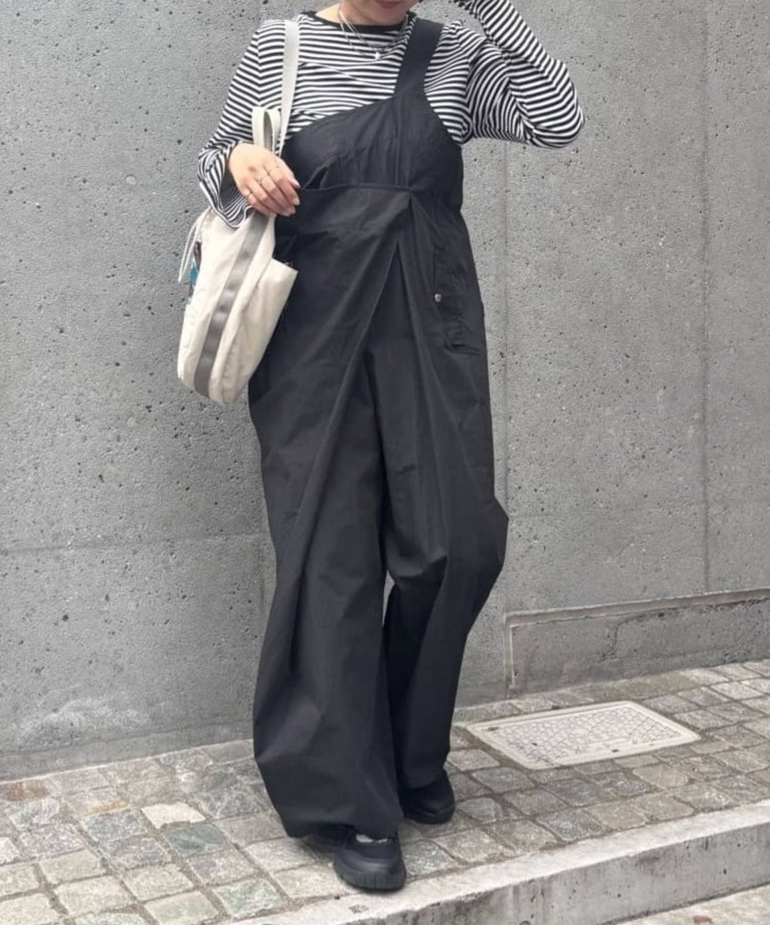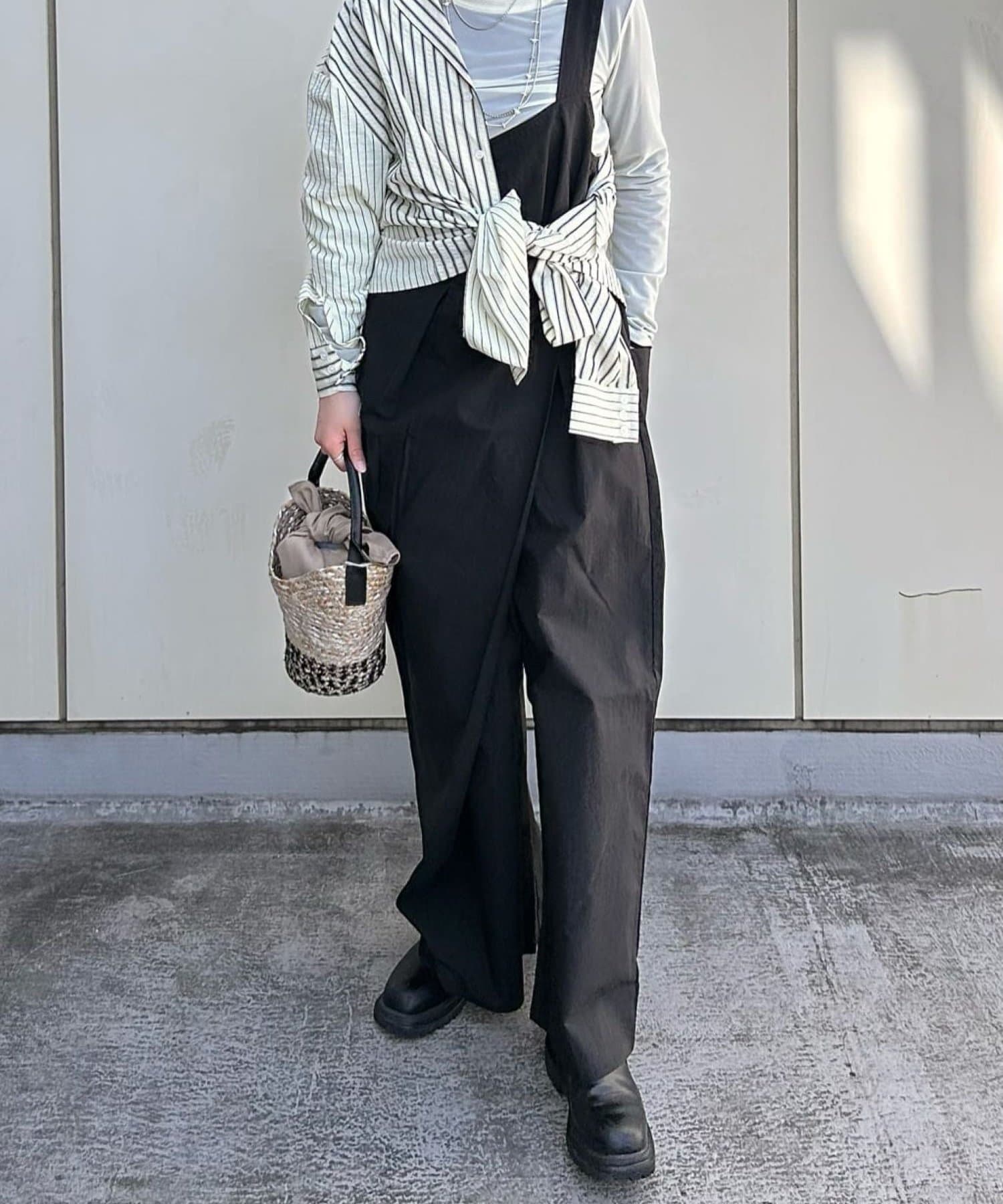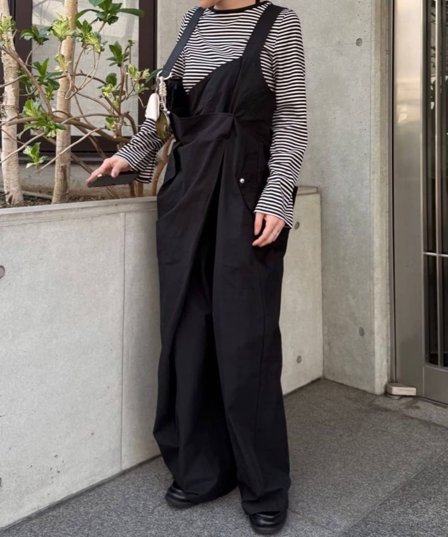 《動画あり/イージーケア/ドライタッチ》ワンショルダーラップサロペット【SUM1 STYLE(スミスタイル)】