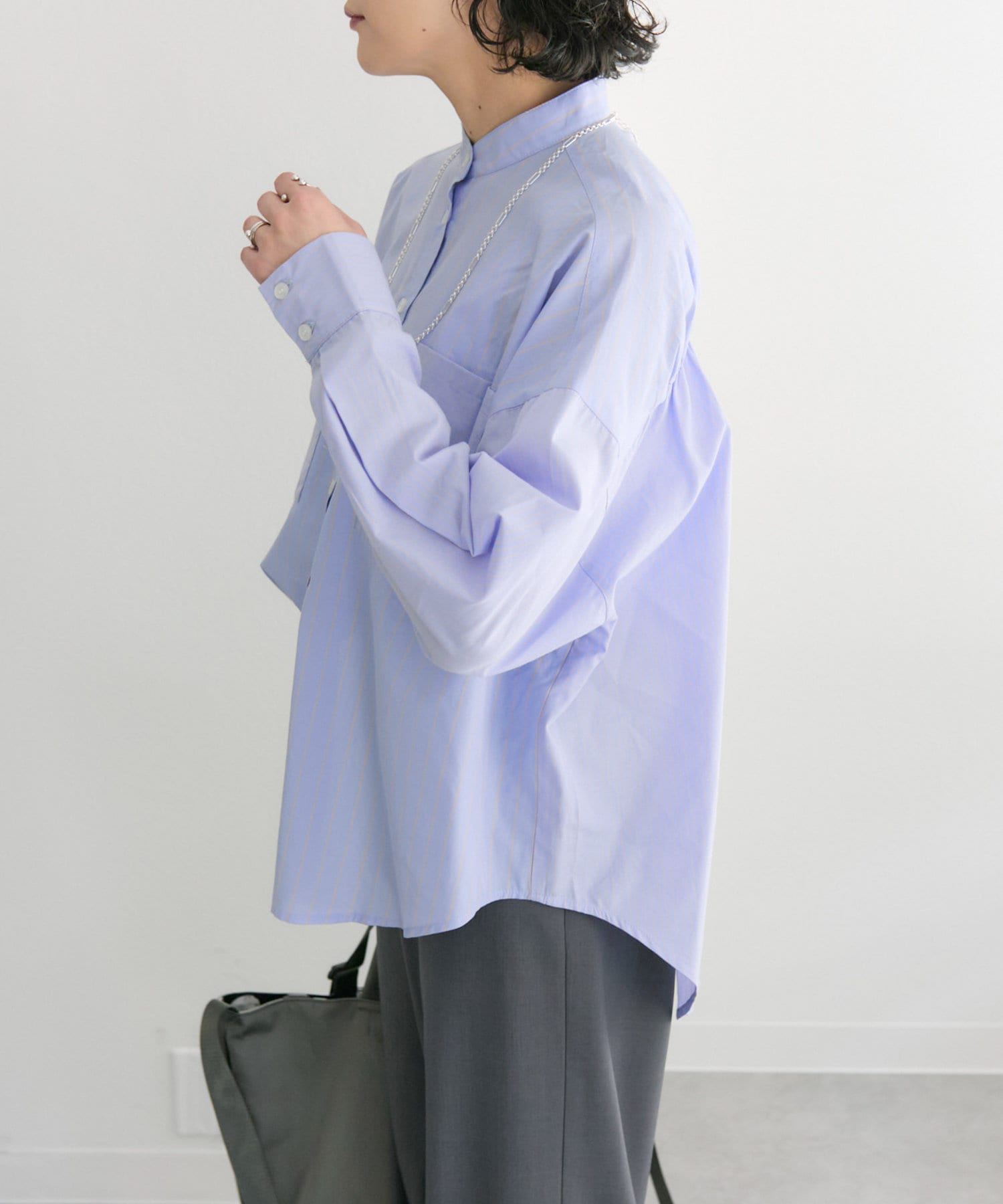 ふんわりと軽やかな印象のデザインシャツ