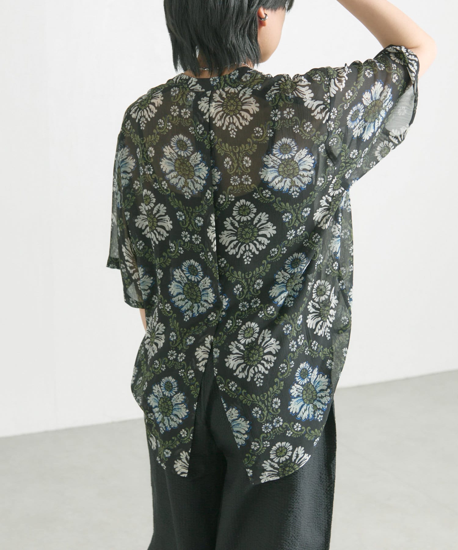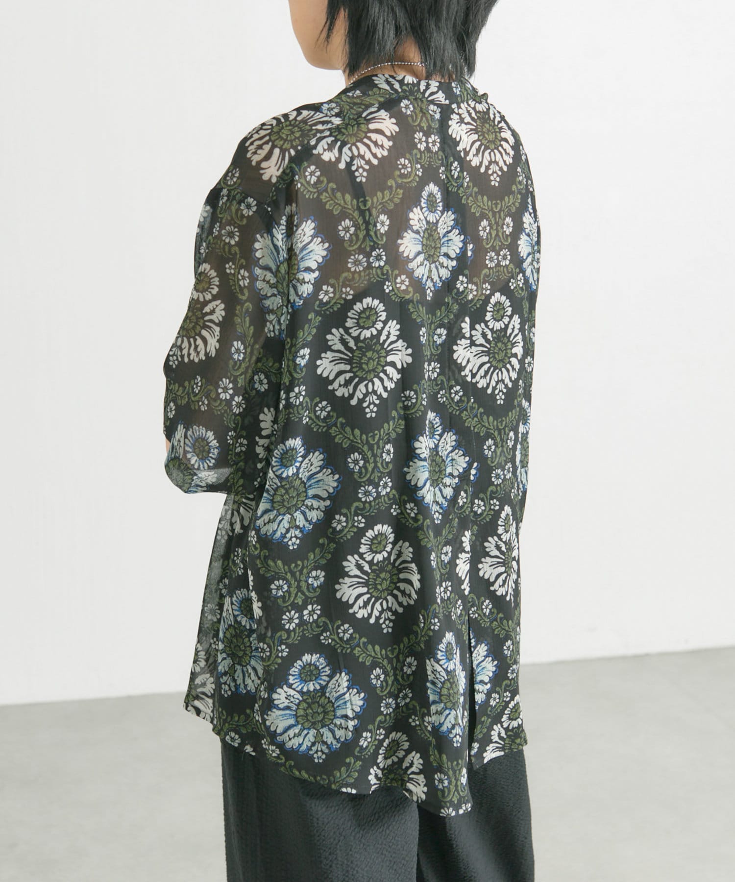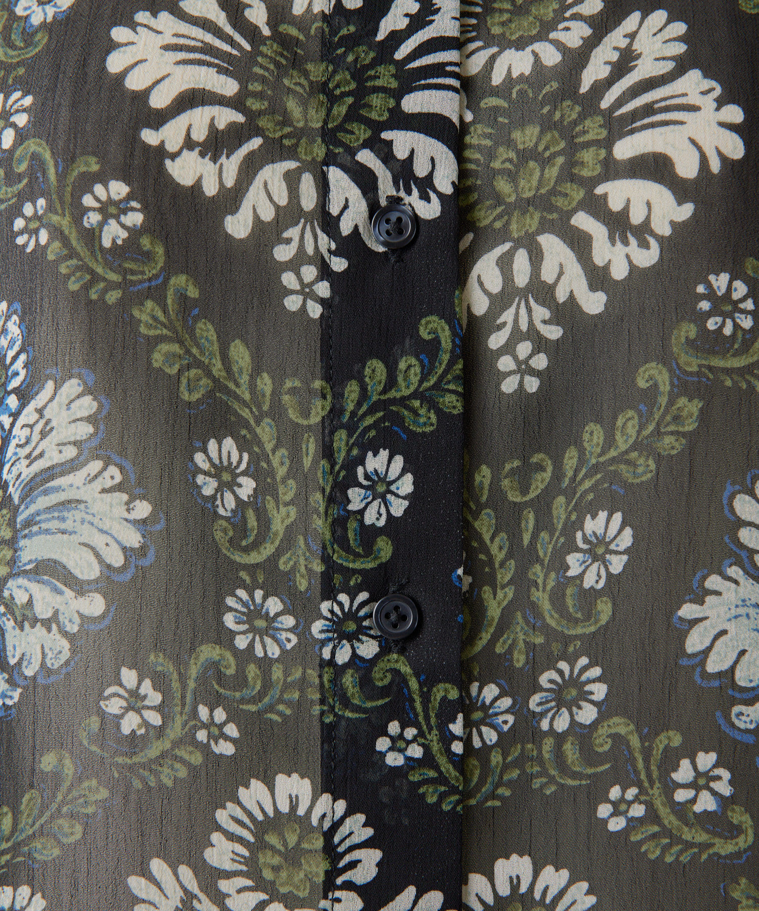 ・コーデの主役になる1枚で華やな総柄シアーシャツ