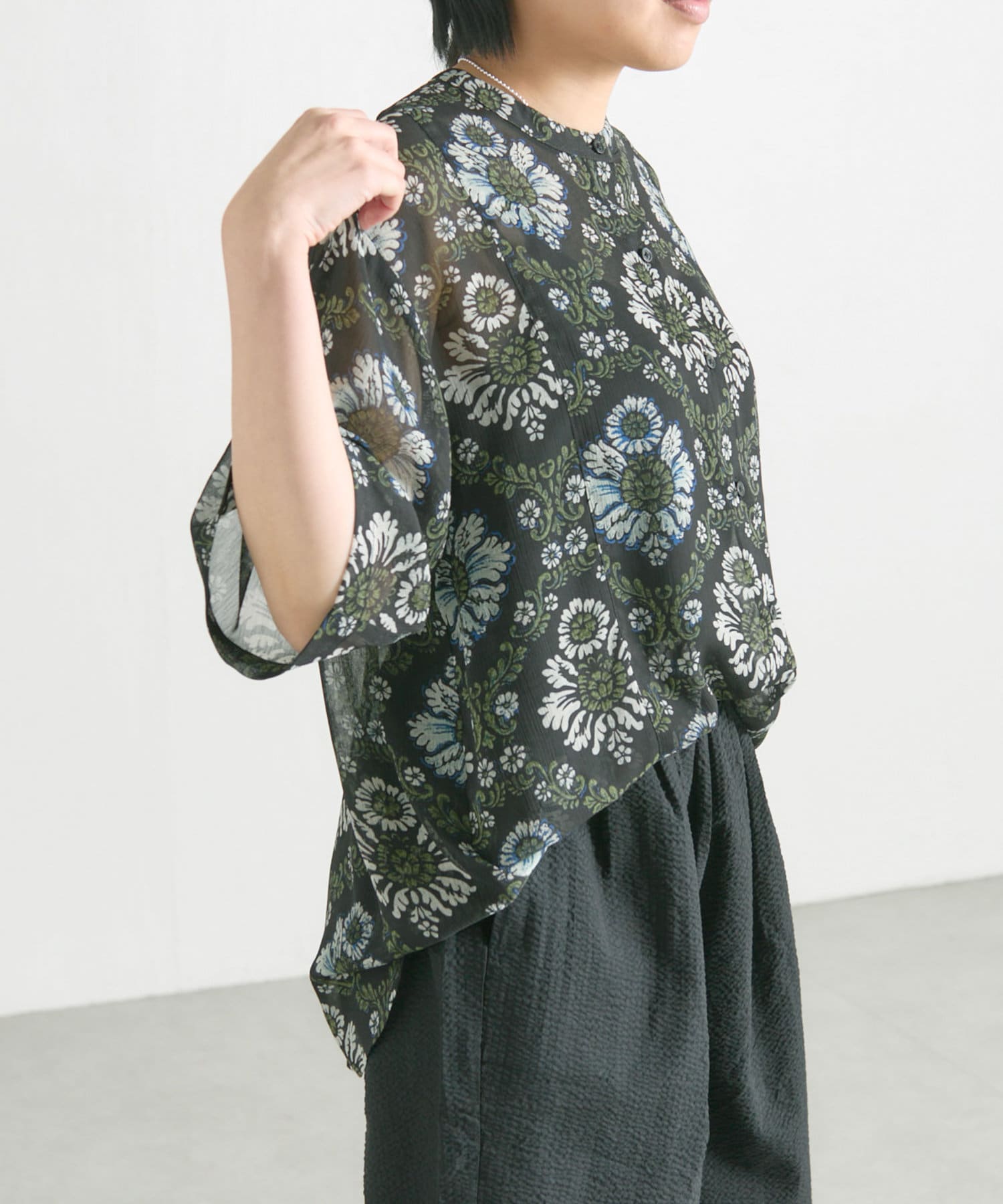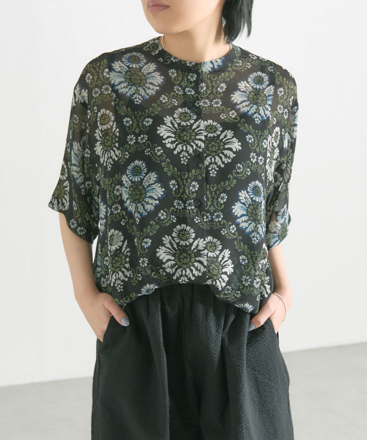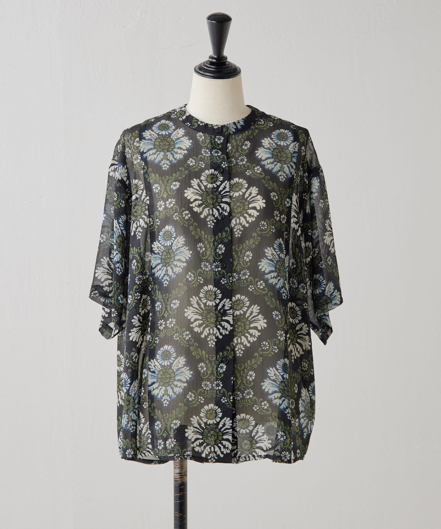 ・コーデの主役になる1枚で華やな総柄シアーシャツ