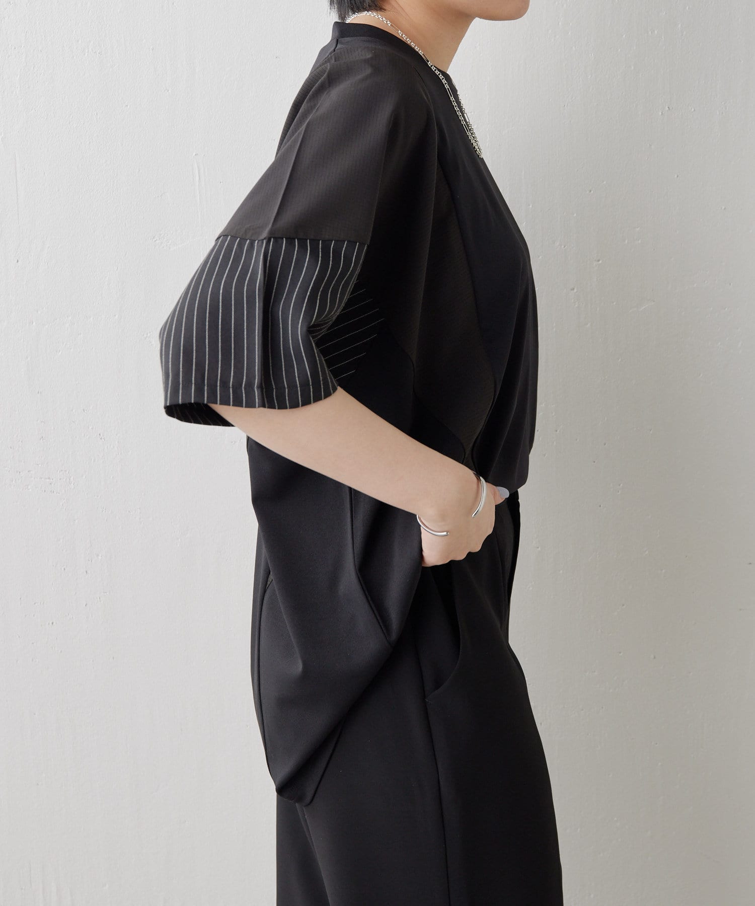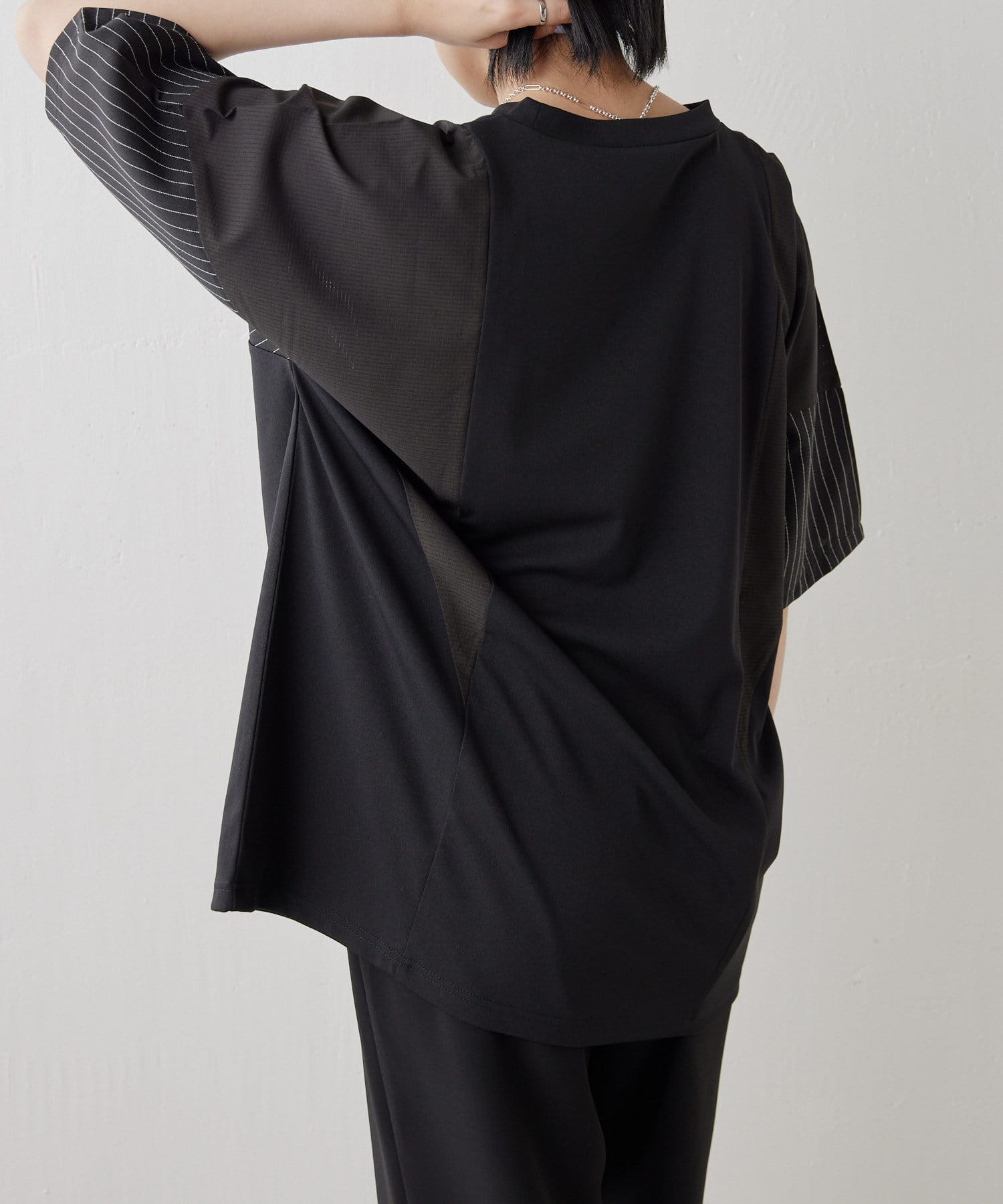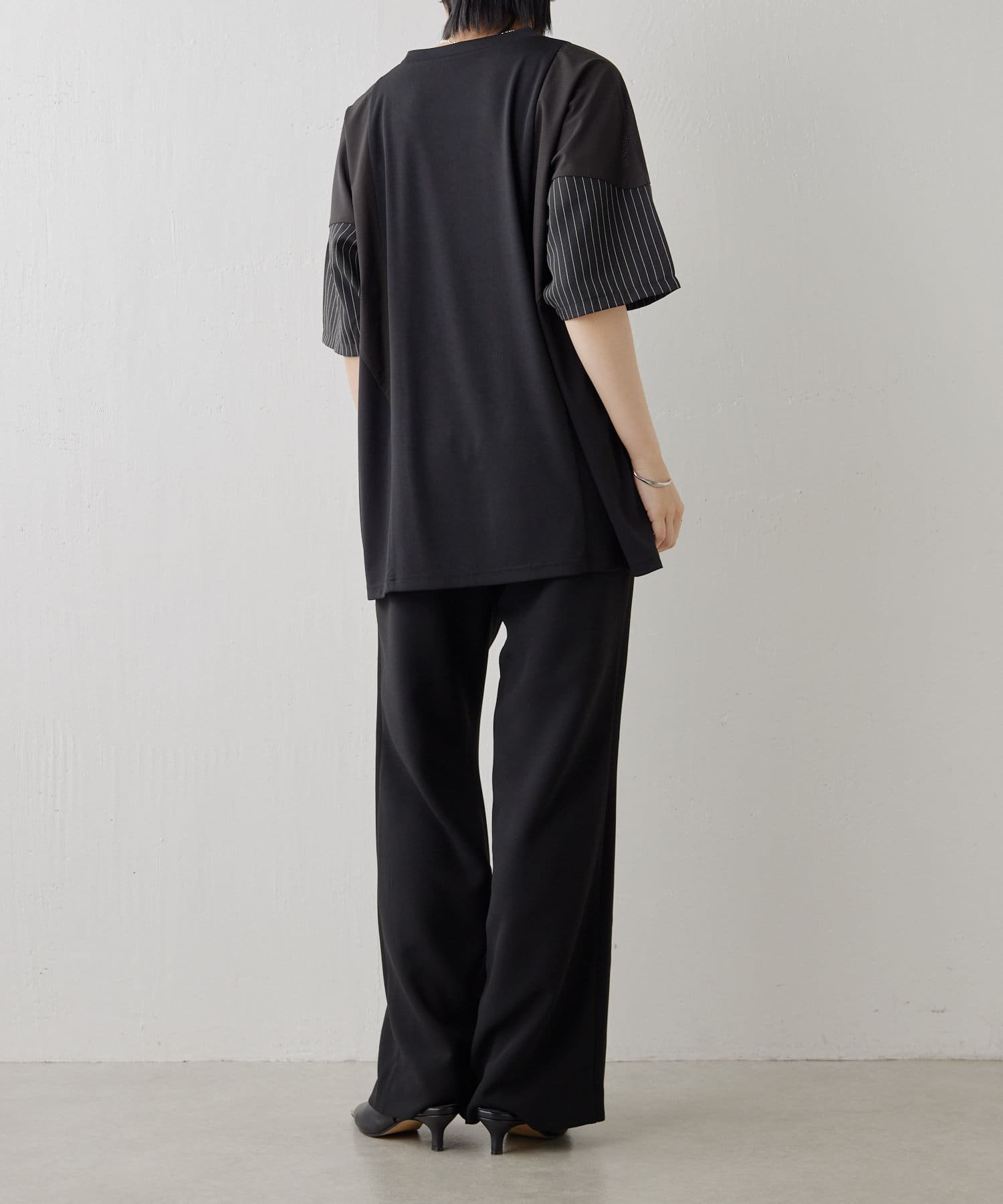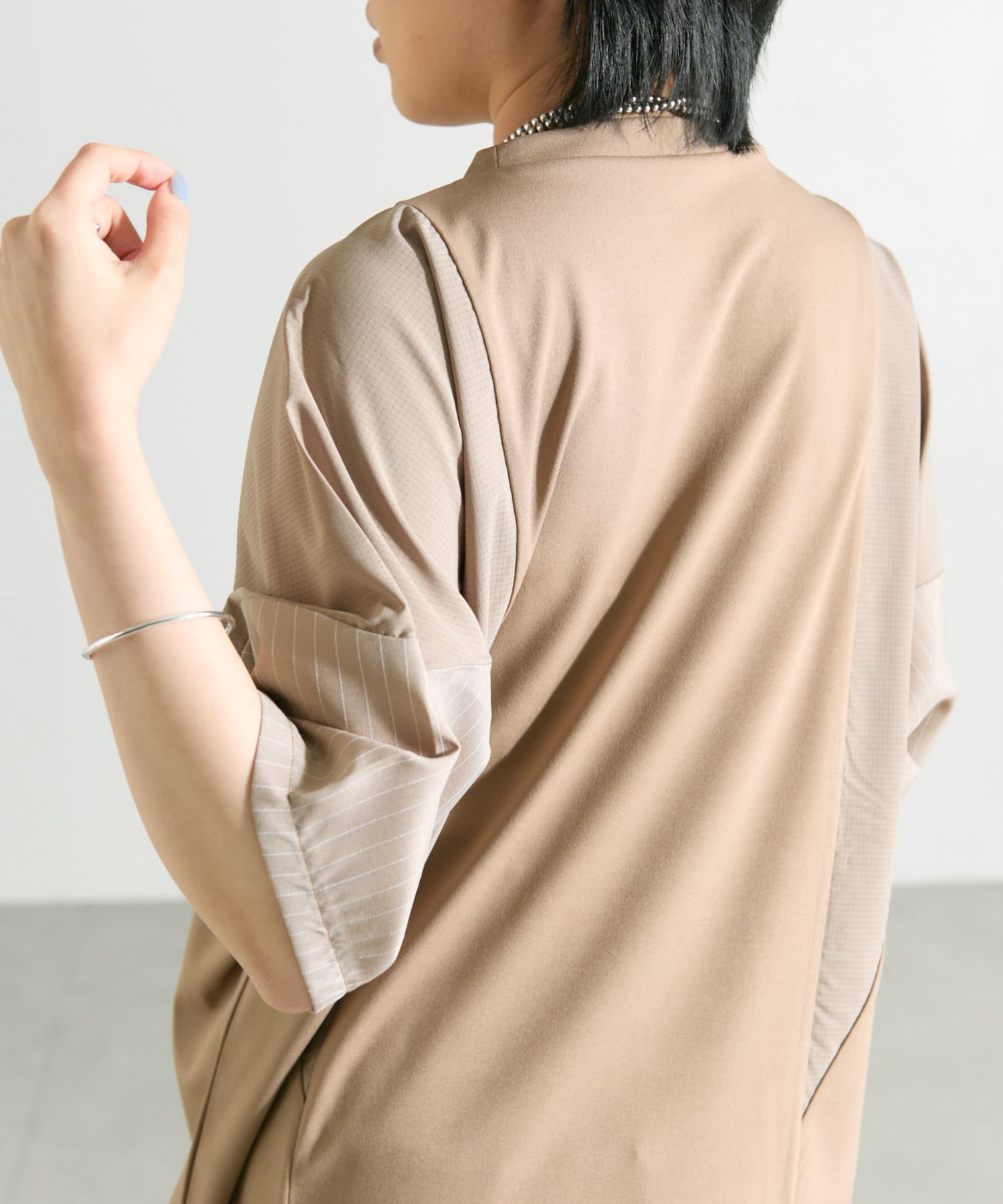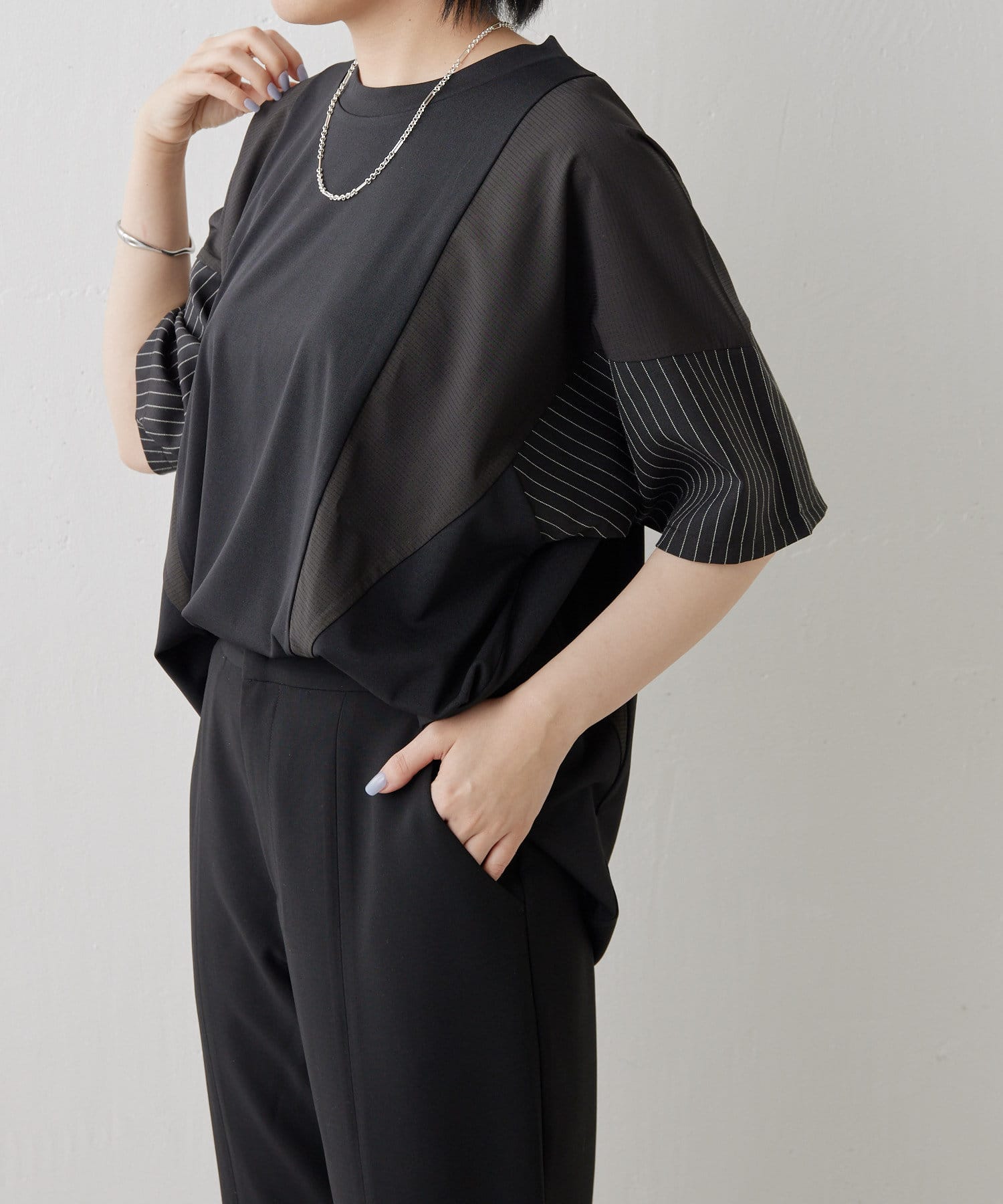 ear PAPILLONNER(イア パピヨネ) 《さらっと涼しい/シワになりにくい》ショルダー切替Tシャツ【SUM1 STYLE(スミ スタイル)】