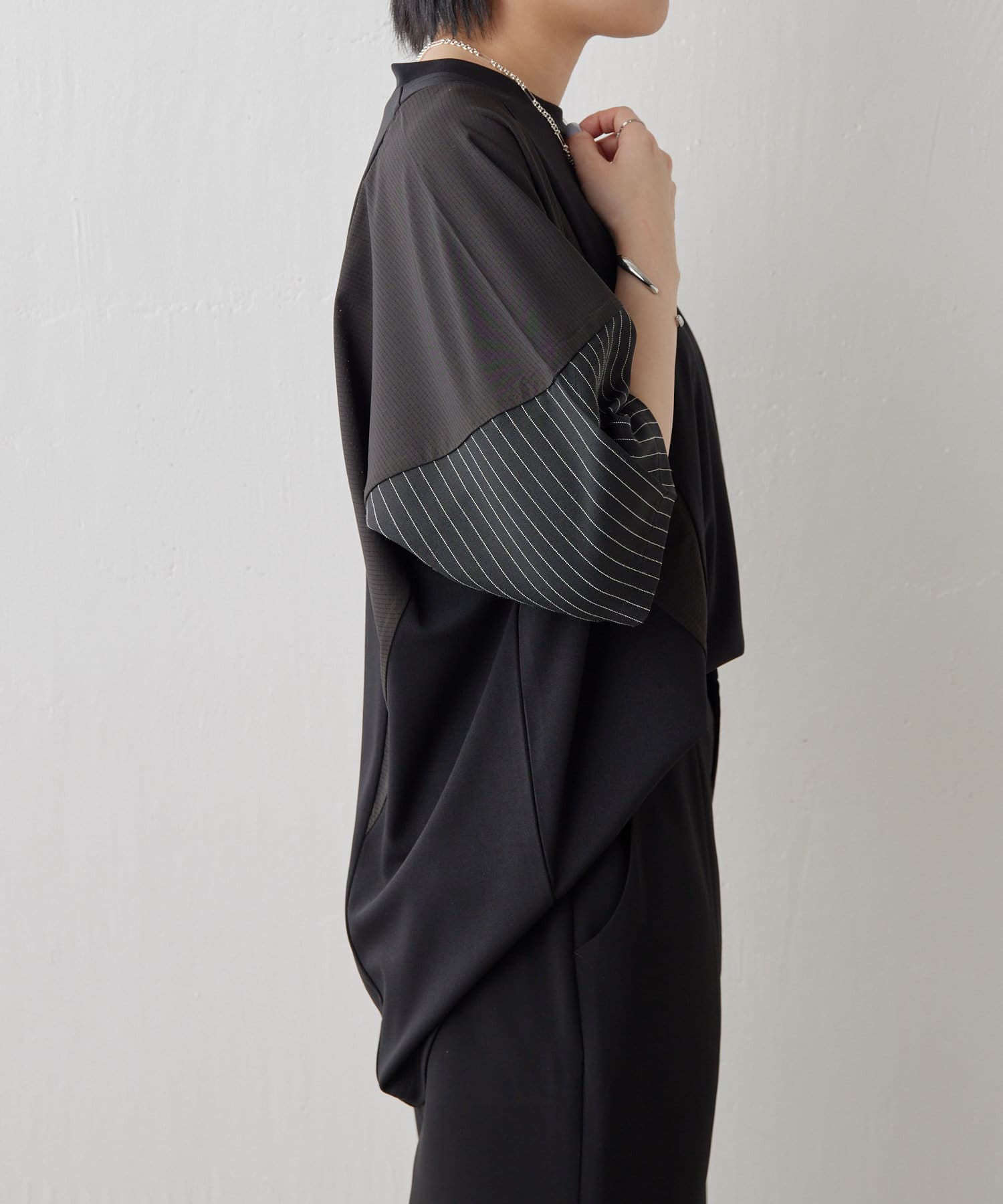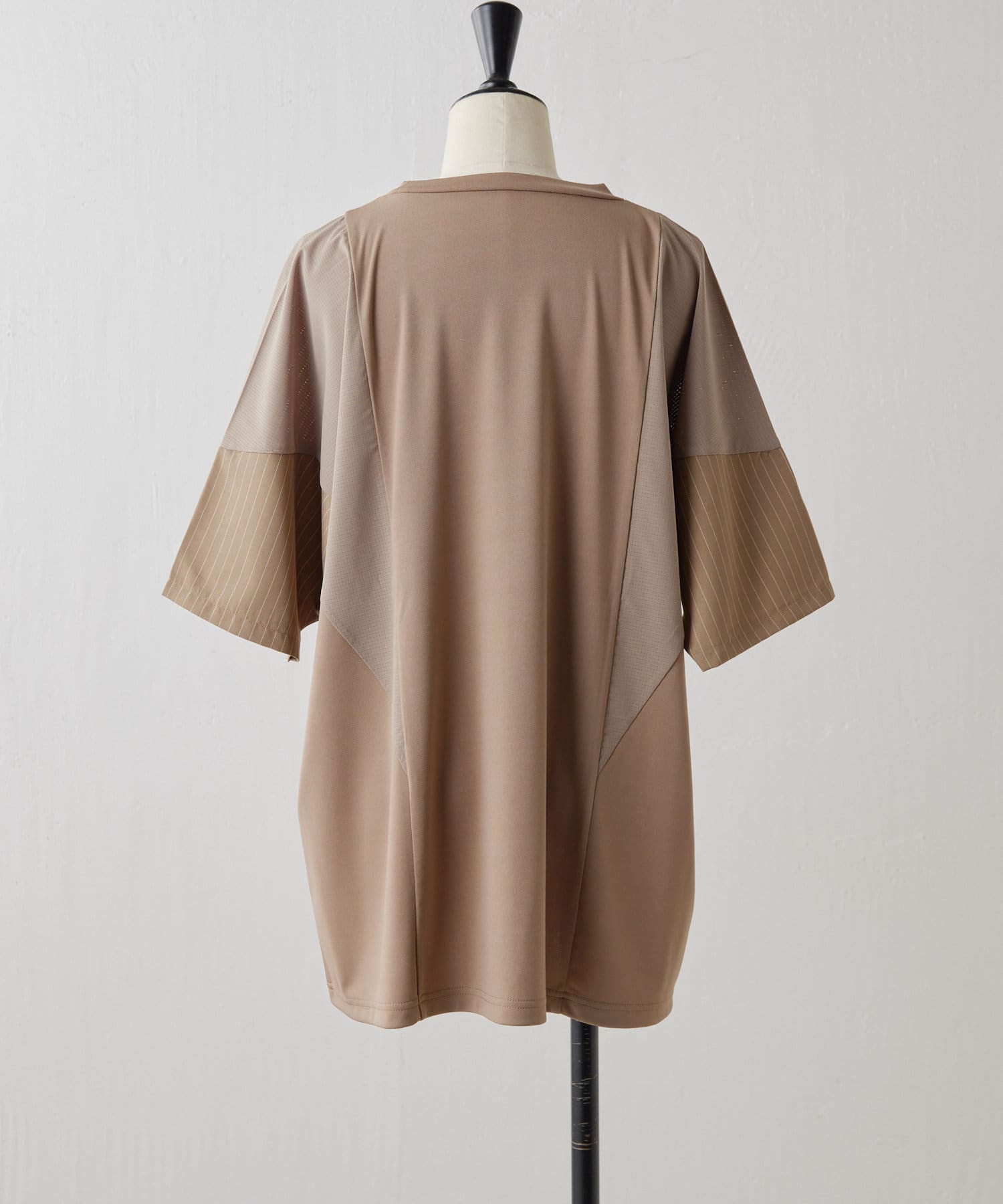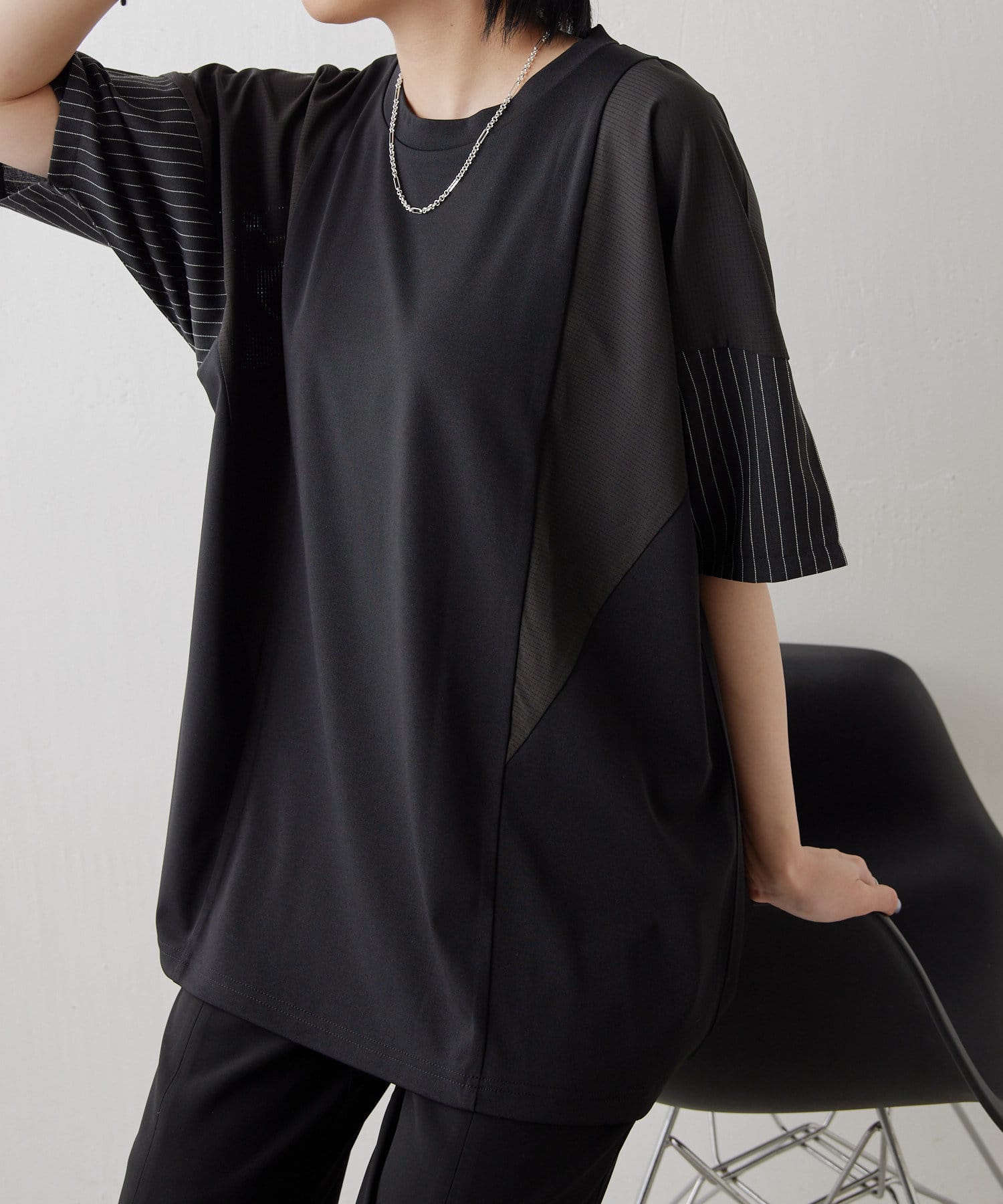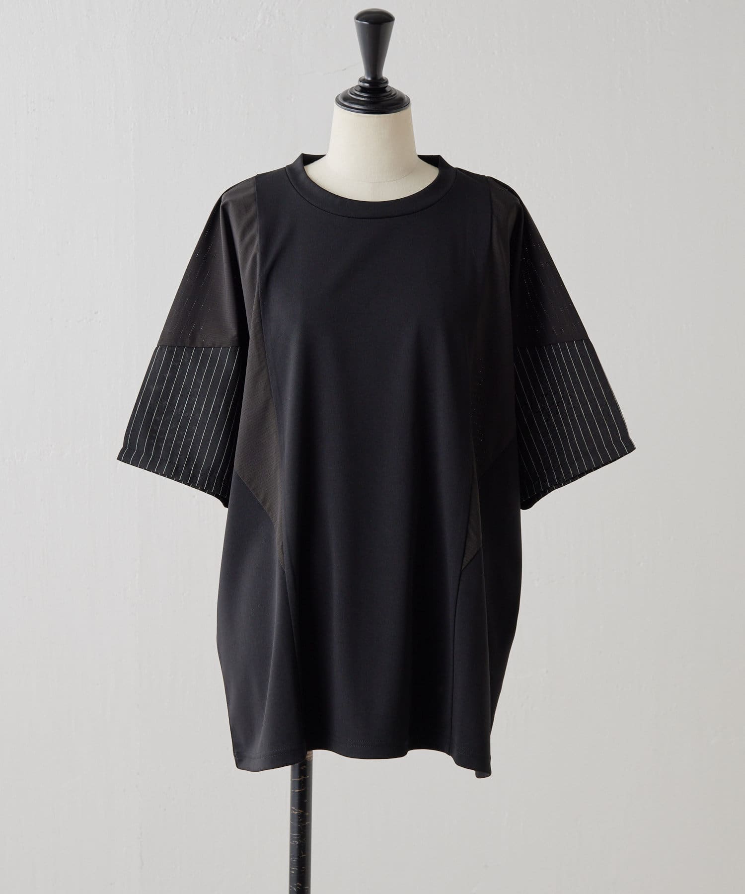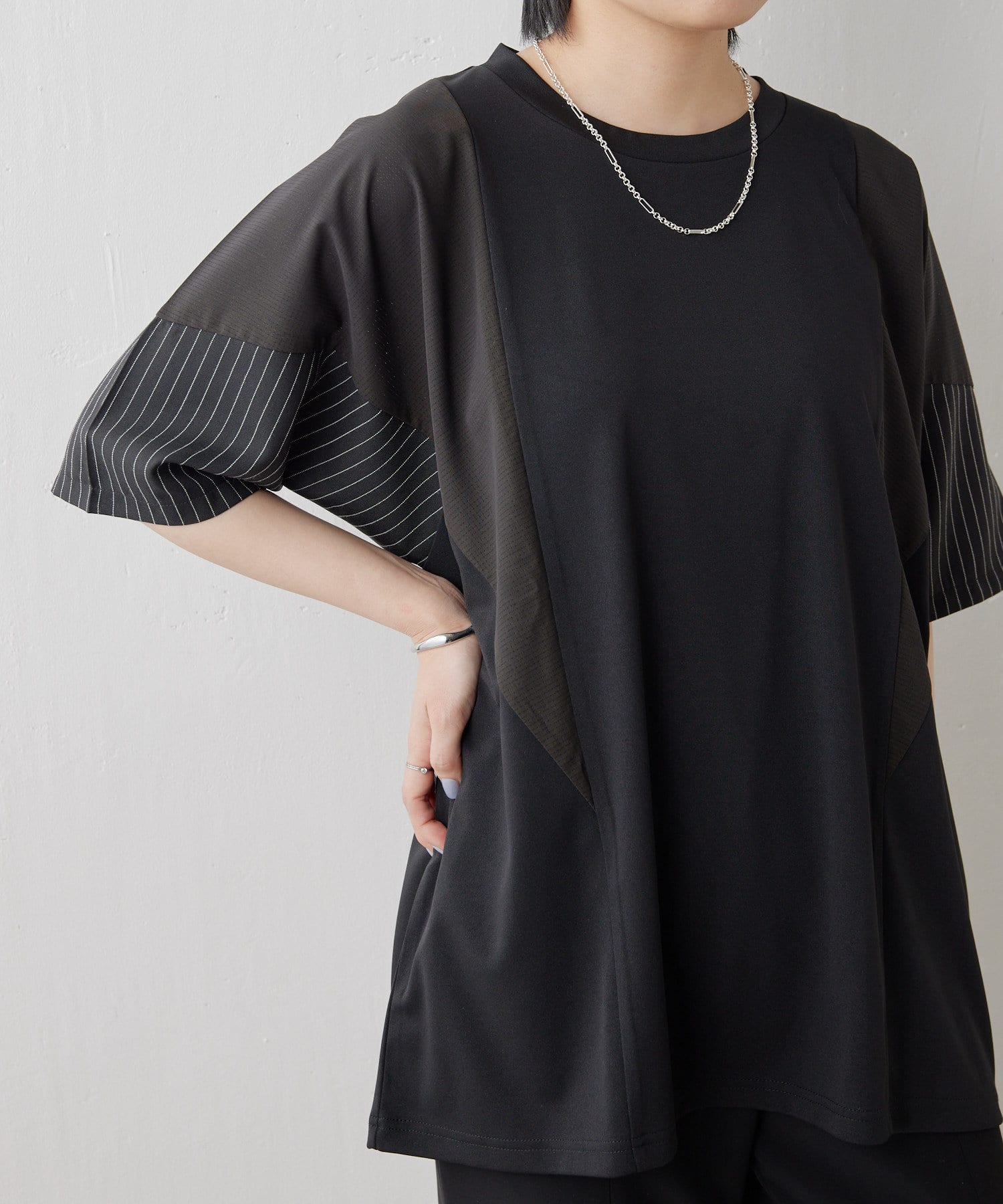 ear PAPILLONNER(イア パピヨネ) 《さらっと涼しい/シワになりにくい》ショルダー切替Tシャツ【SUM1 STYLE(スミ スタイル)】