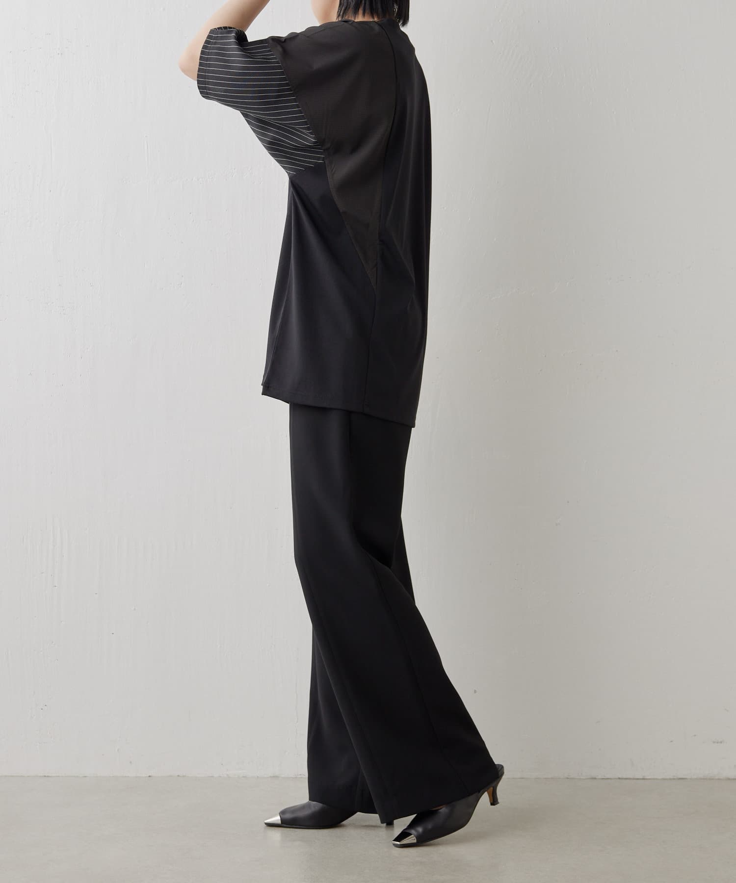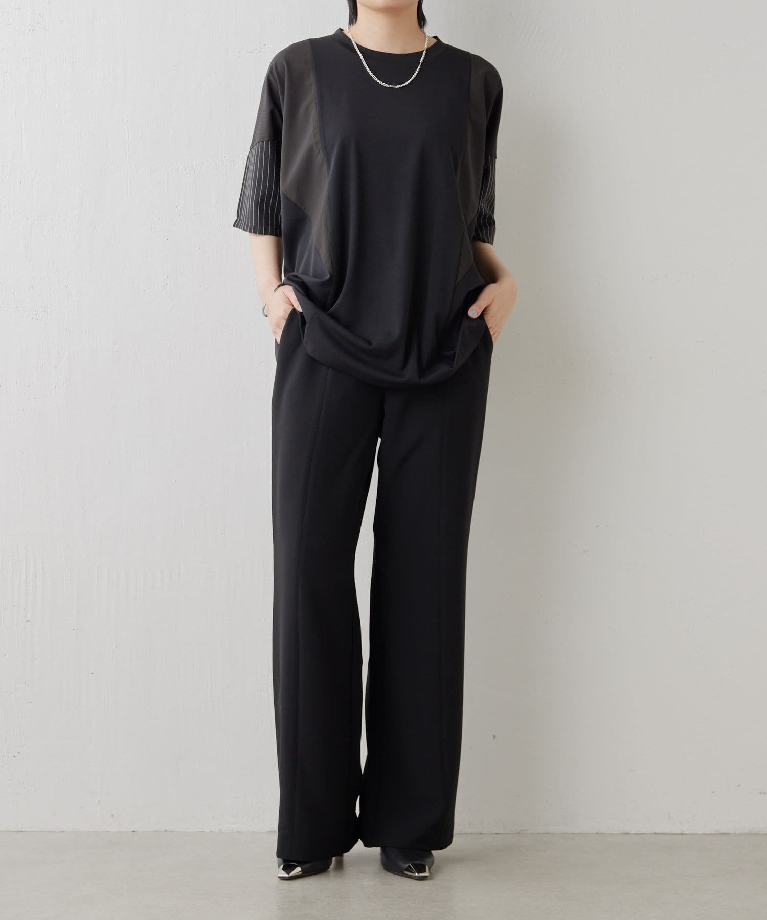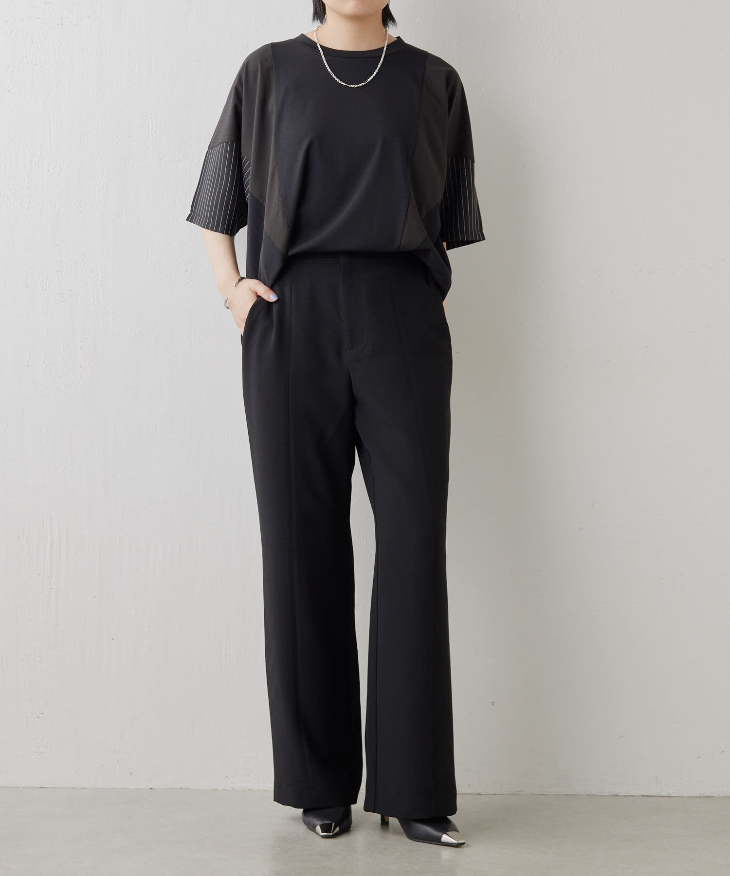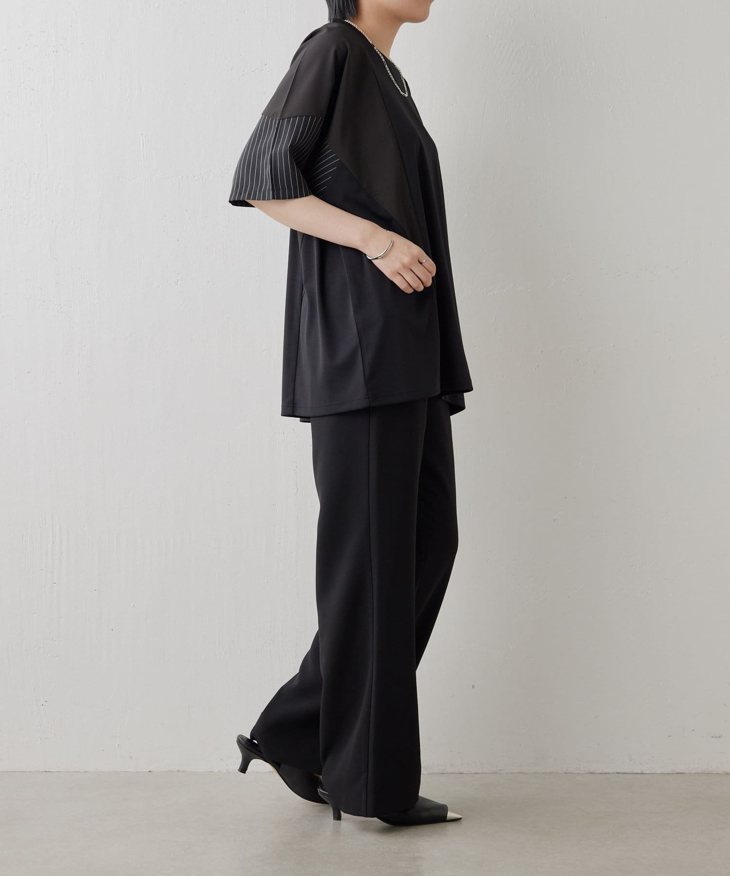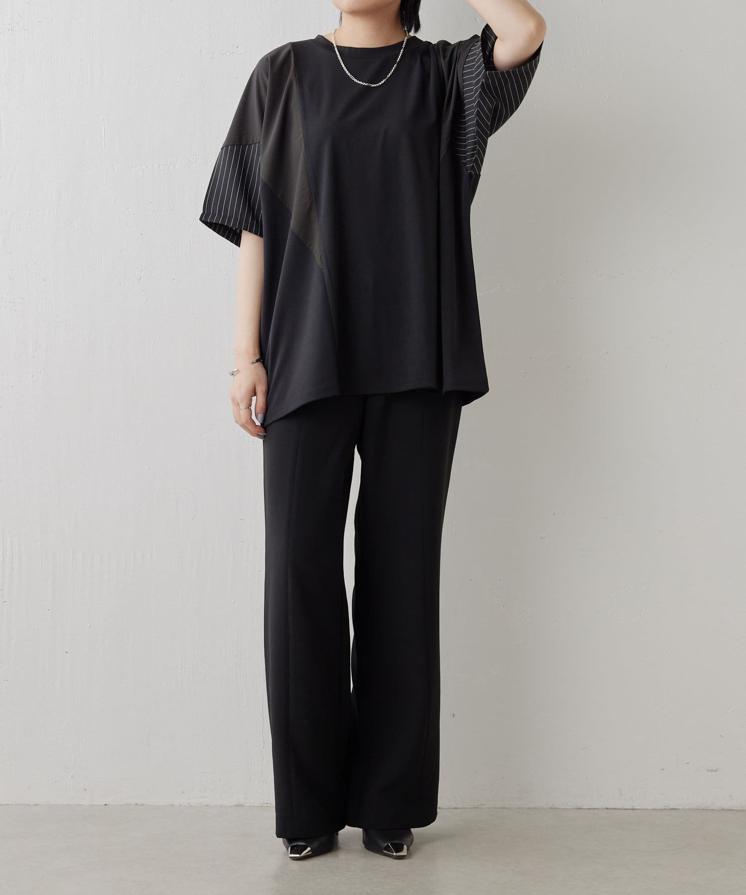 TOP > ear PAPILLONNER > レディース > トップス > Tシャツ/カットソー > 《さらっと涼しい/シワになりにくい》ショルダー切替Tシャツ【SUM1 STYLE(スミ スタイル)】