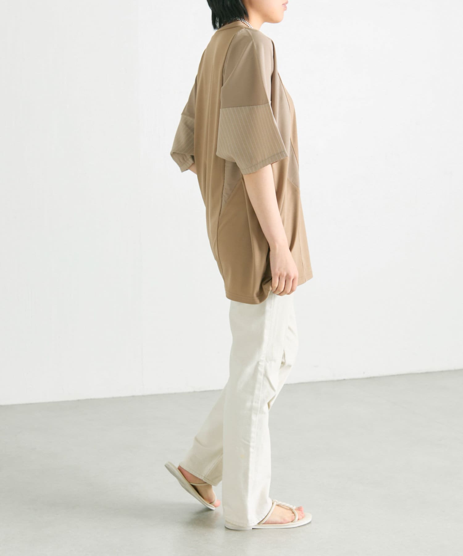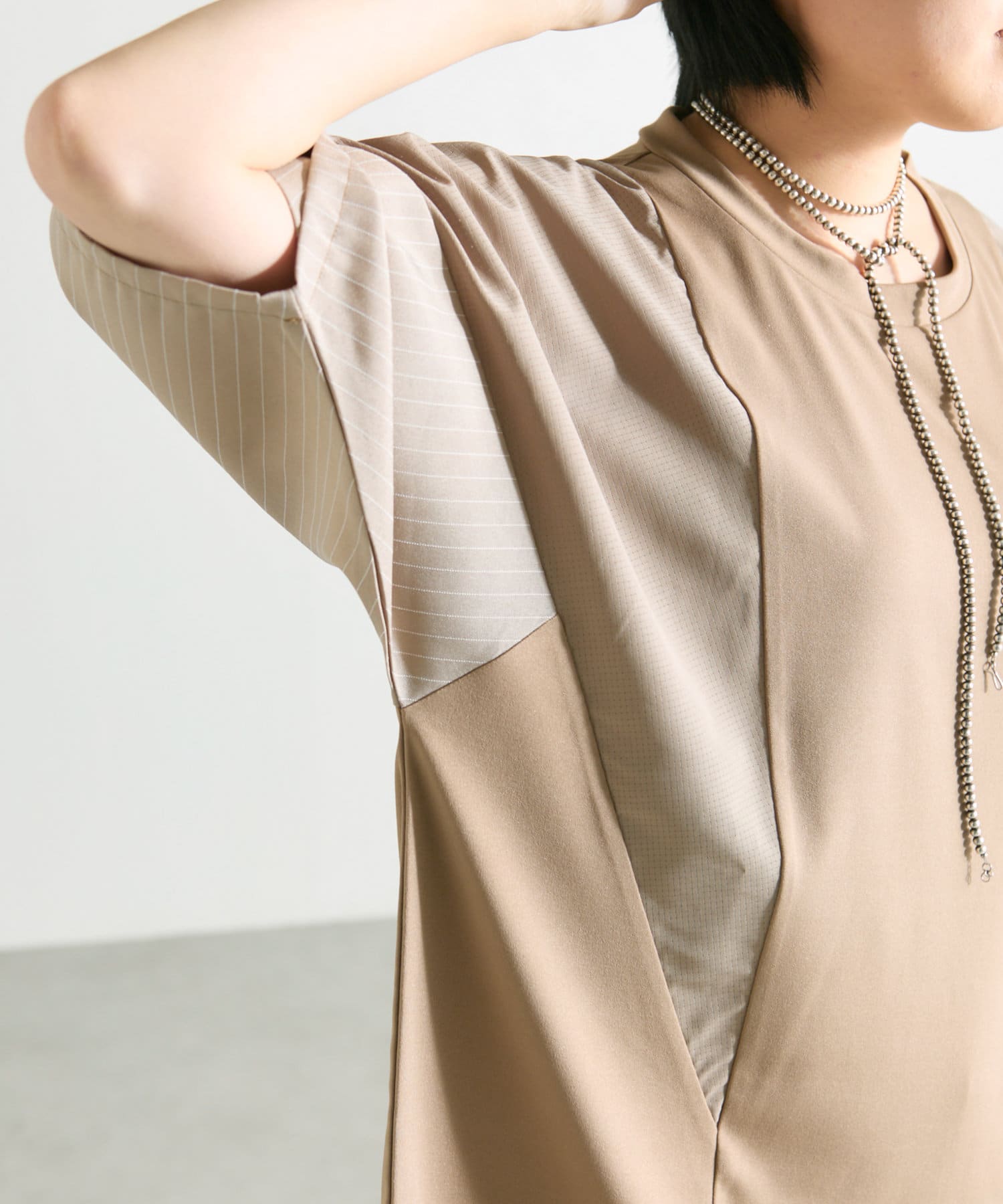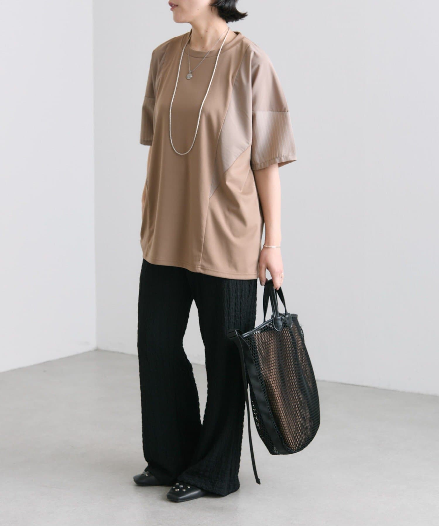 • ear PAPILLONNER(イア パピヨネ) 《さらっと涼しい/シワになりにくい》ショルダー切替Tシャツ【SUM1 STYLE(スミ スタイル)】