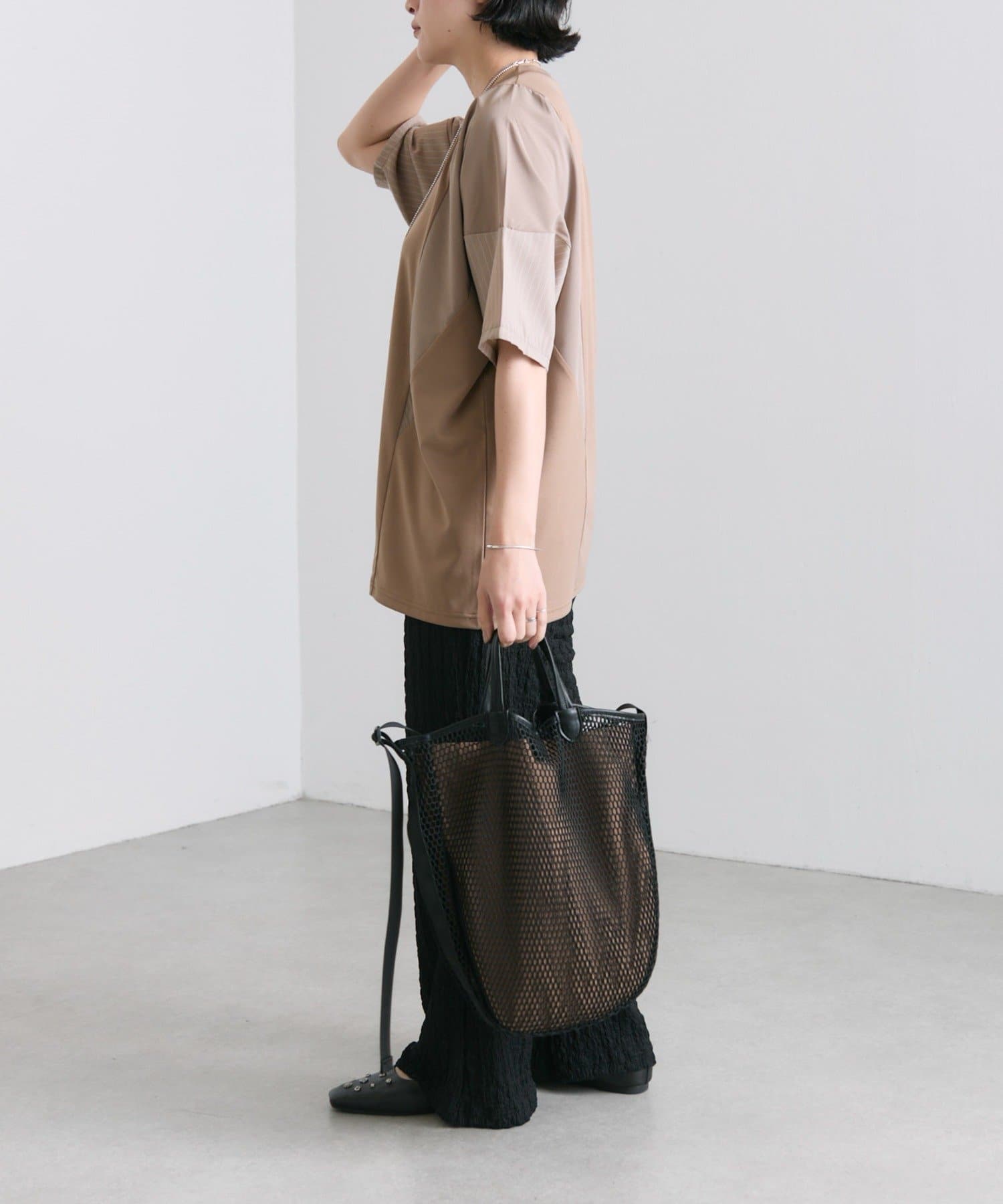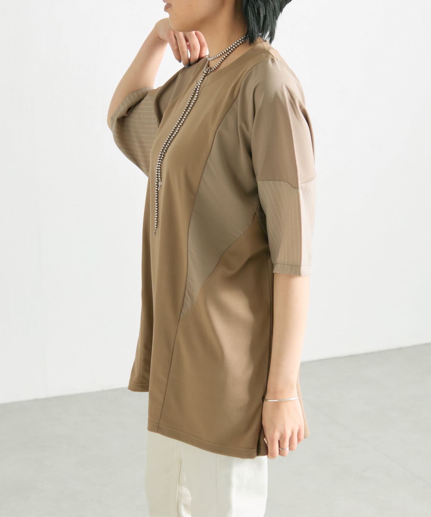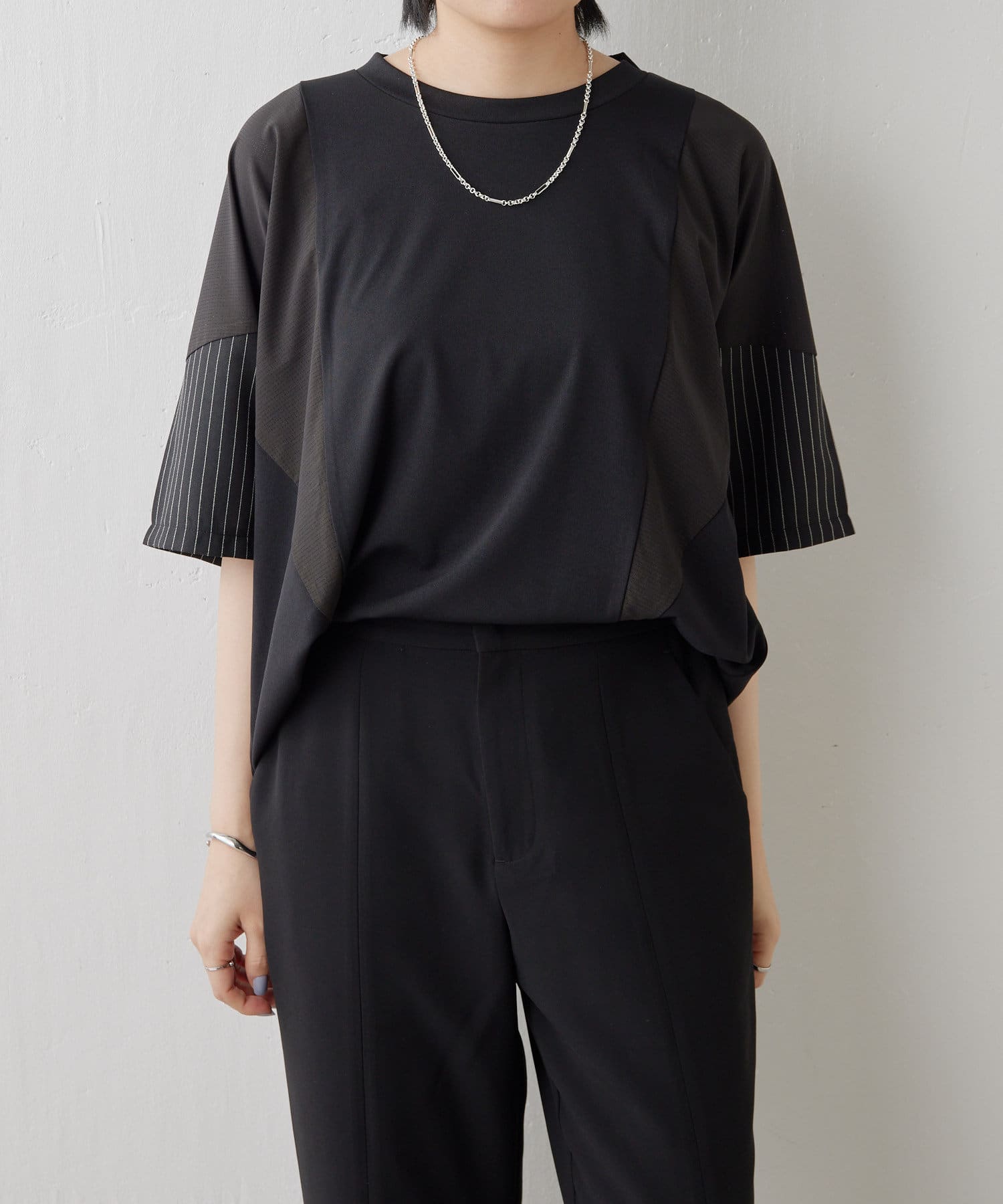 • ear PAPILLONNER(イア パピヨネ) 《さらっと涼しい/シワになりにくい》ショルダー切替Tシャツ【SUM1 STYLE(スミ スタイル)】