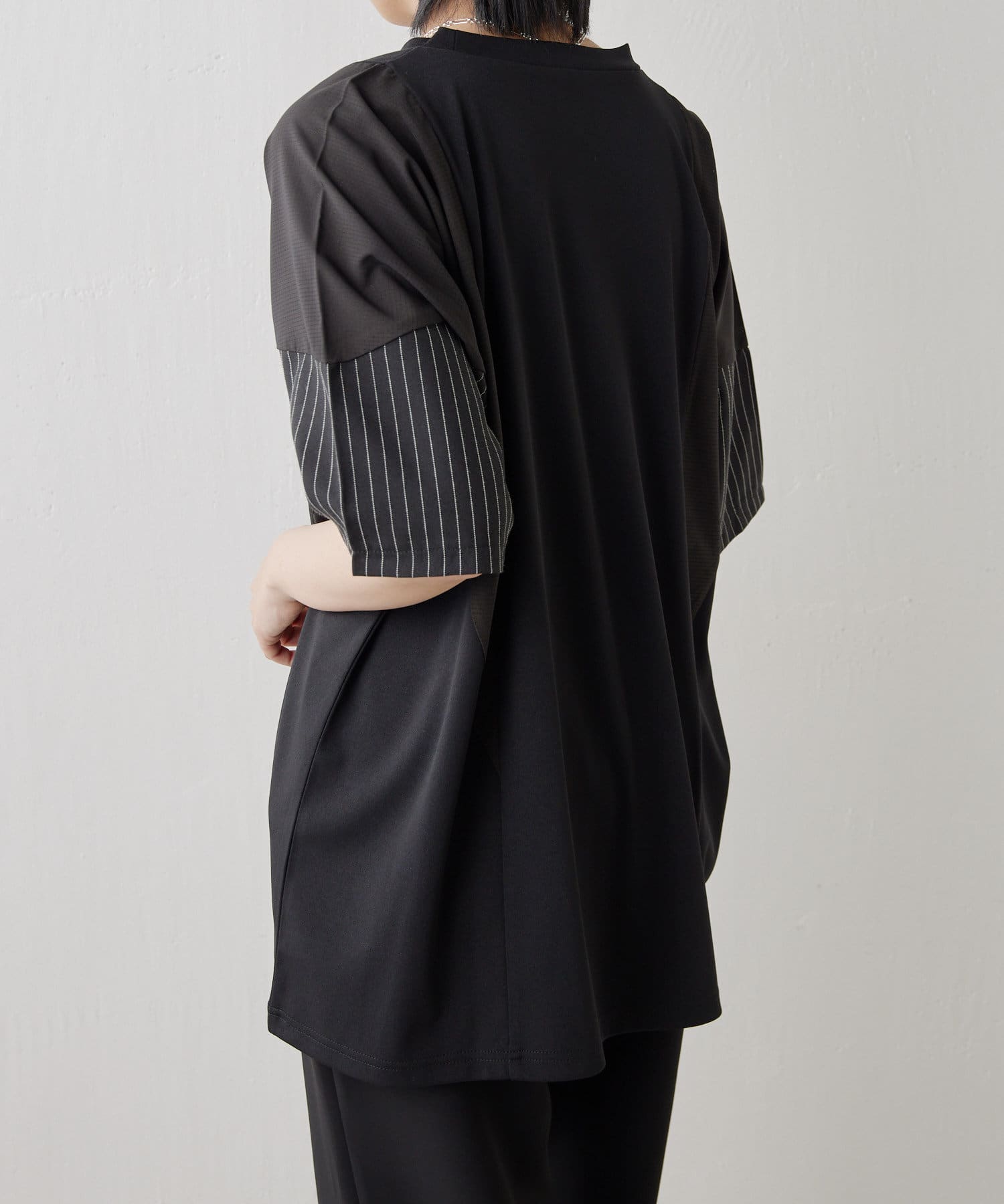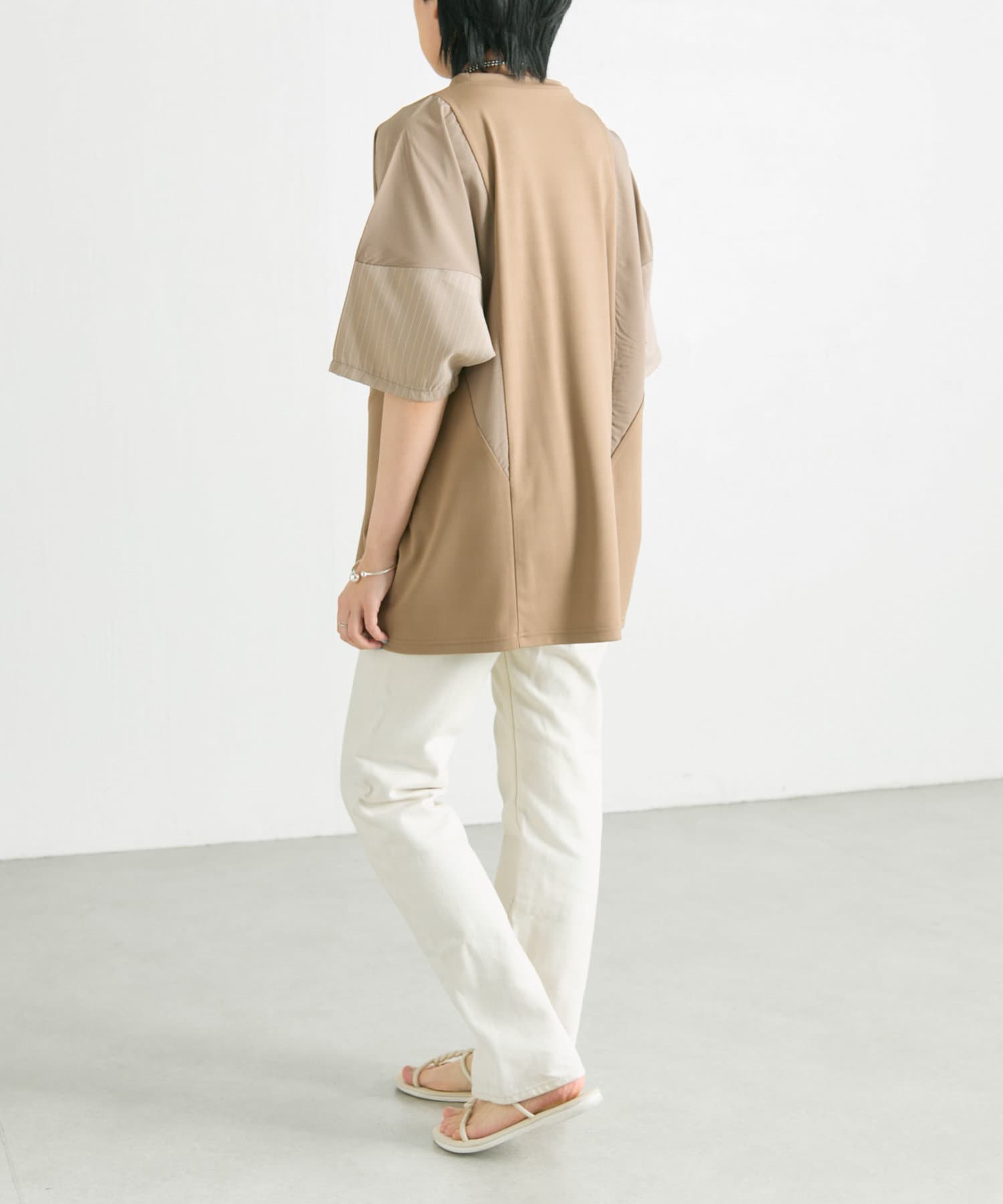 質感がよく、袖の切替がおしゃれなので、Tシャツならではの着こなしだけでなく、様々可能。