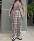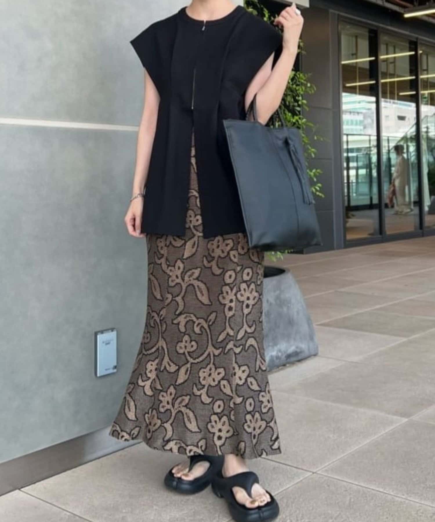 シンプルなボトムと合わせてノースリーブの上から着用するのも良いですし