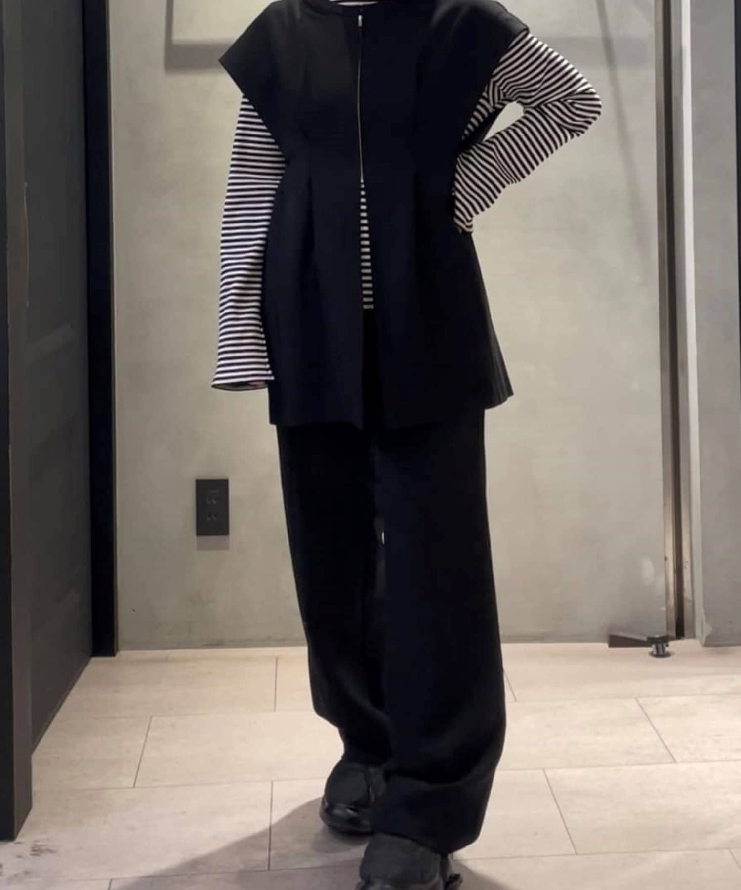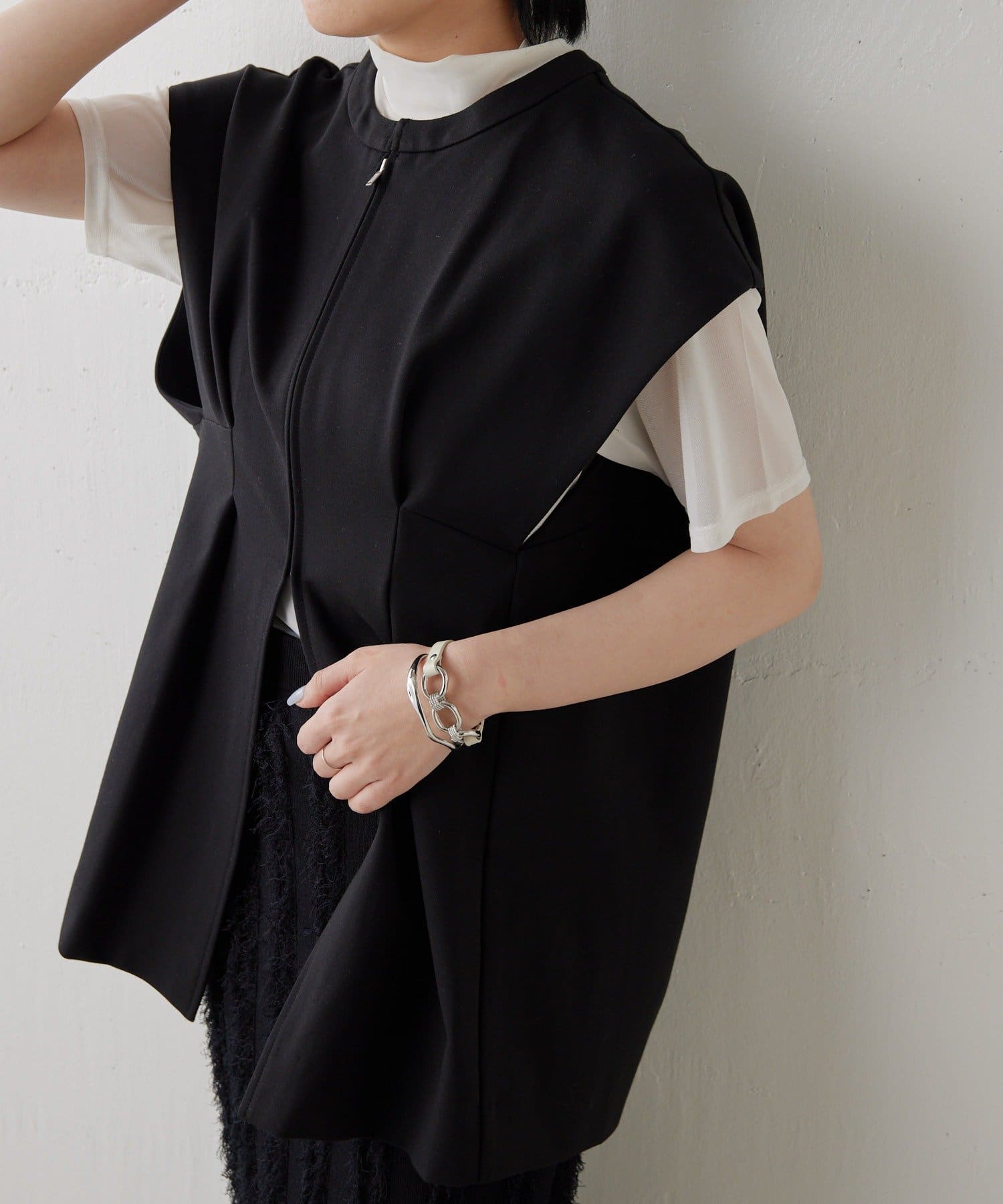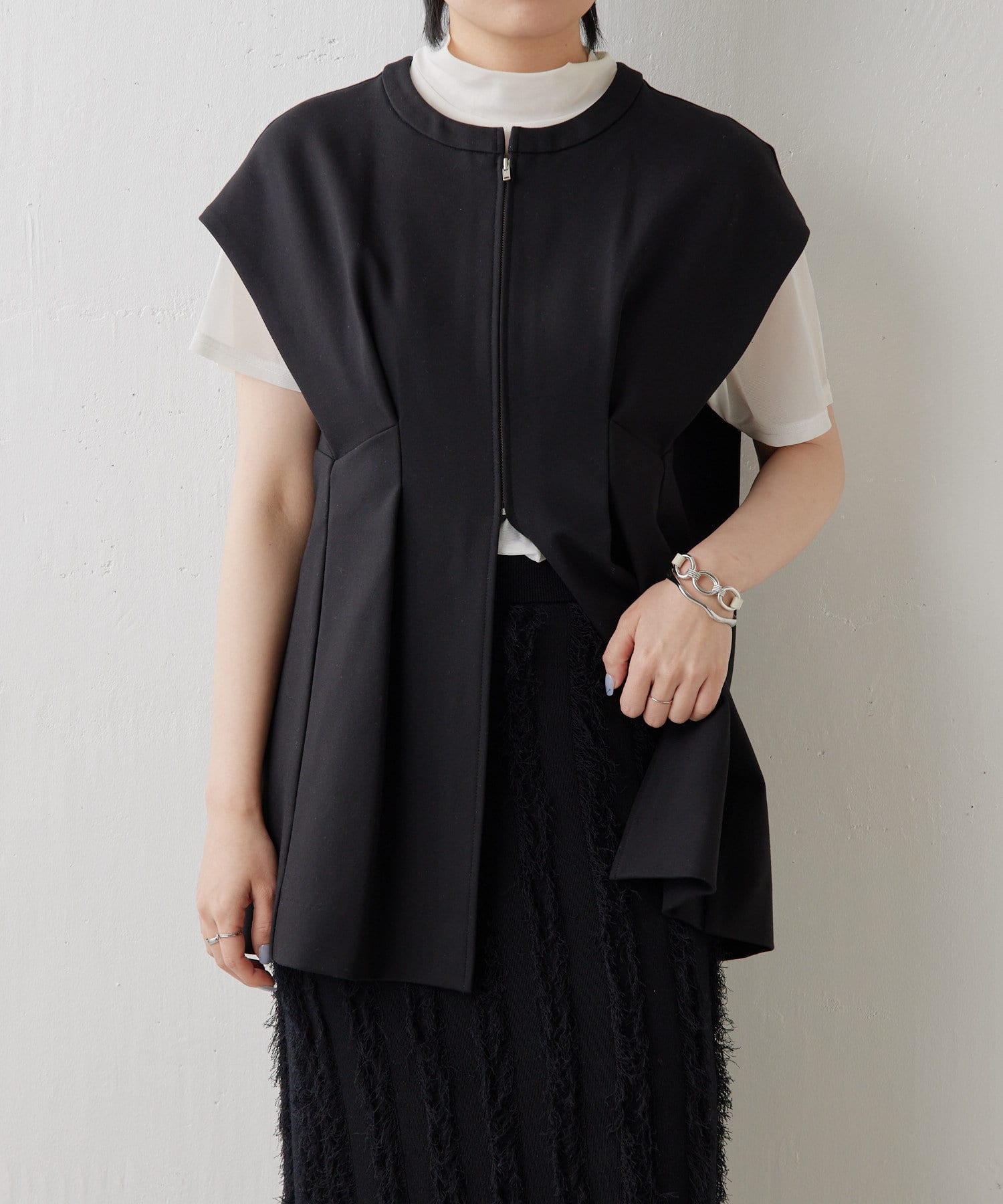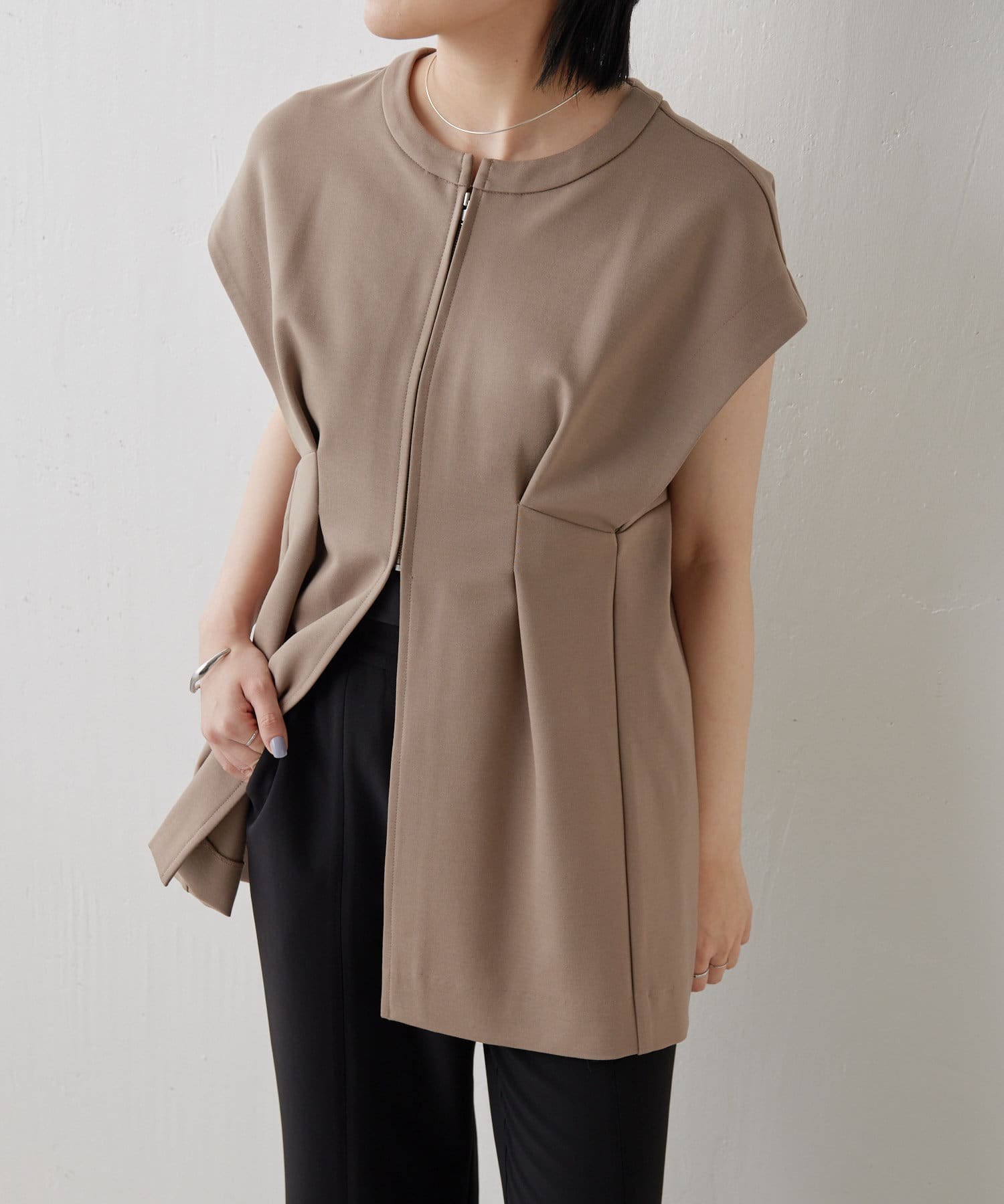 《スタイルアップ効果/ストレッチ性あり》タックジップベスト【SUM1 STYLE(スミ スタイル)】