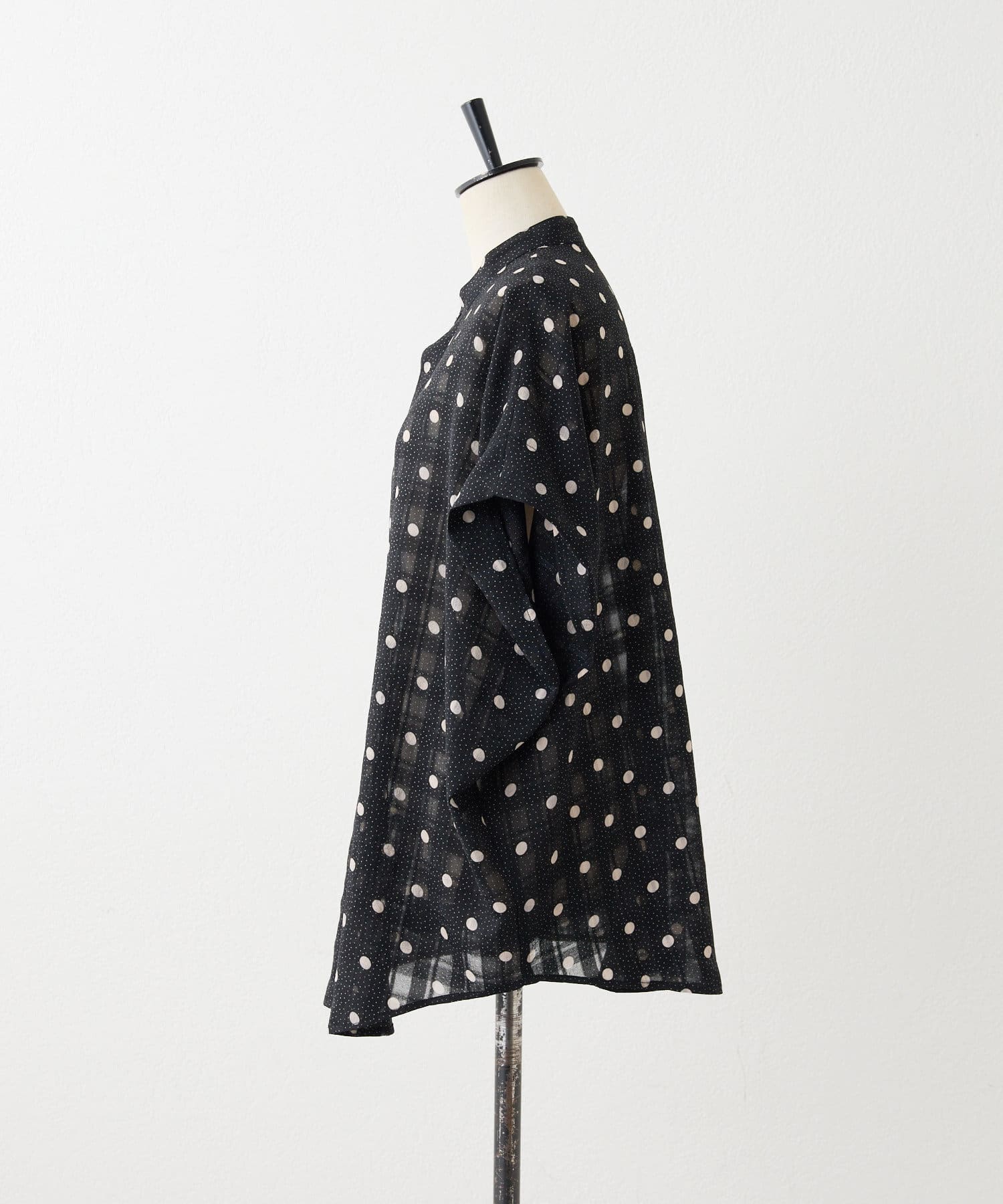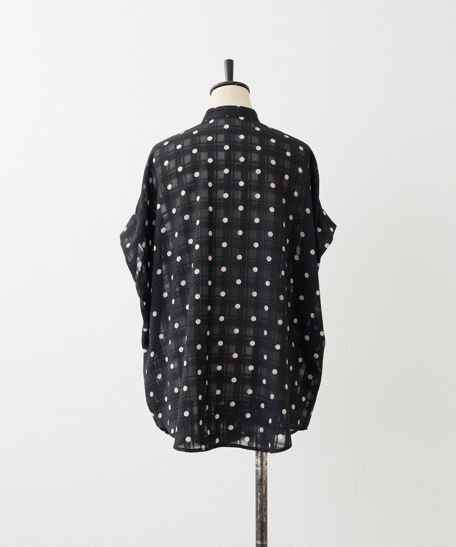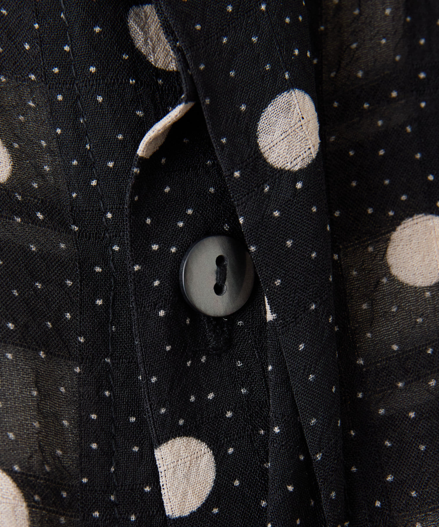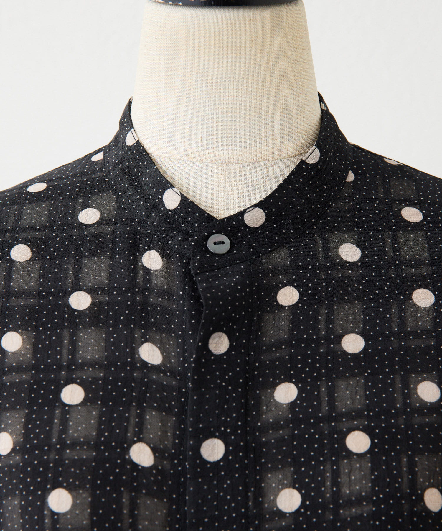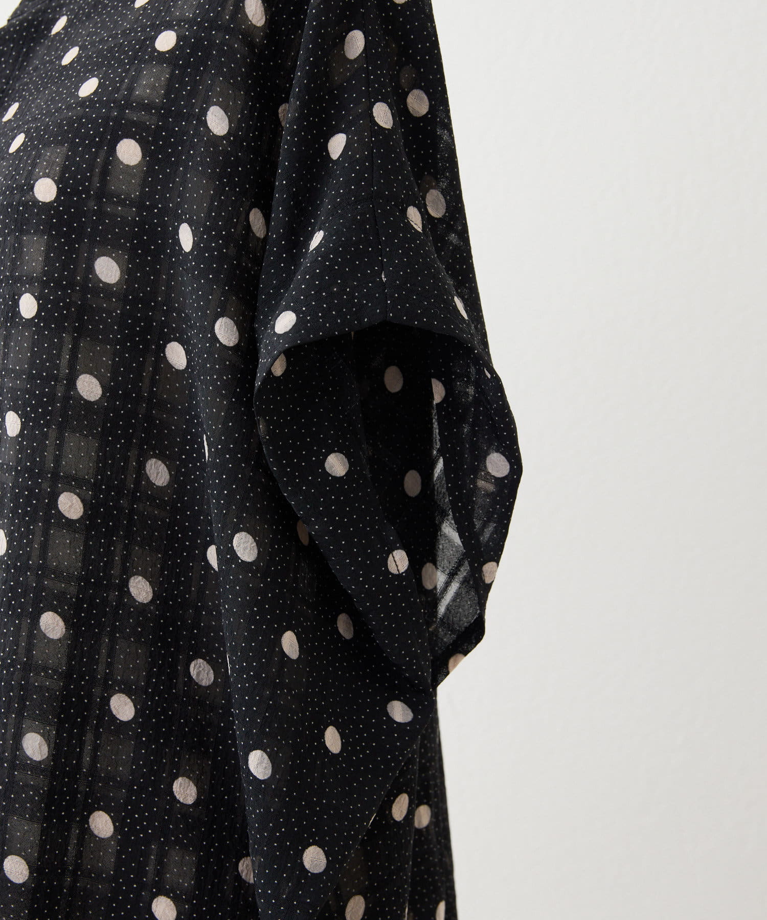 透け感のあるチェック模様の生地にドット柄が入ったデザイン。