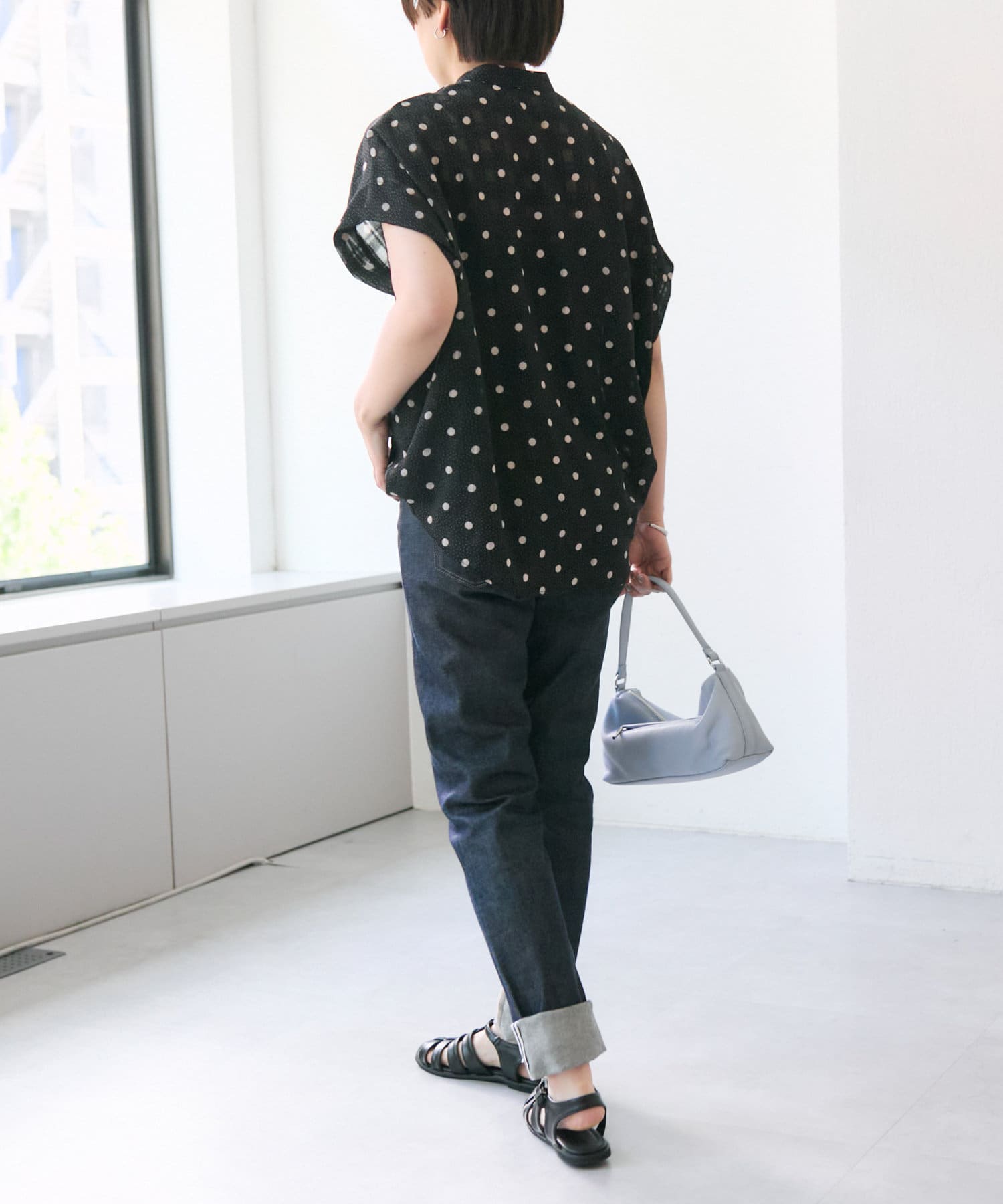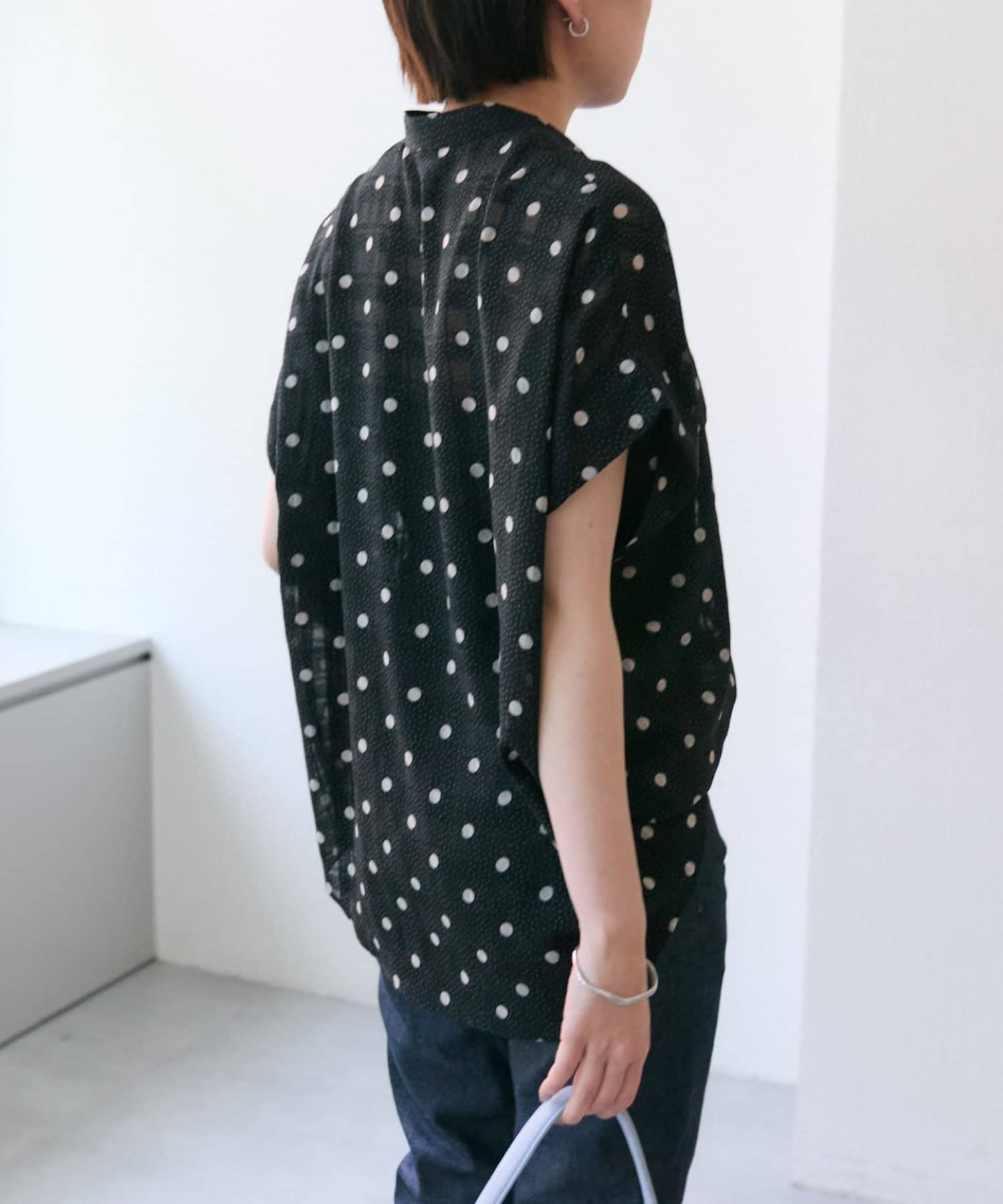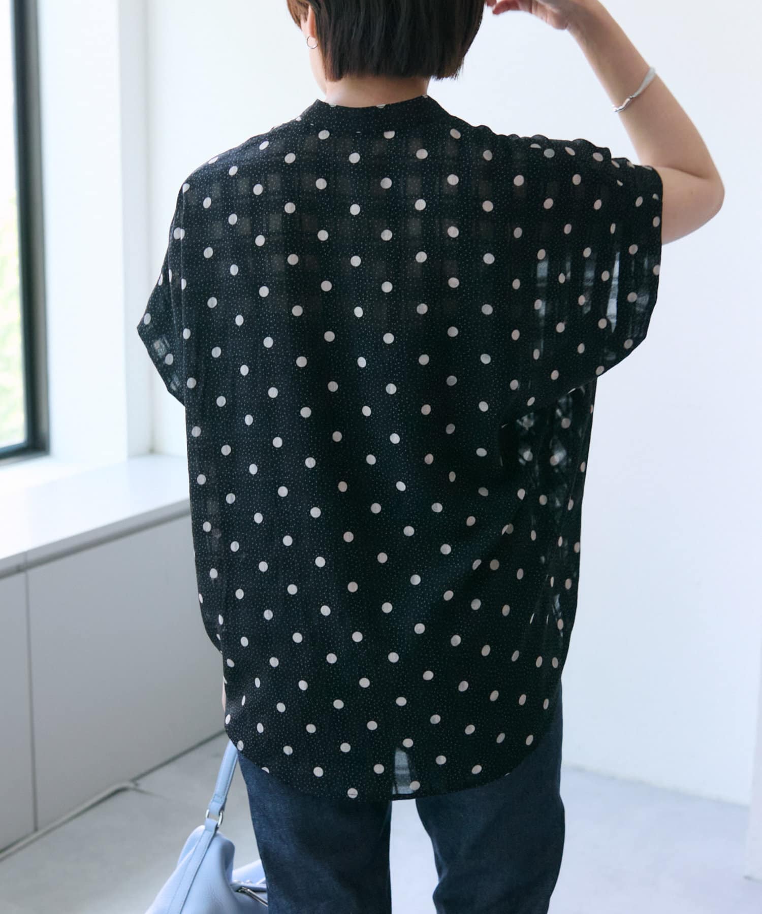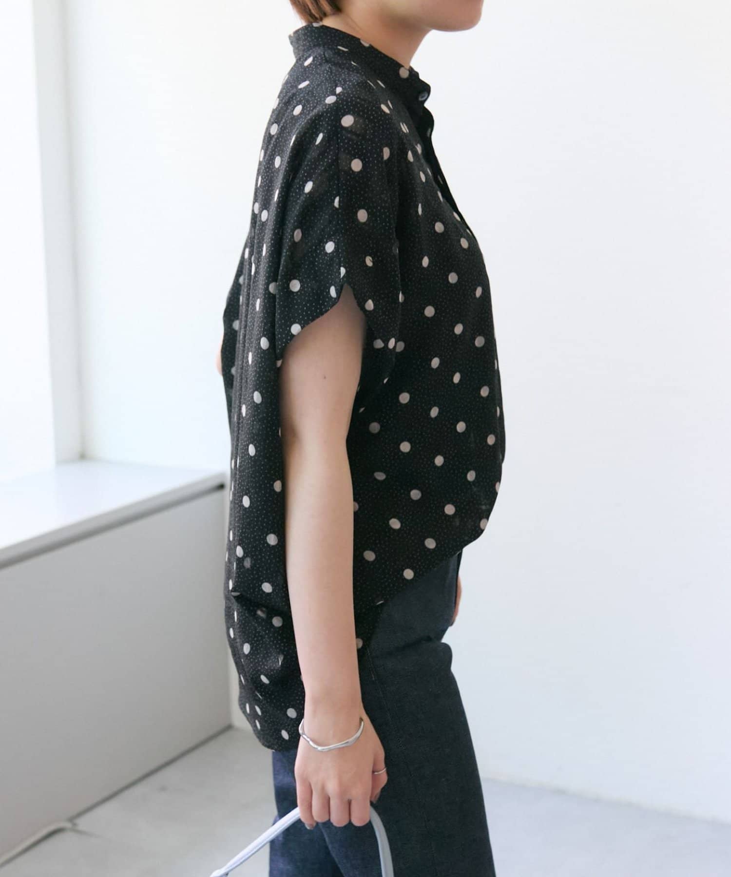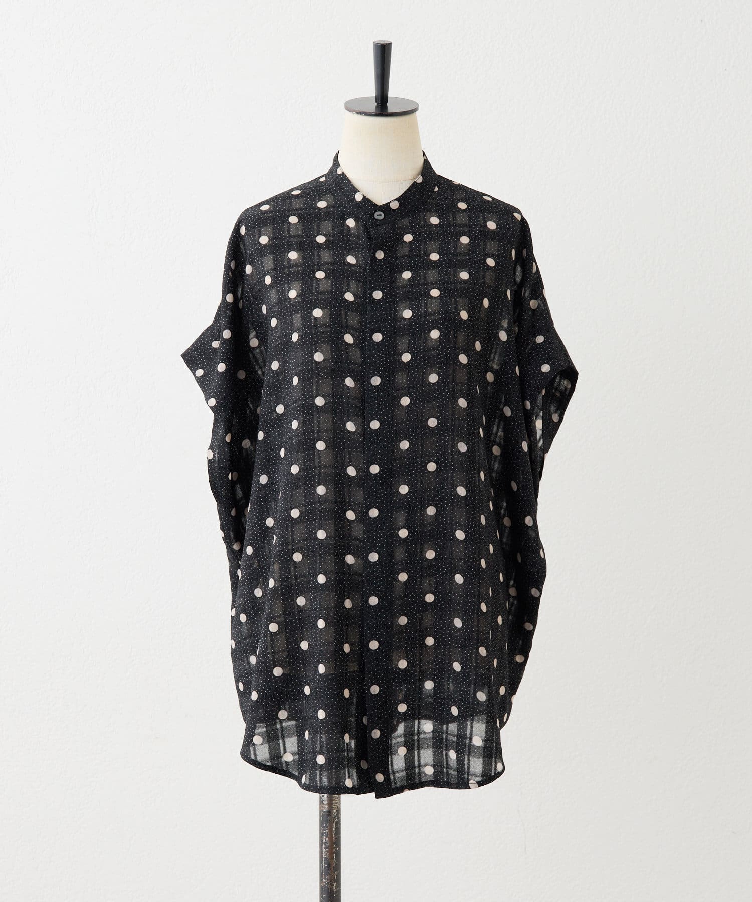 透け感のあるチェック模様の生地にドット柄が入ったデザイン。