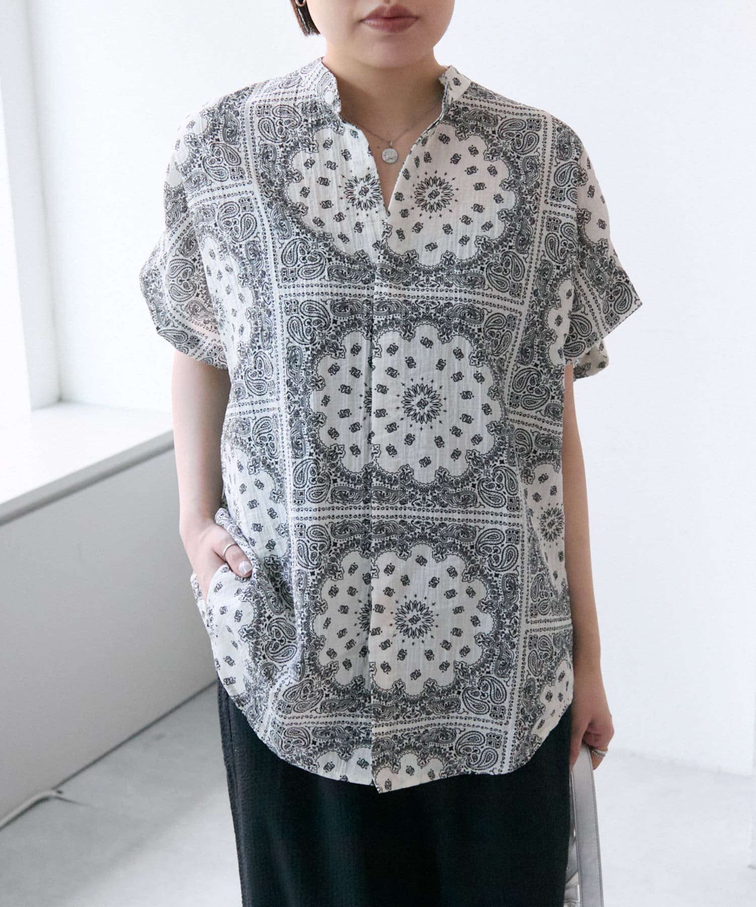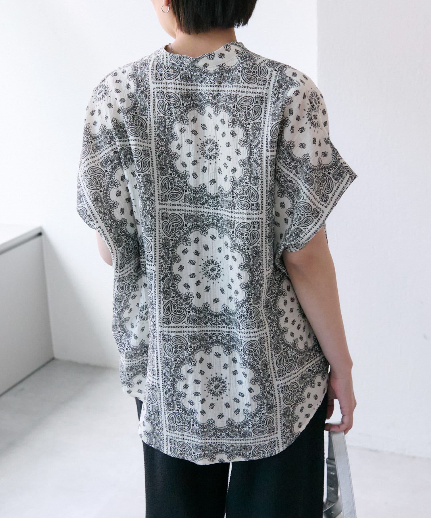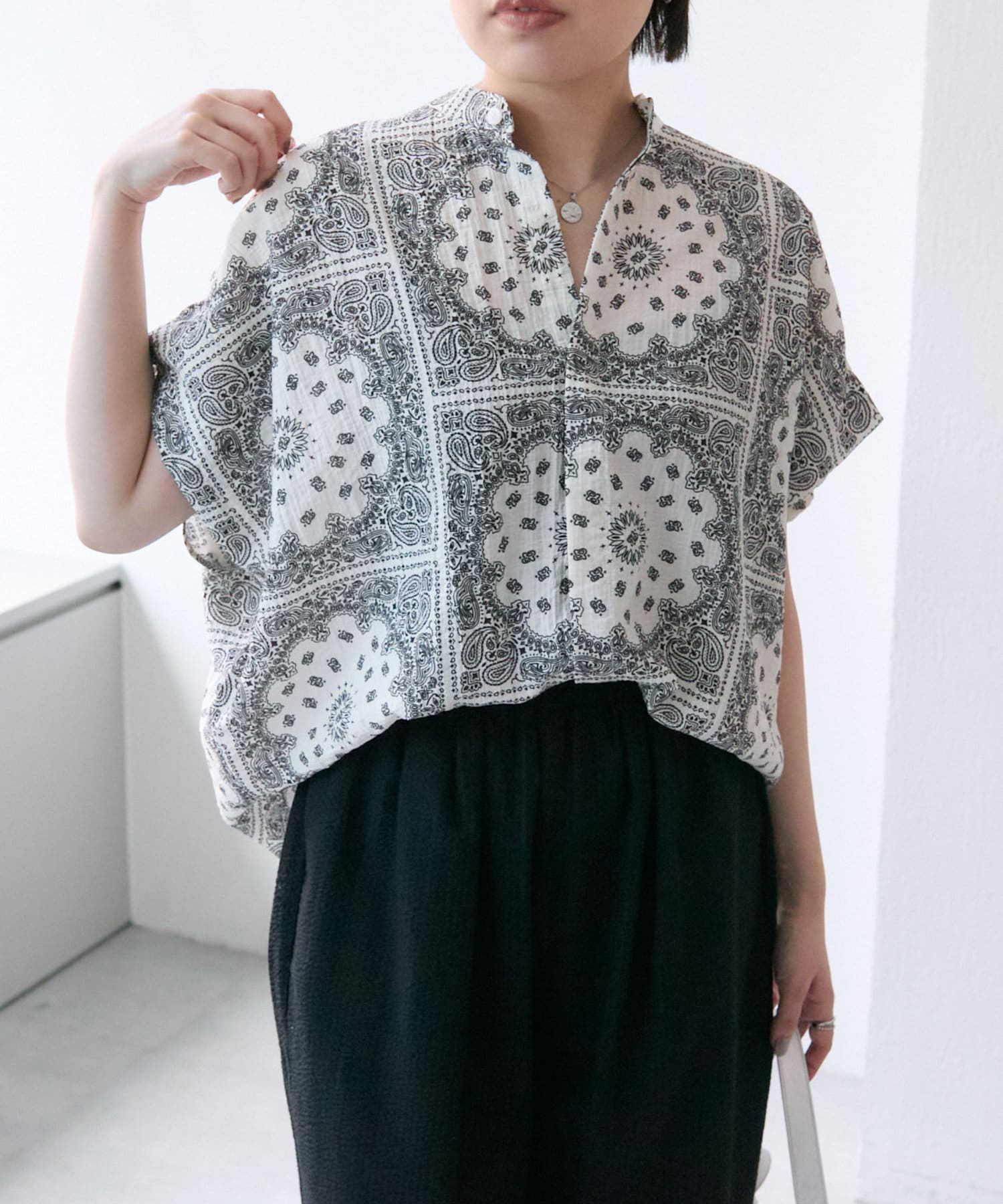 ・シンプルボトムに合わせるだけお洒落に決まる総柄ブラウス