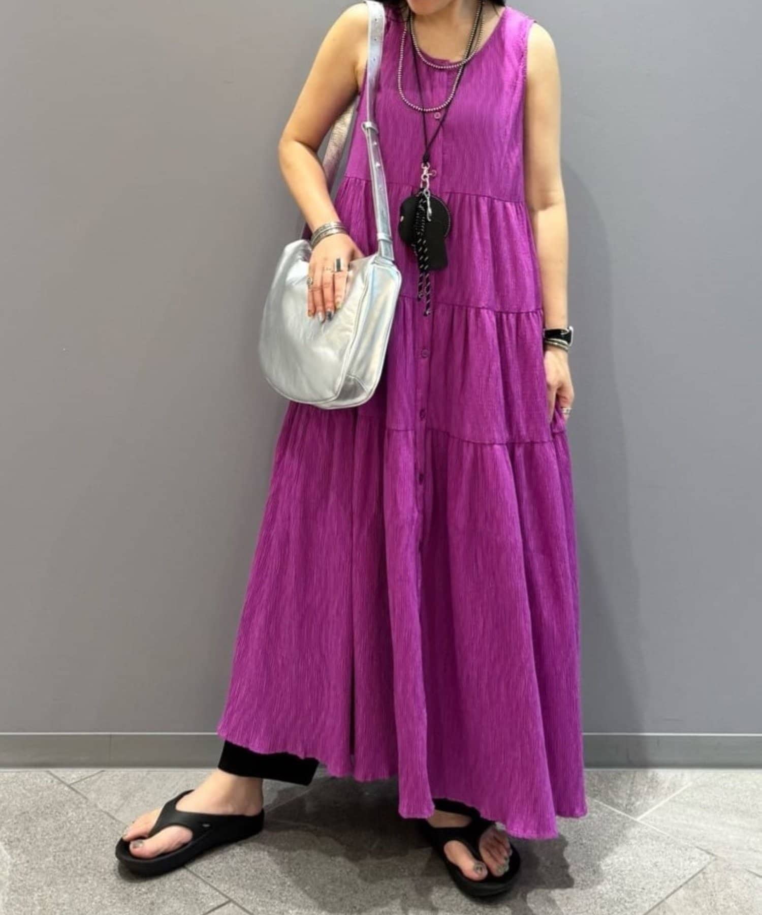 《動画あり》ワッシャーノースリティアードワンピース【SUM1 STYLE(スミスタイル)】
