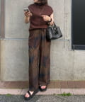 《動画あり/ウエスト総ゴム》ボタニカル柄/シダ柄パンツ【SUM1 STYLE(スミスタイル)】