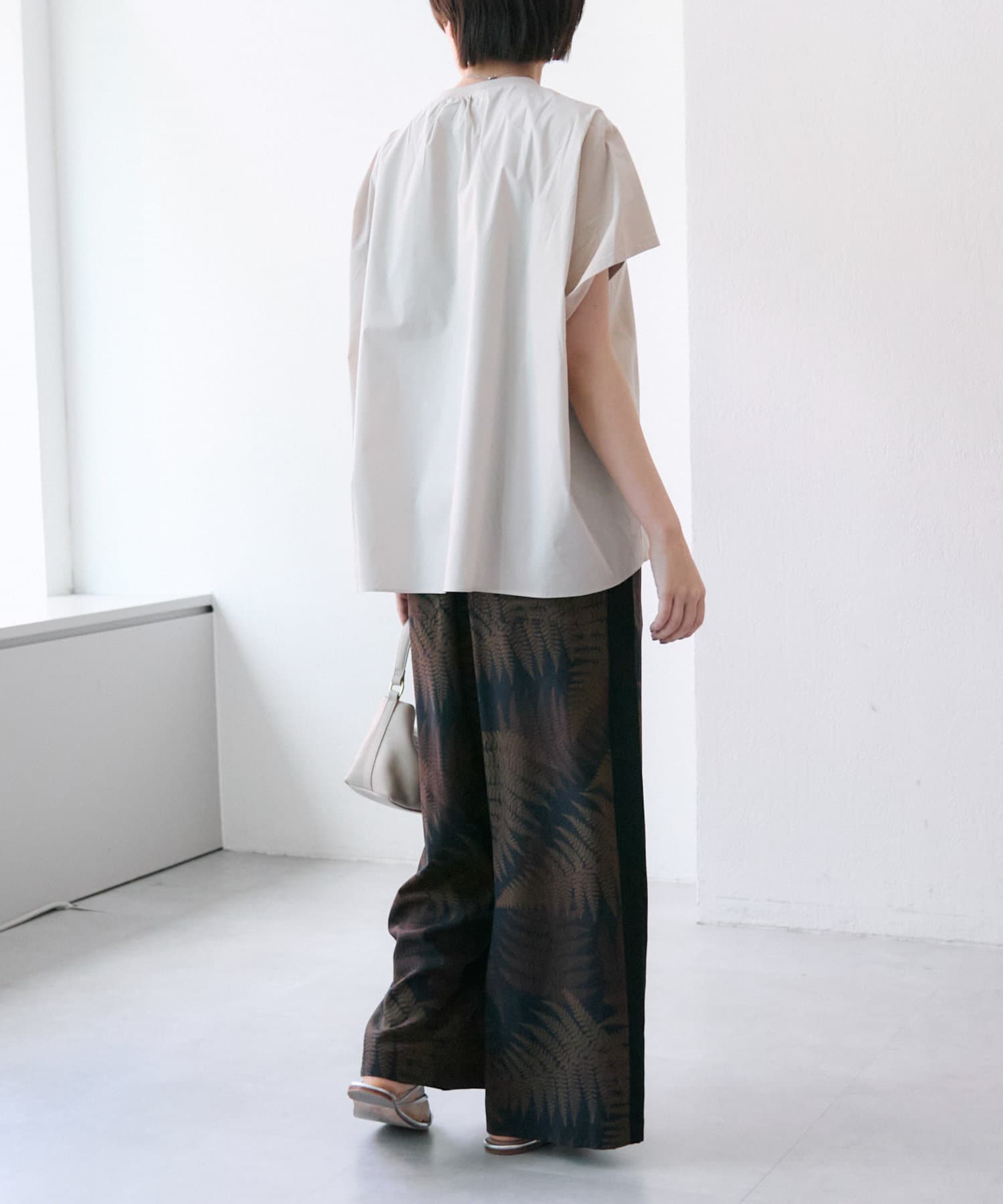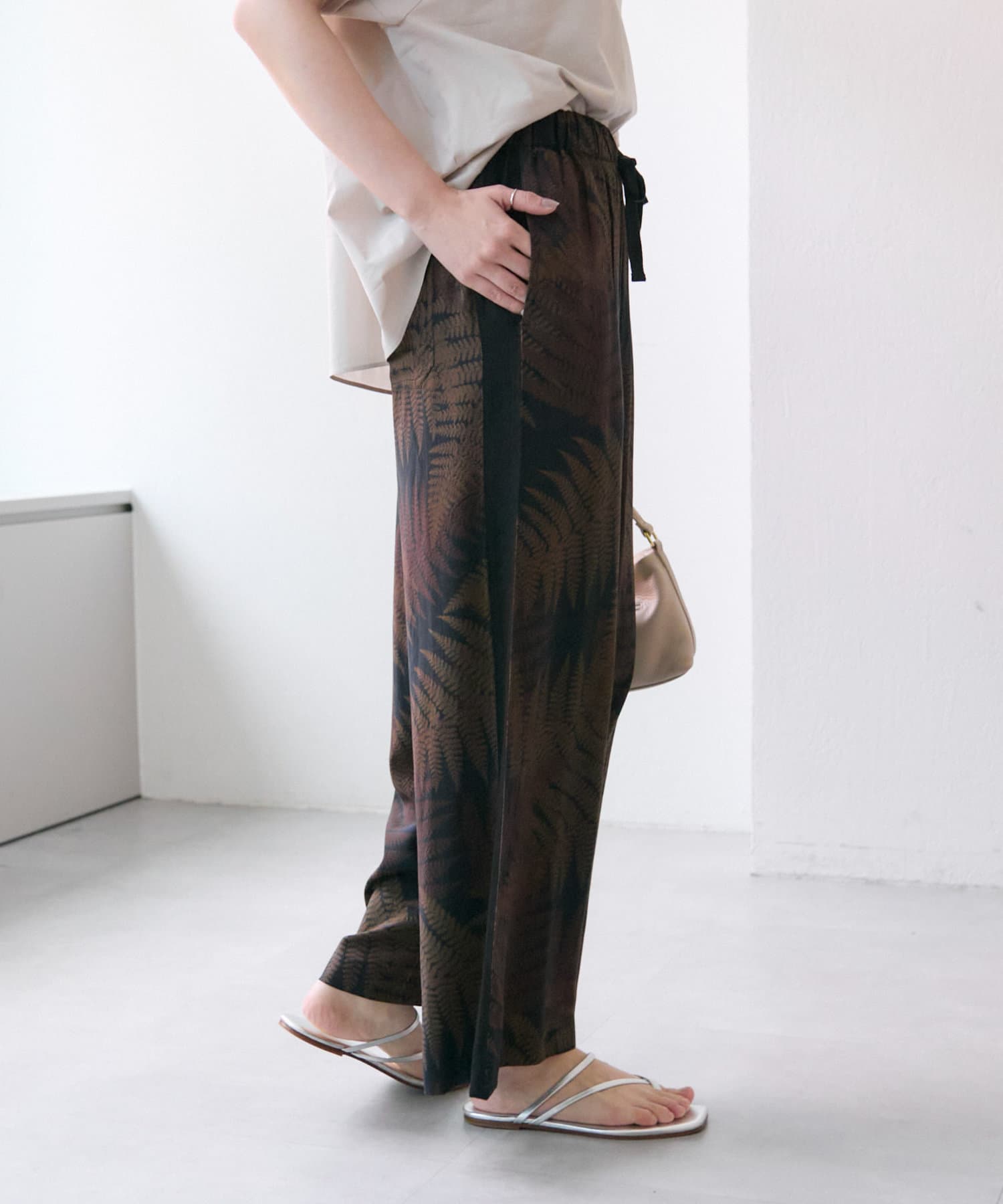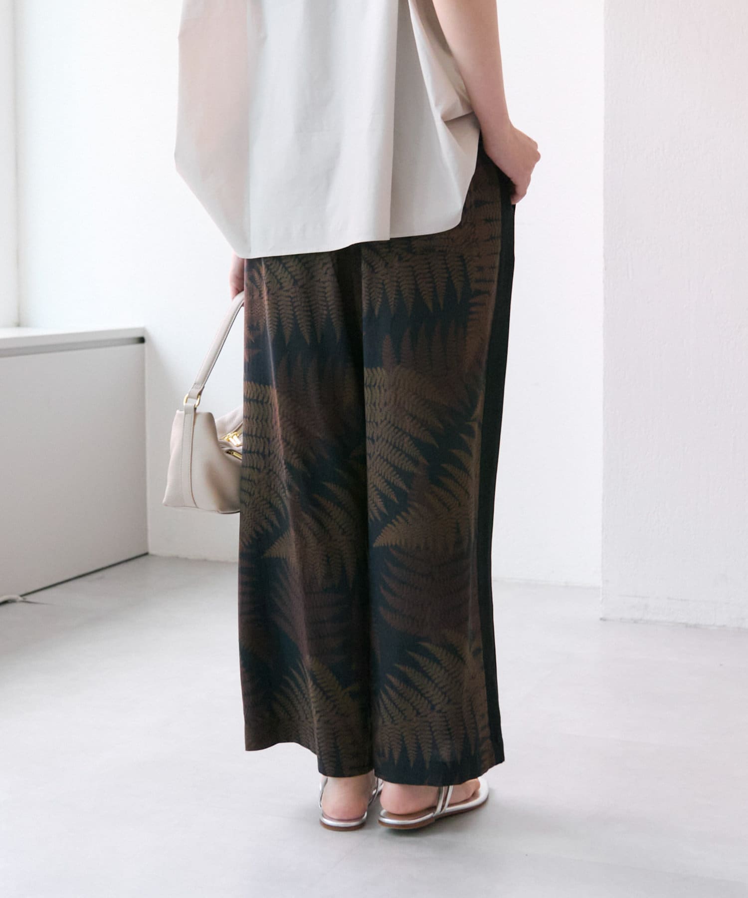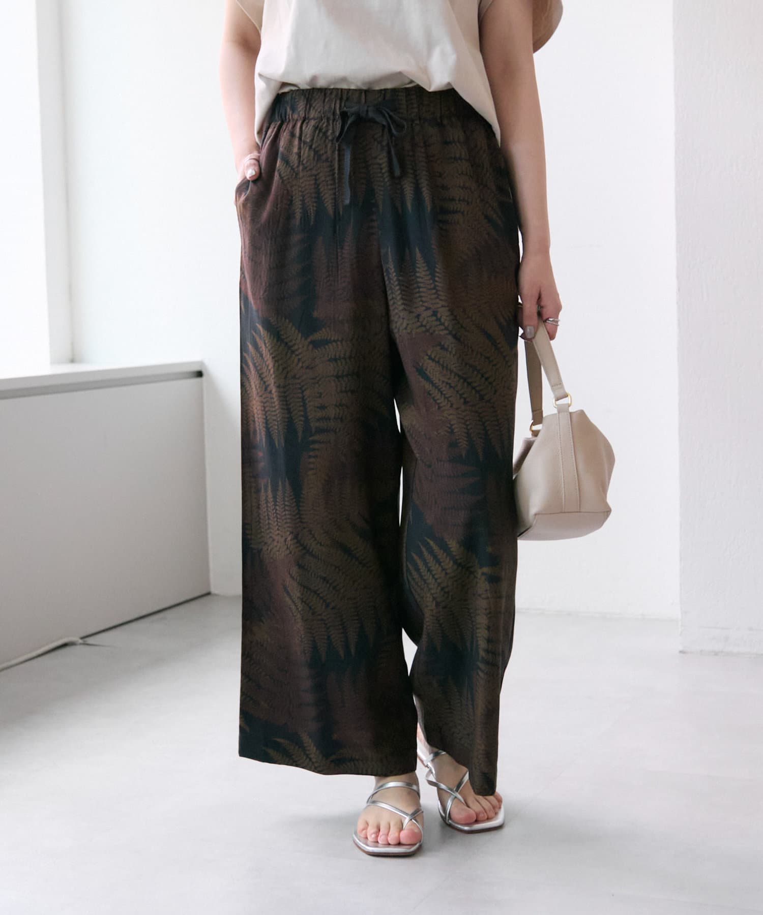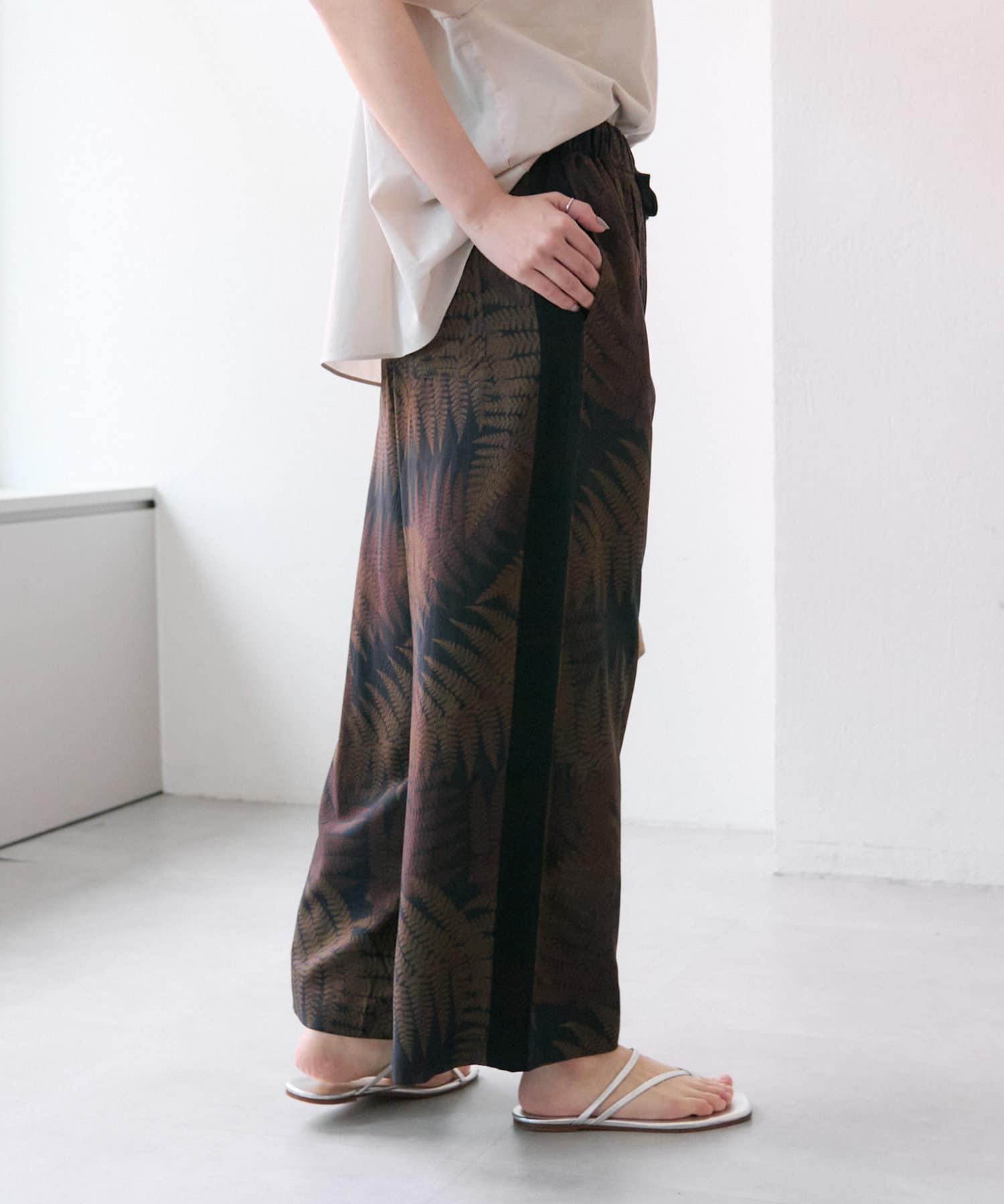ear PAPILLONNER(イア パピヨネ) 《動画あり/ウエスト総ゴム》ボタニカル柄/シダ柄パンツ【SUM1 STYLE(スミスタイル)】