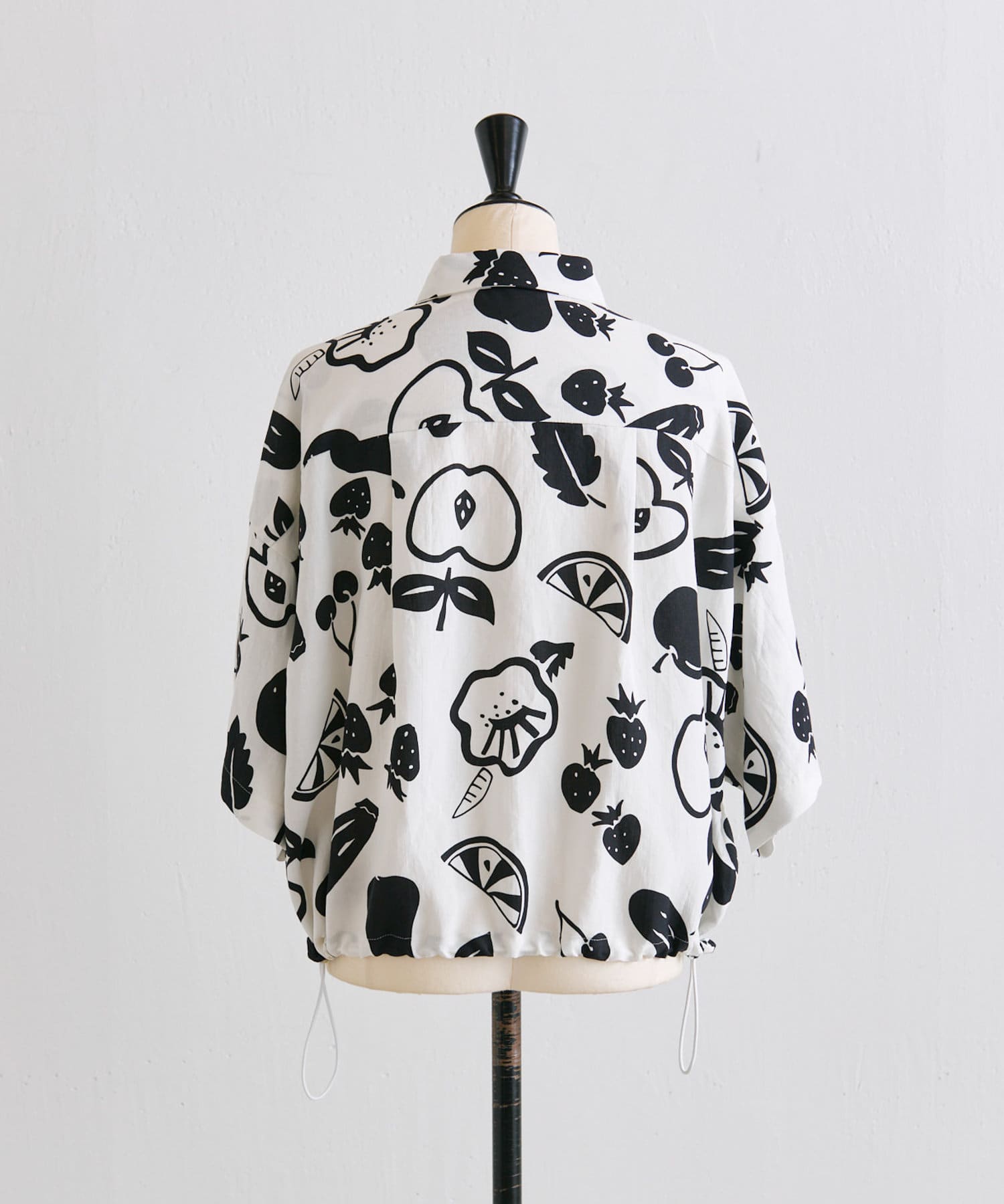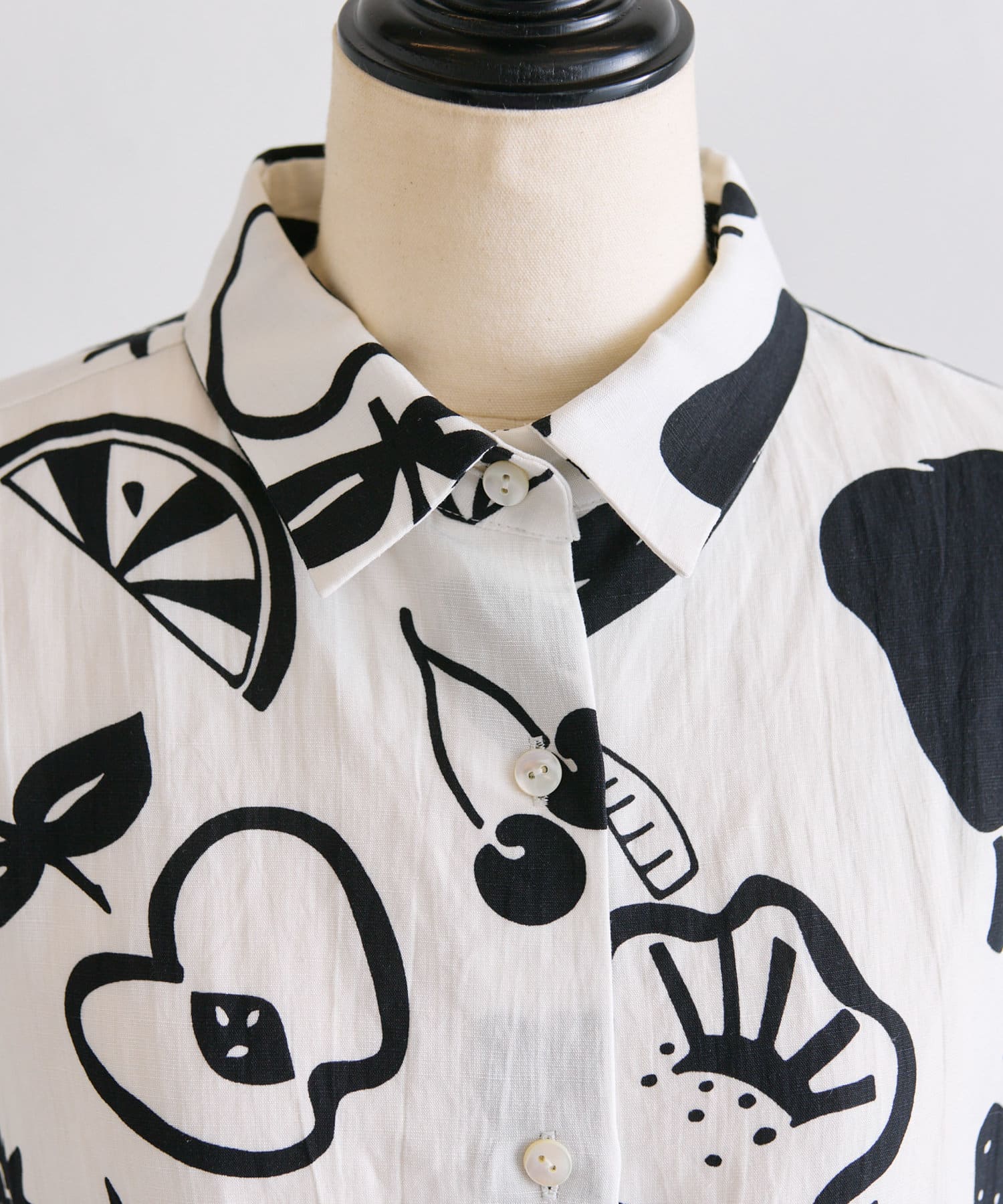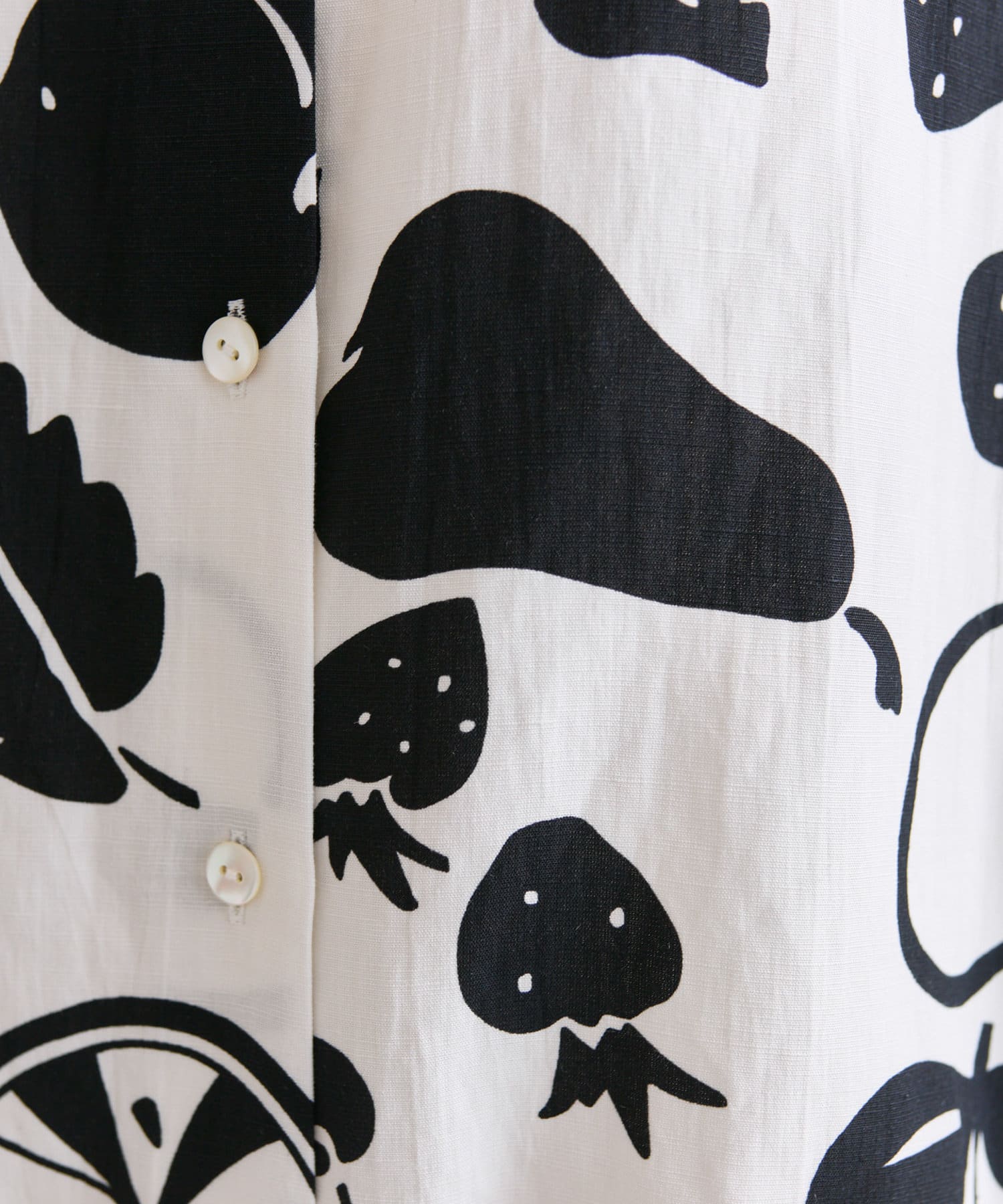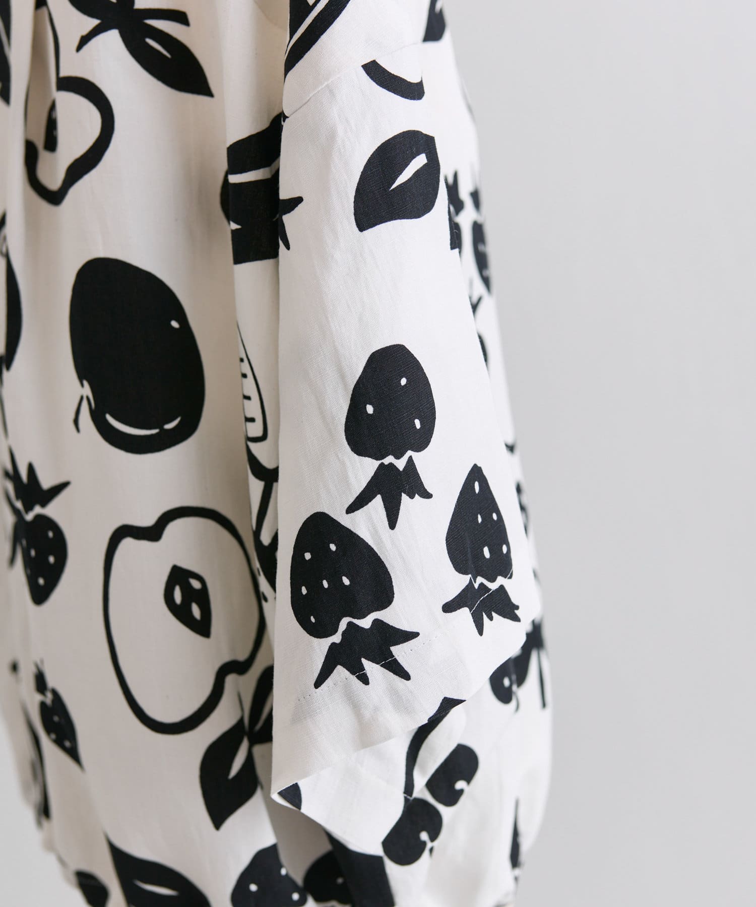 ・大胆なモノトーンのフルーツ柄が目を惹くデザイン