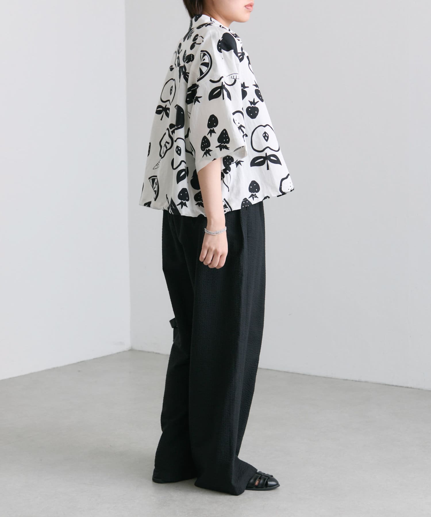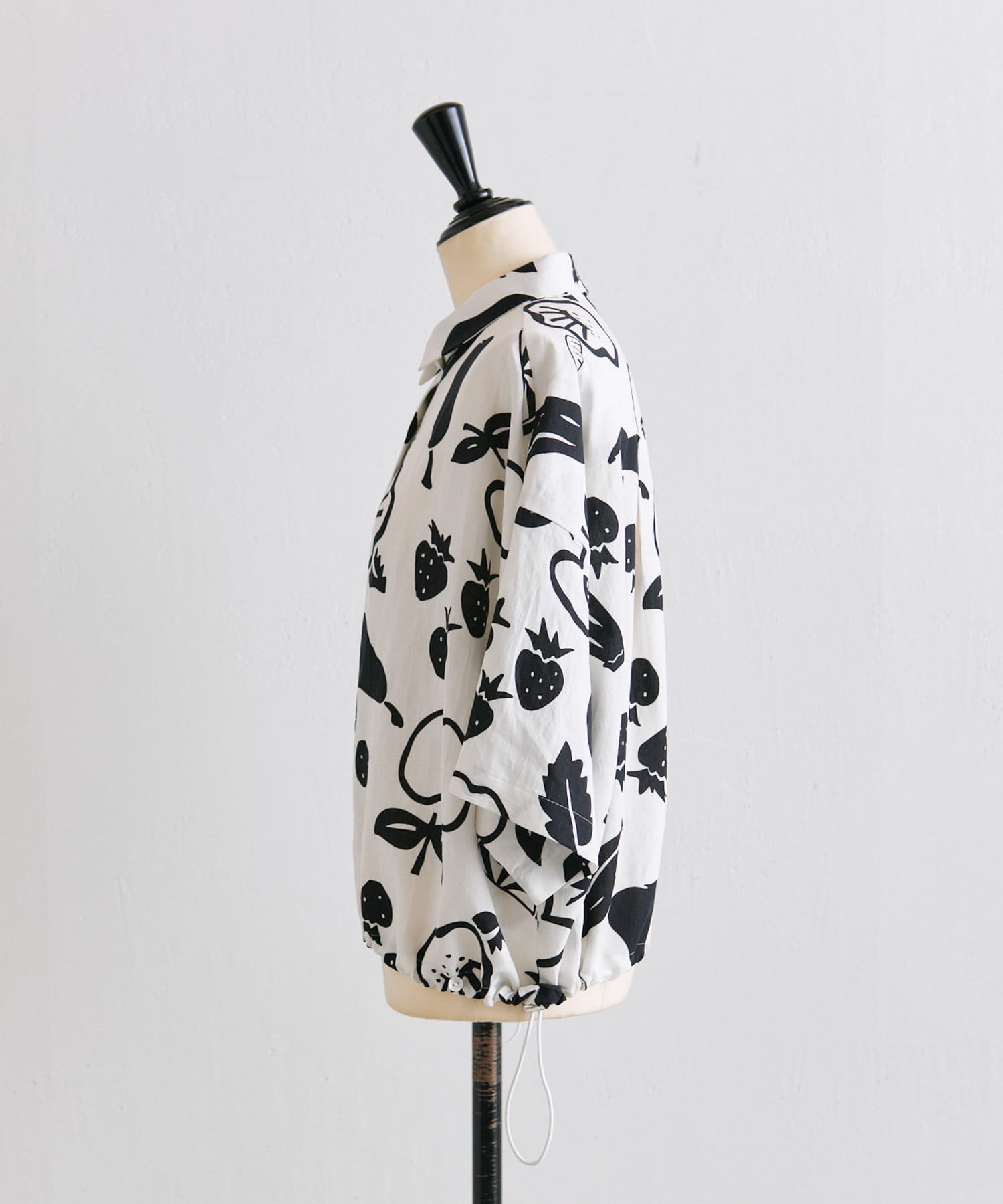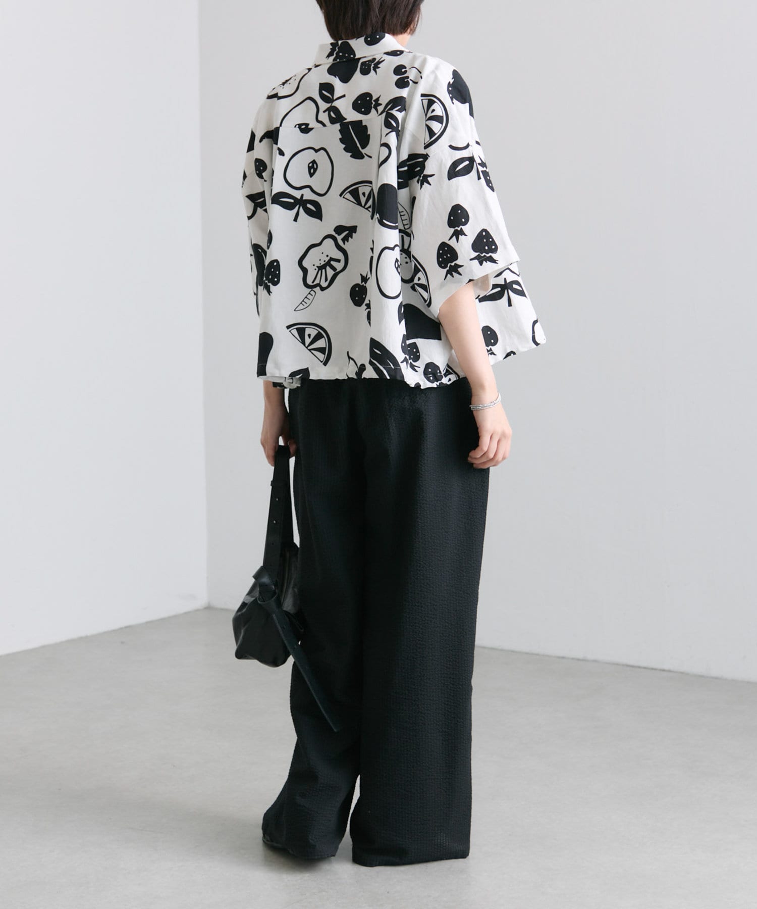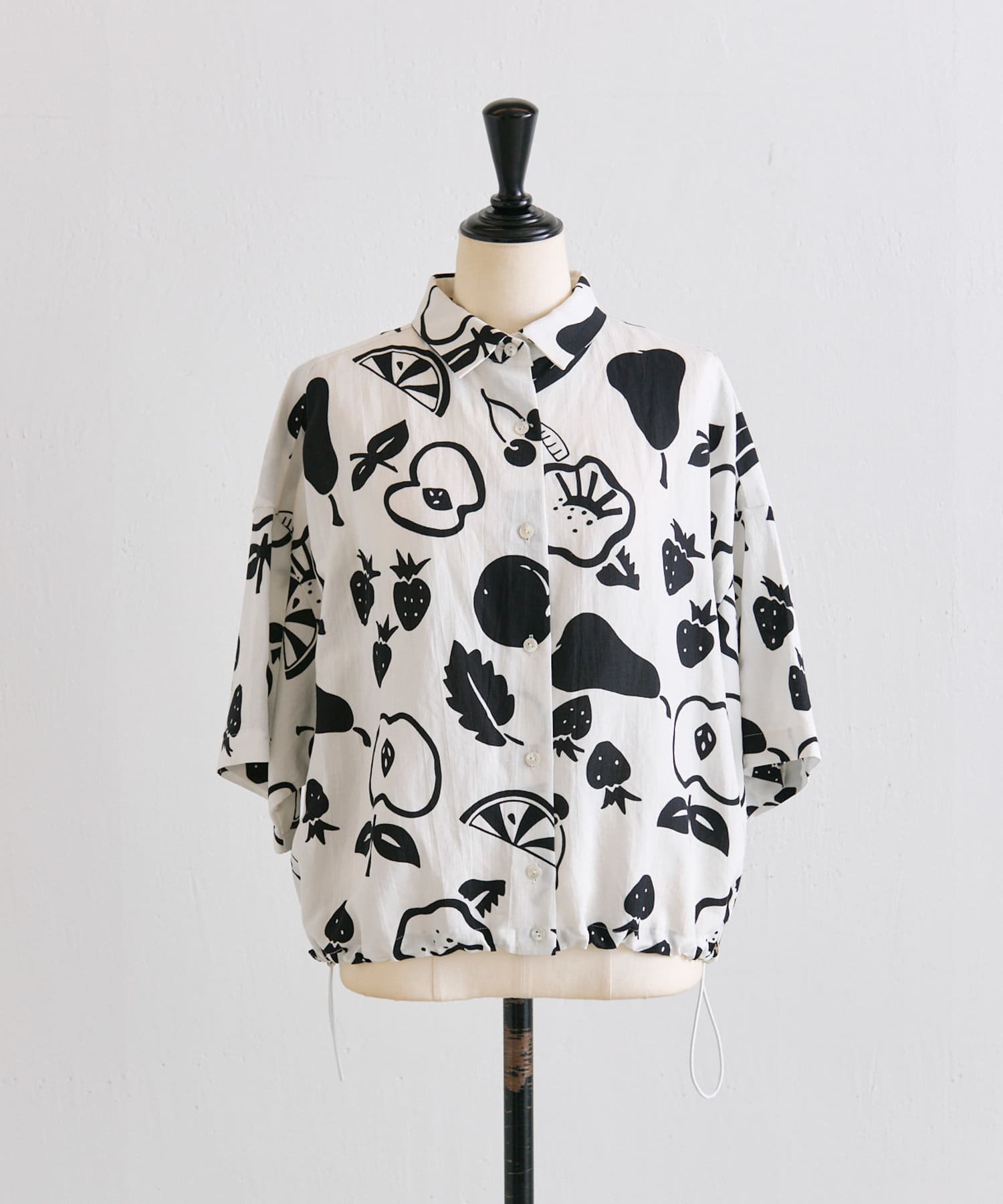 ・大胆なモノトーンのフルーツ柄が目を惹くデザイン