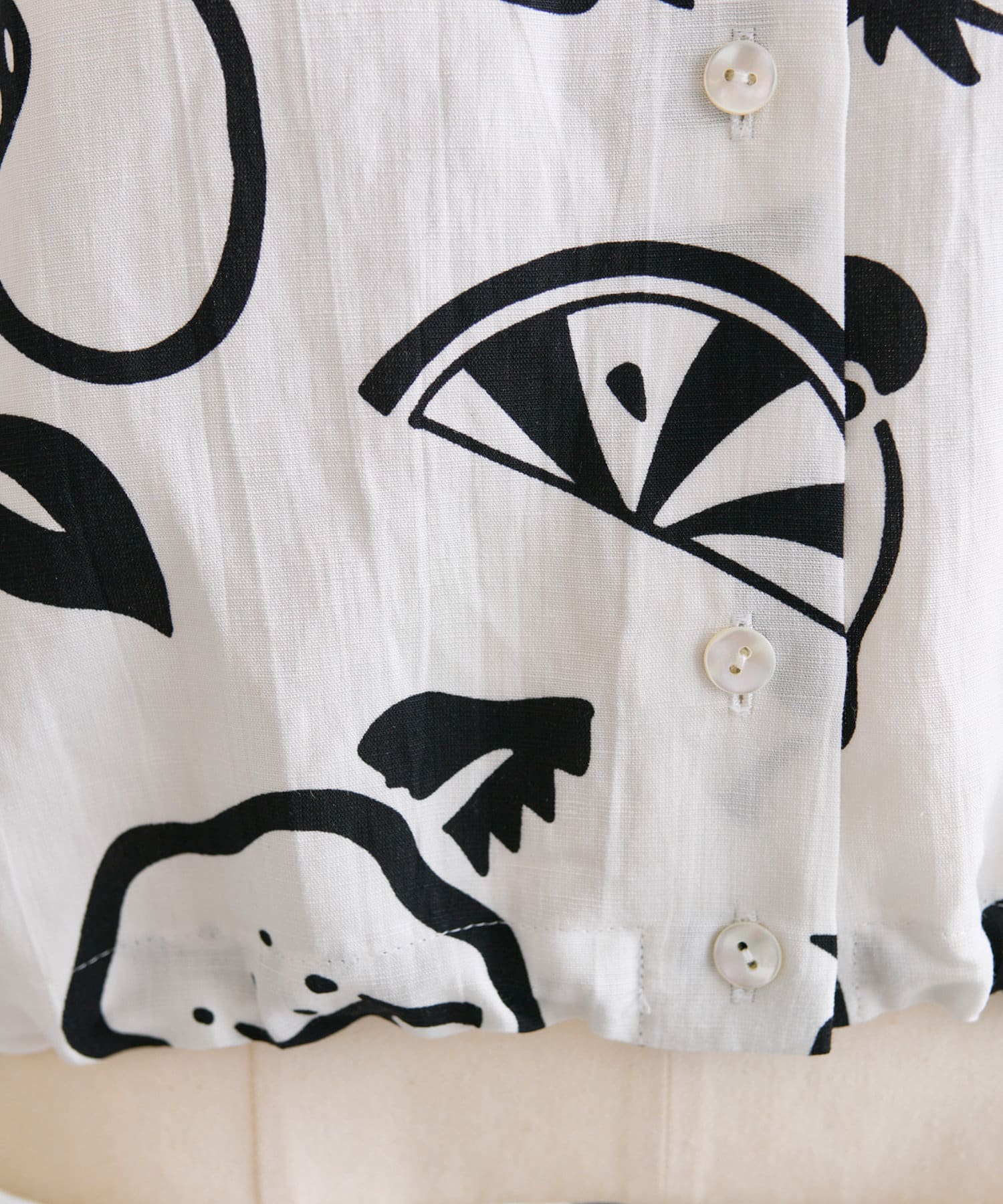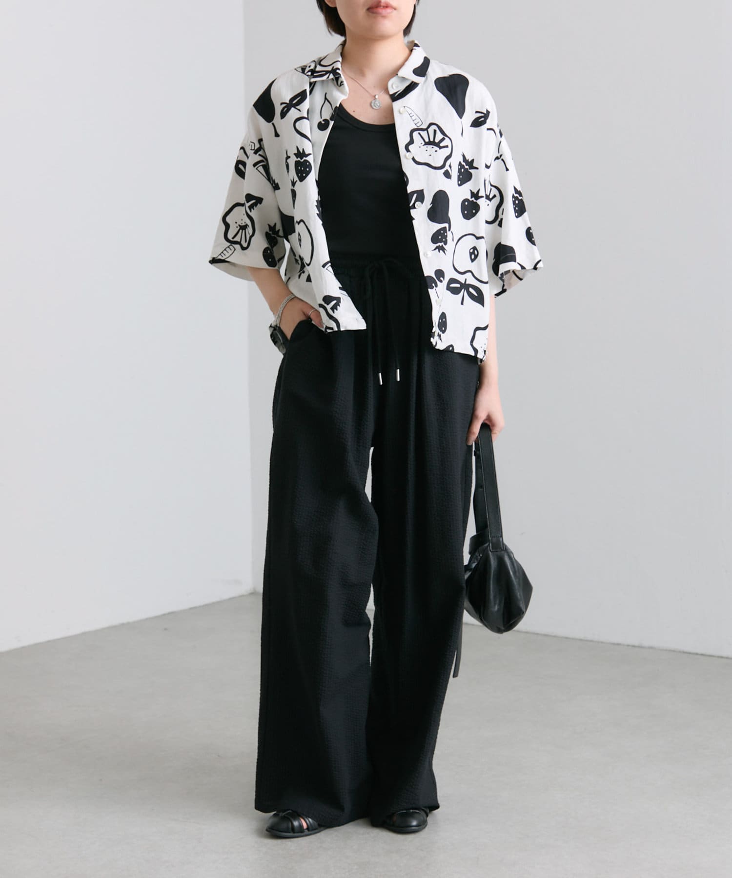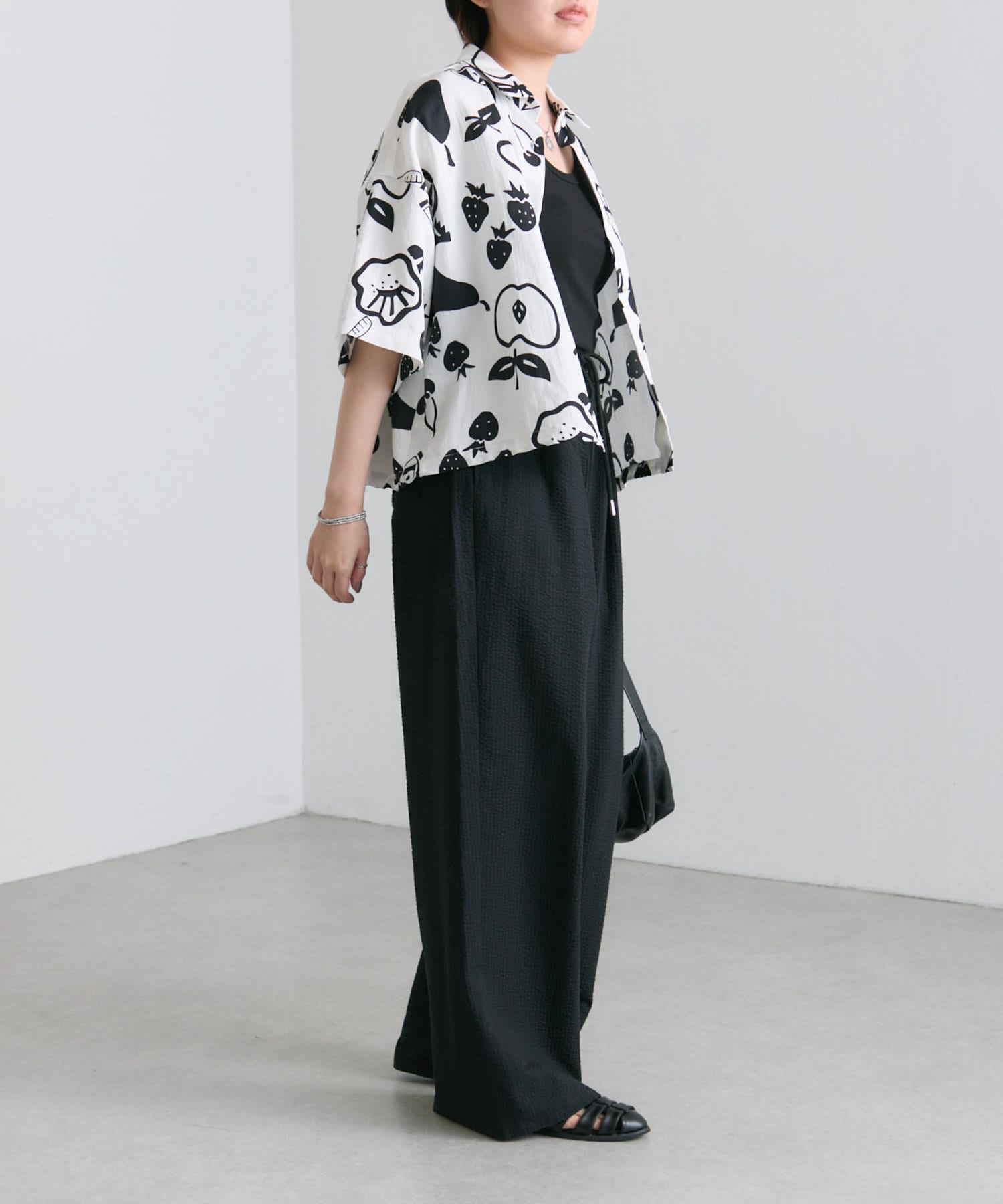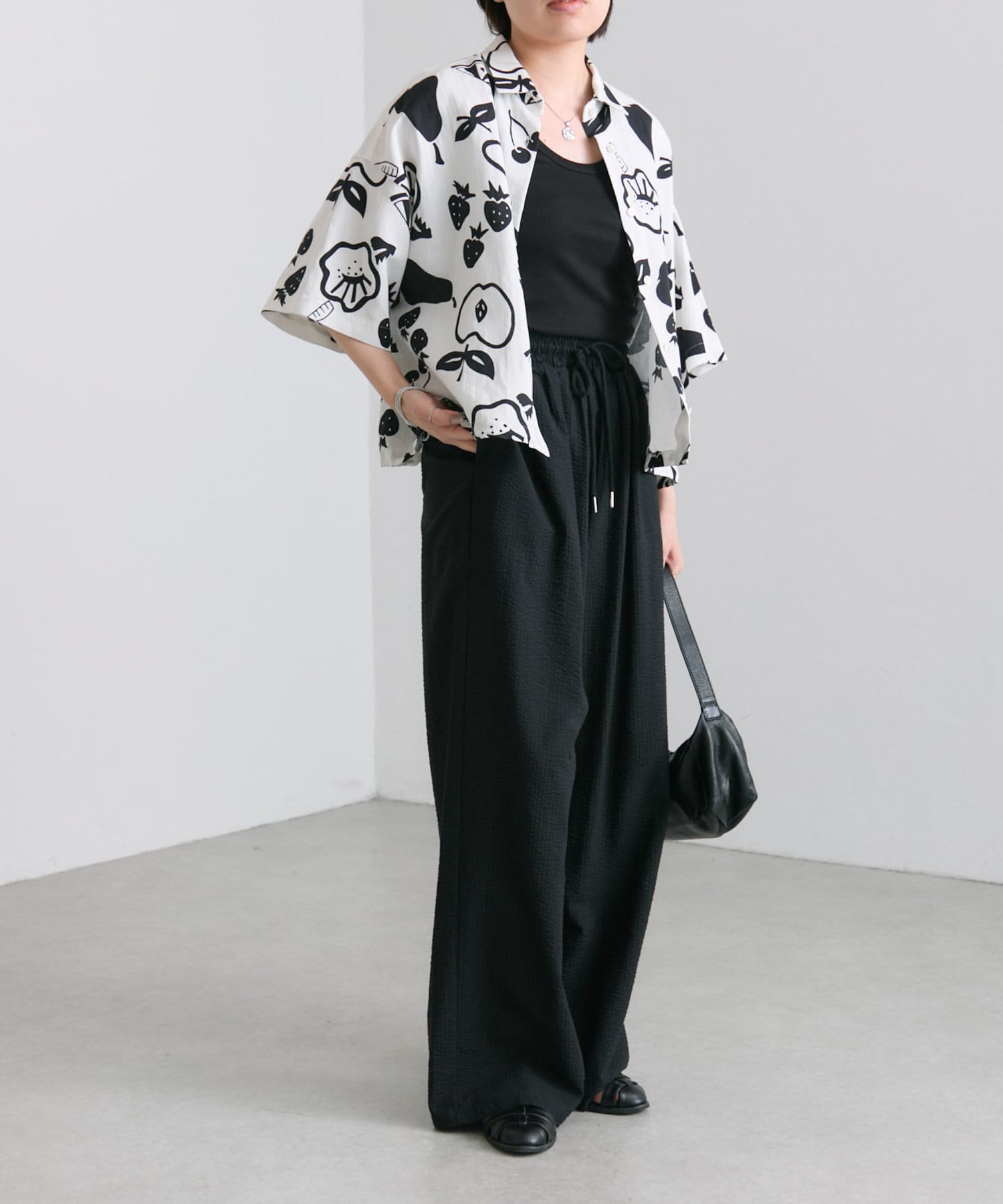 ・大胆なモノトーンのフルーツ柄が目を惹くデザイン