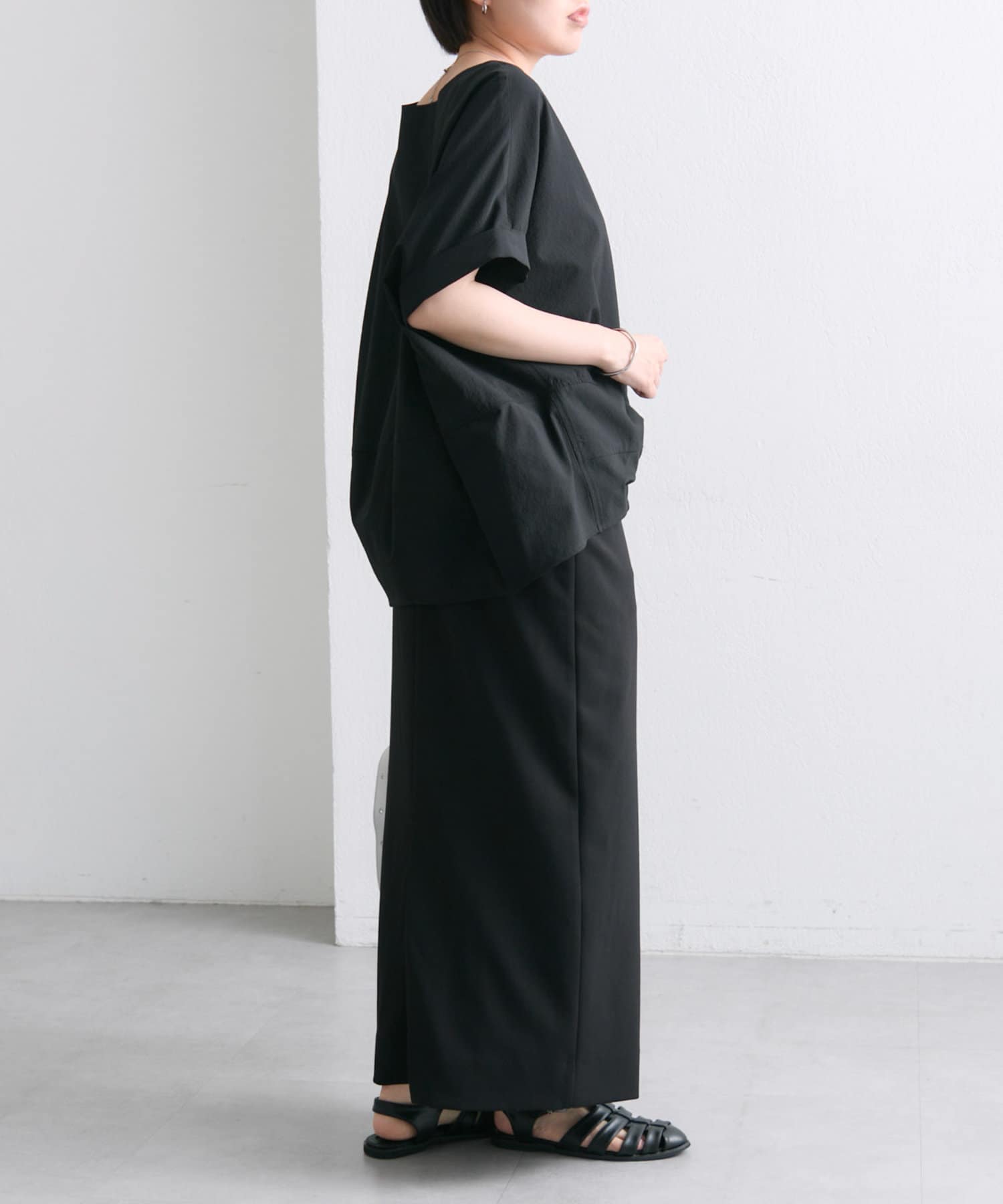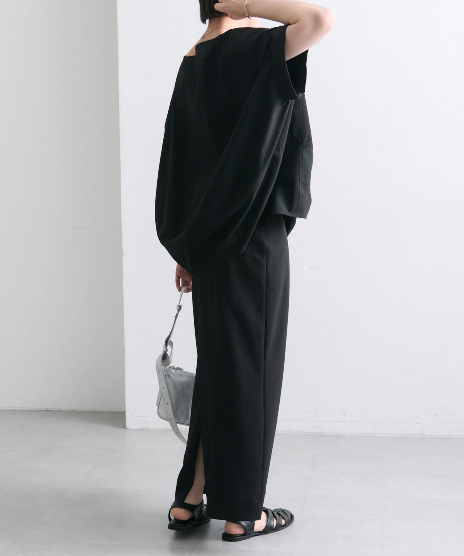 ストンと落ち感のあるシルエットのパンツやスカートと合わせると