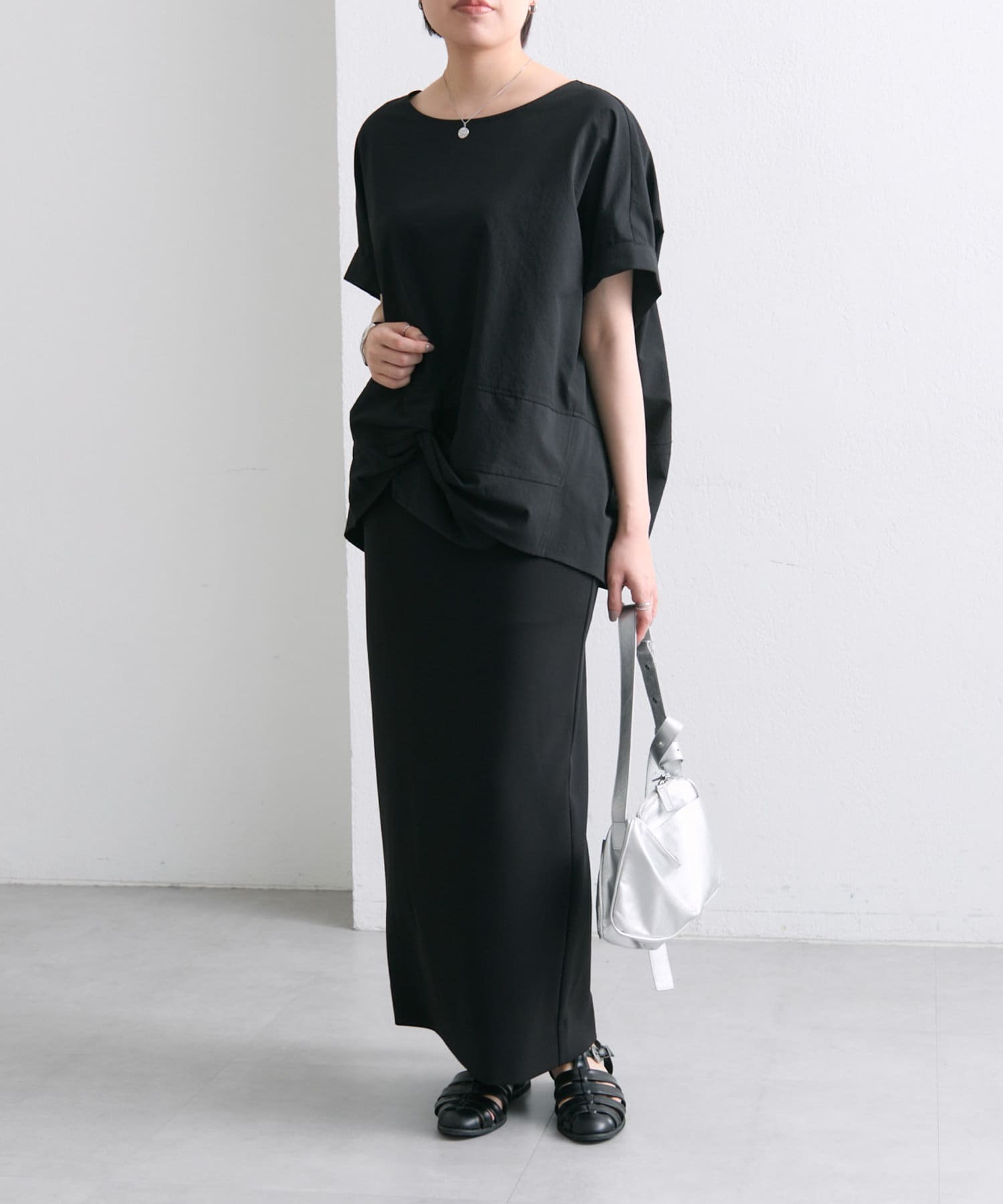 ・裾部分にはテンセル混の透け感ある素材をドッキング