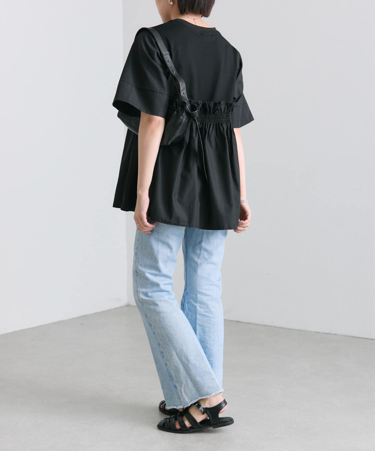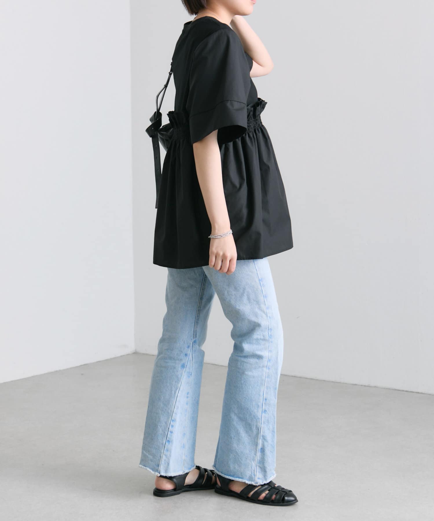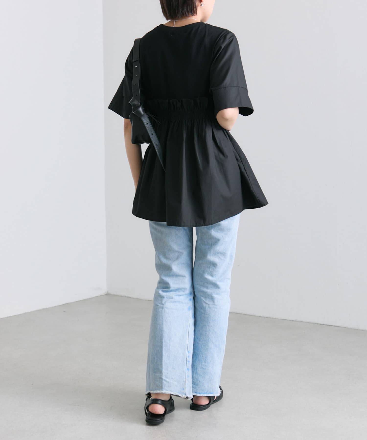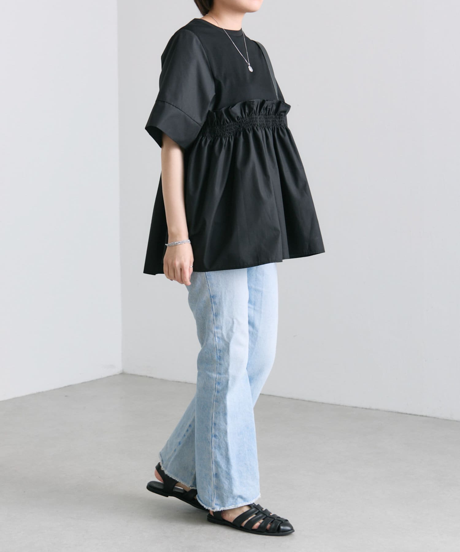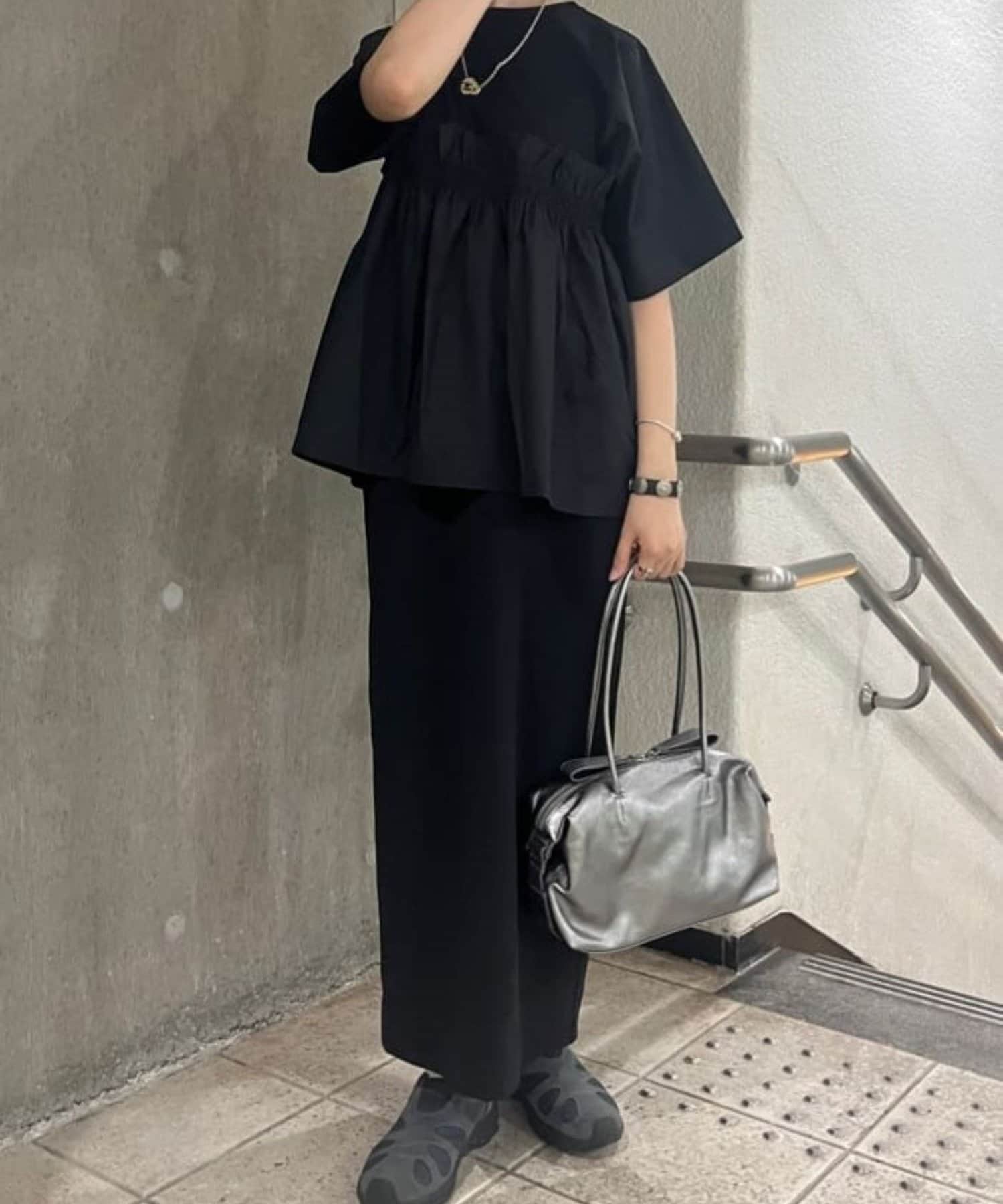 ギャザー部分はゴム糸なので締め付けなくラフに着れるのも嬉しいです。