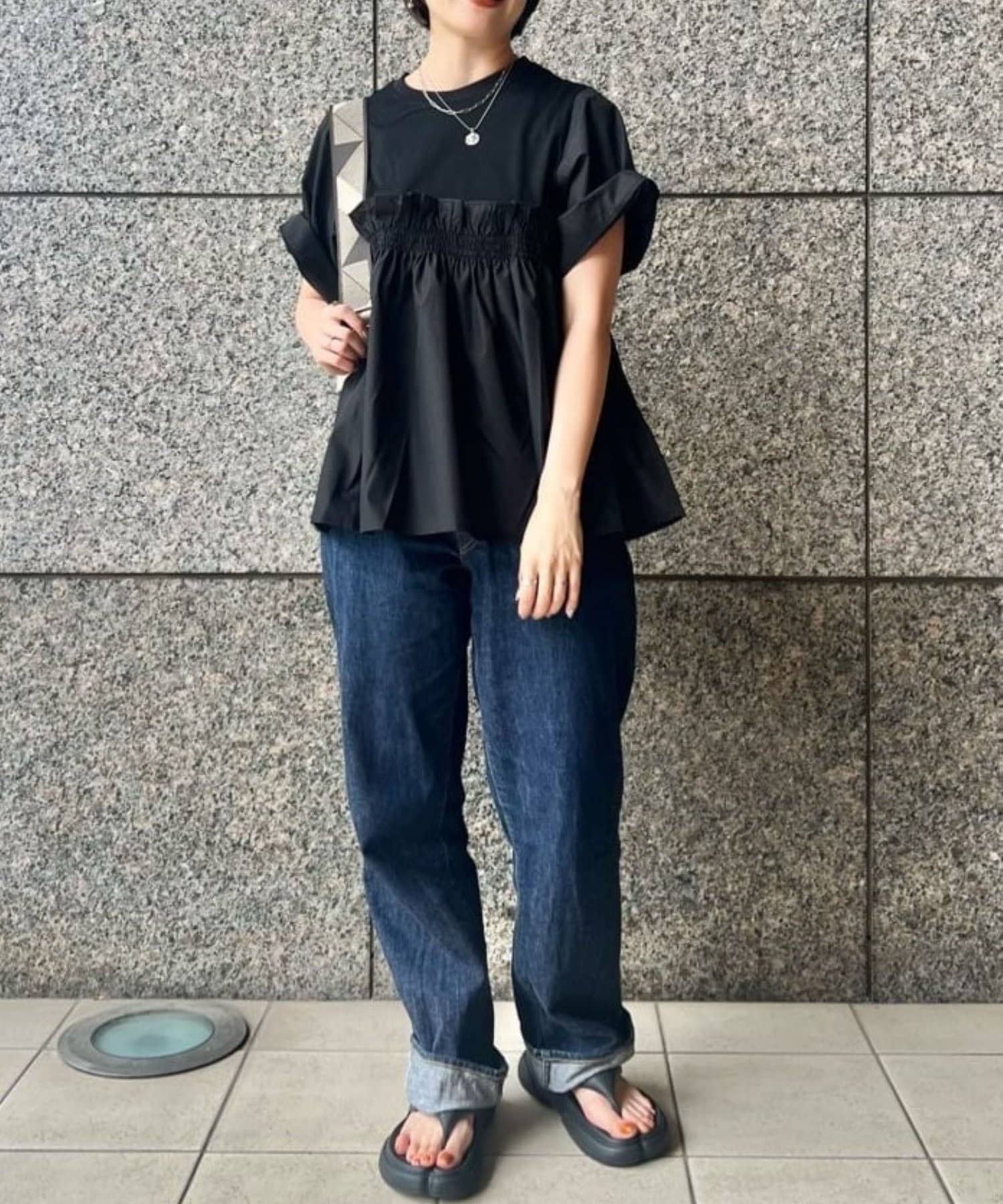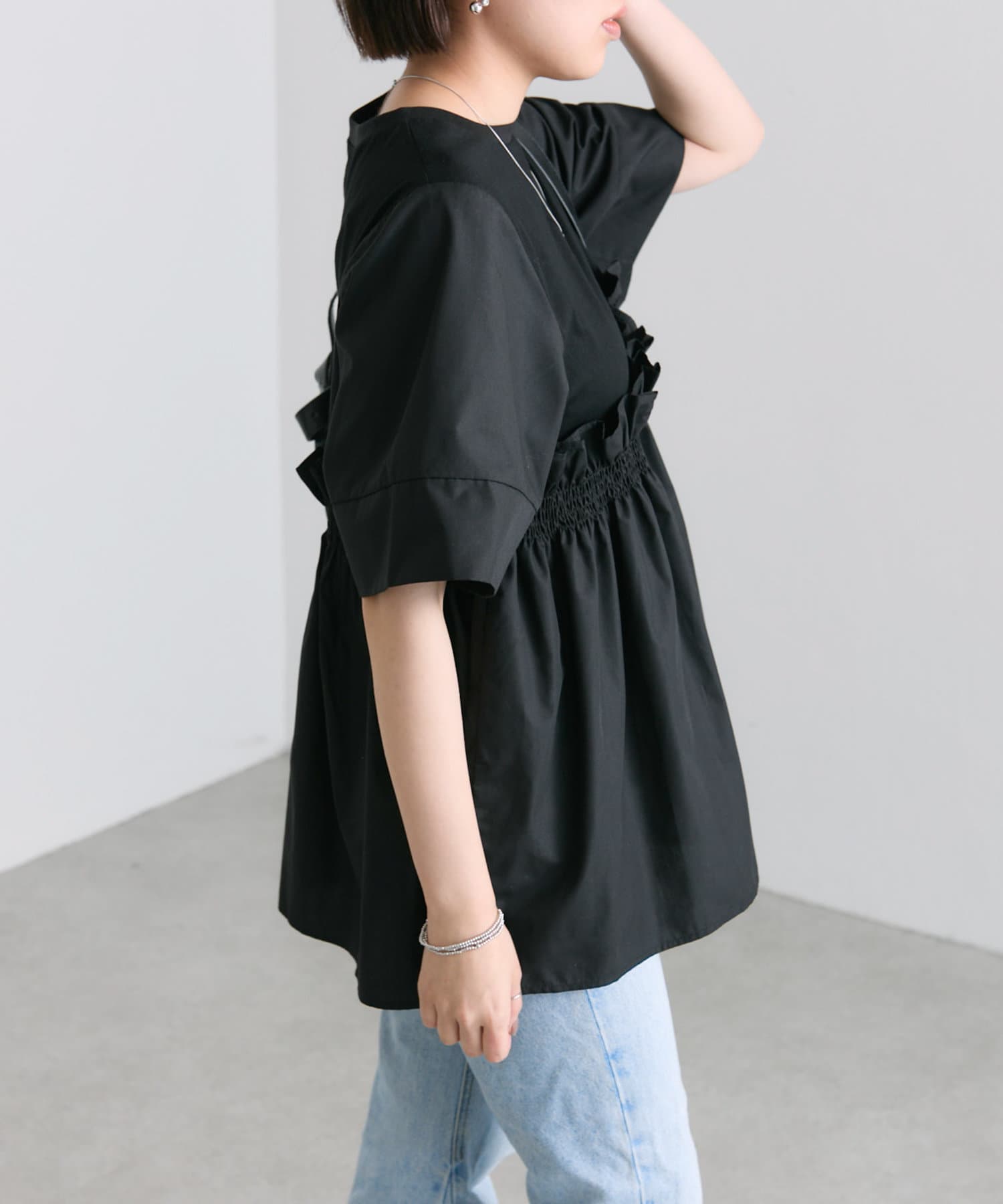 《動画あり/体型カバー》フリルギャザートップス【SUM1 STYLE(スミスタイル)】